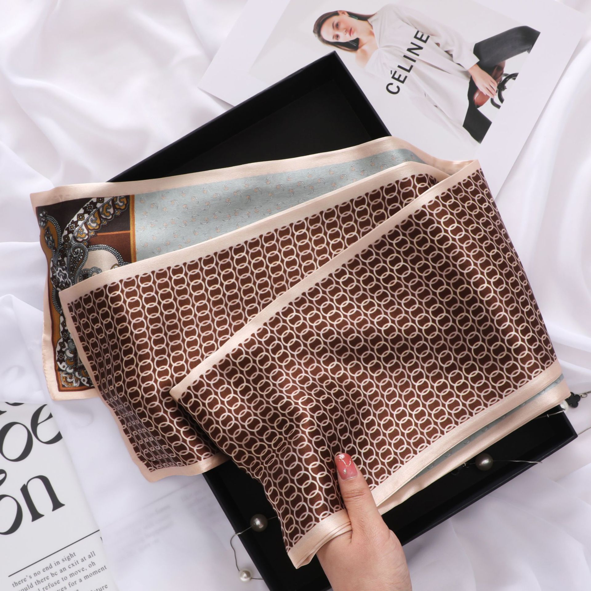 새로운 뽕나무 실크 스카프 여성의 얇은 좁은 리본 봄과 여름 한국 스타일 양면 스카프 긴 실크 스카프스토어 가기