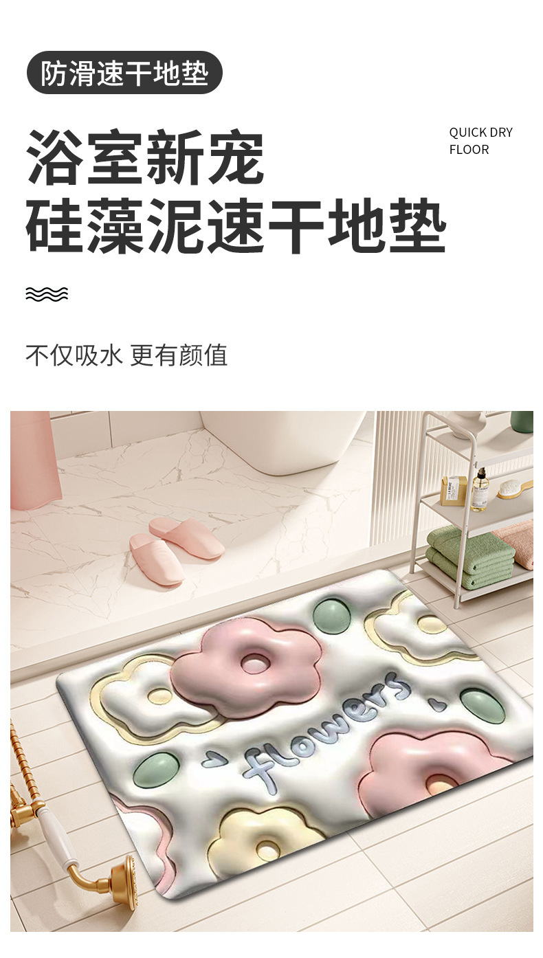 만화 3D 입체 확장 작은 꽃 diatom 진흙 바닥 매트 욕실 흡수성 미끄럼 방지 매트 화장실 화장실 바닥 매트 도매스토어 가기