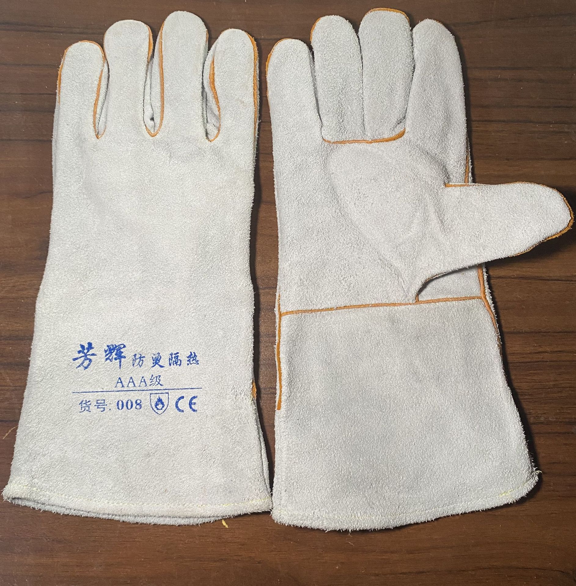 Fanghui 브랜드 소 가죽 길어진 용접기 장갑 이중층 내화 와이어 두꺼운 용접기 고온 방지 방지 보호 장갑