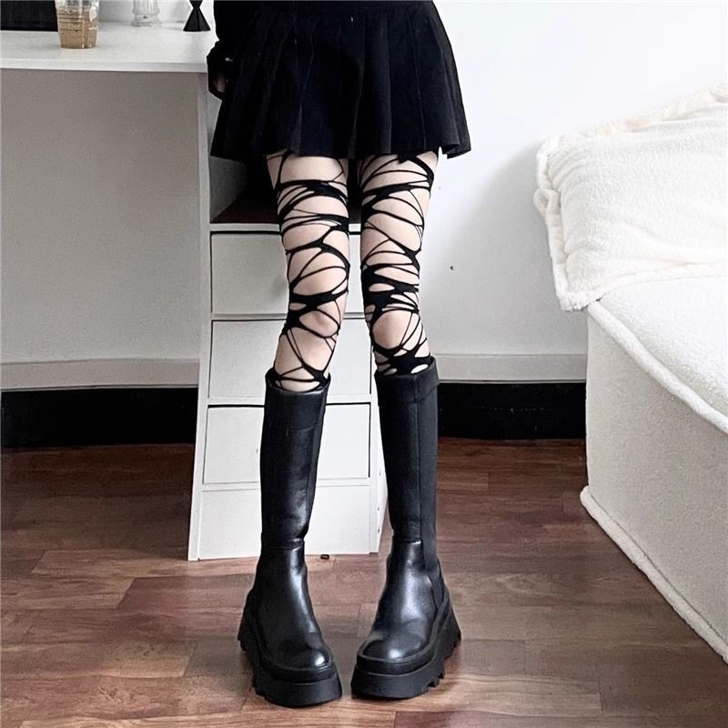 검은 섹시한 구멍 발 스타킹 고딕 스타일 불규칙한 펑크베이스 스타킹 다크 할로윈 양말 여성