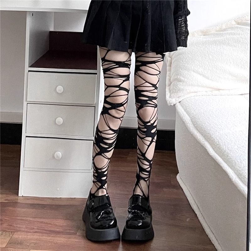 검은 섹시한 구멍 발 스타킹 고딕 스타일 불규칙한 펑크베이스 스타킹 다크 할로윈 양말 여성스토어 가기
