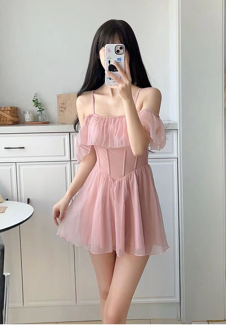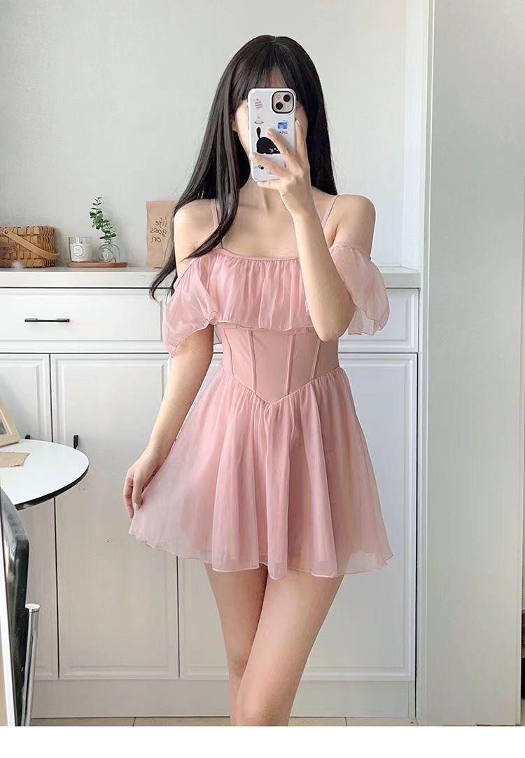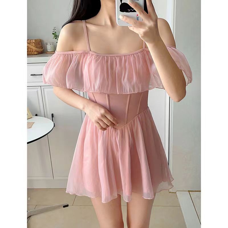 보수적 인 수영복 여성의 보수적 인 온천 여름 순수한 욕망 스타일 원피스 2024 새로운 슬리밍 고급 소녀 수영복스토어 가기