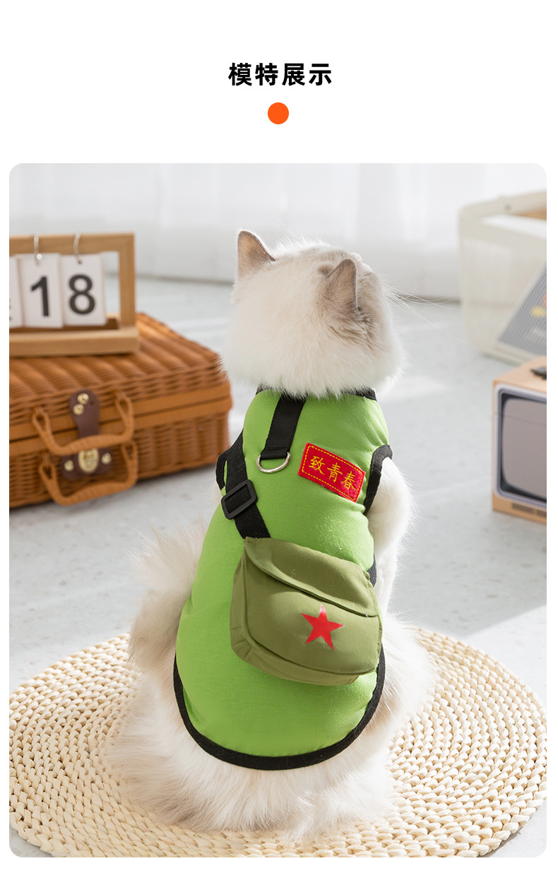 고양이 봄과 여름 두 다리 프레피 스타일 학생 복고풍 가방 조끼 개 테디 베어 애완 동물 귀여운 옷스토어 가기