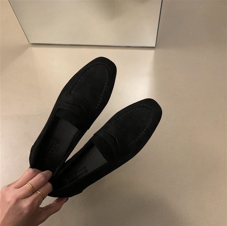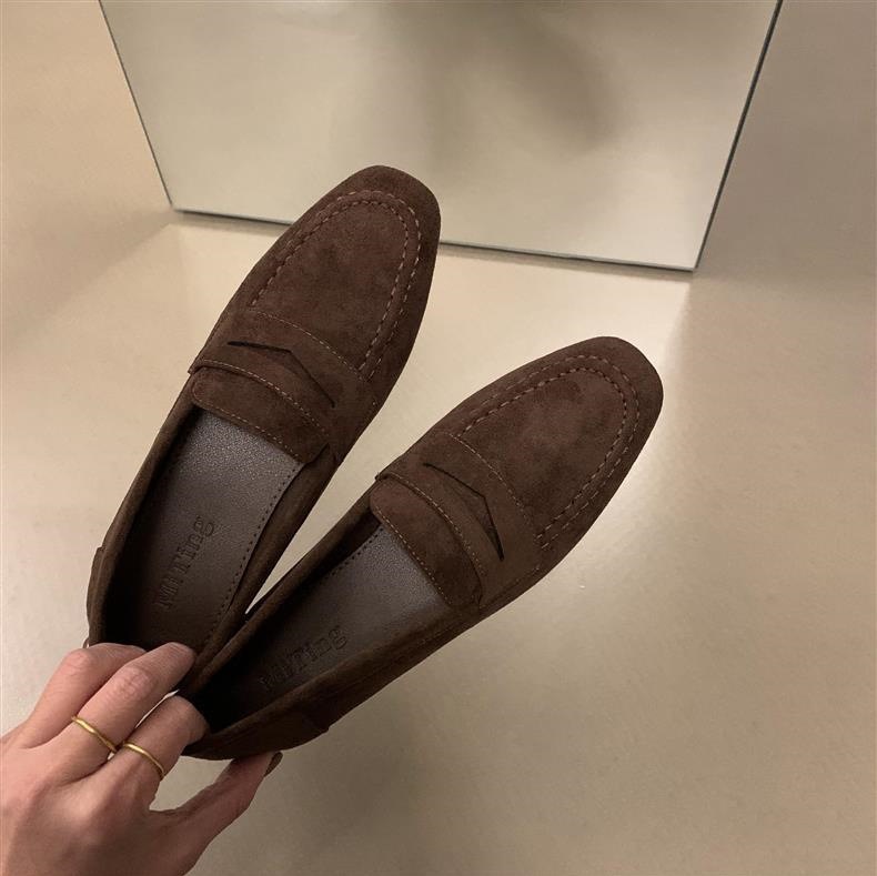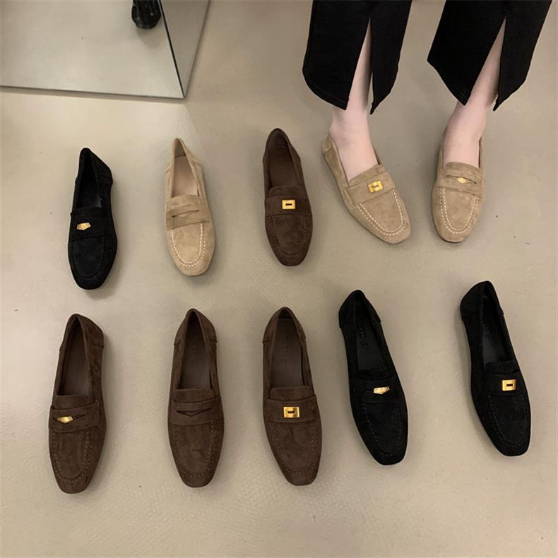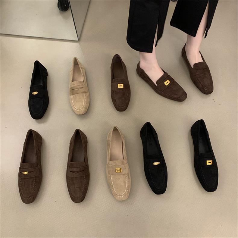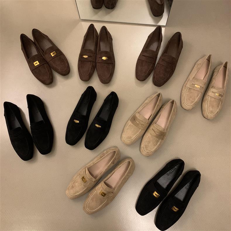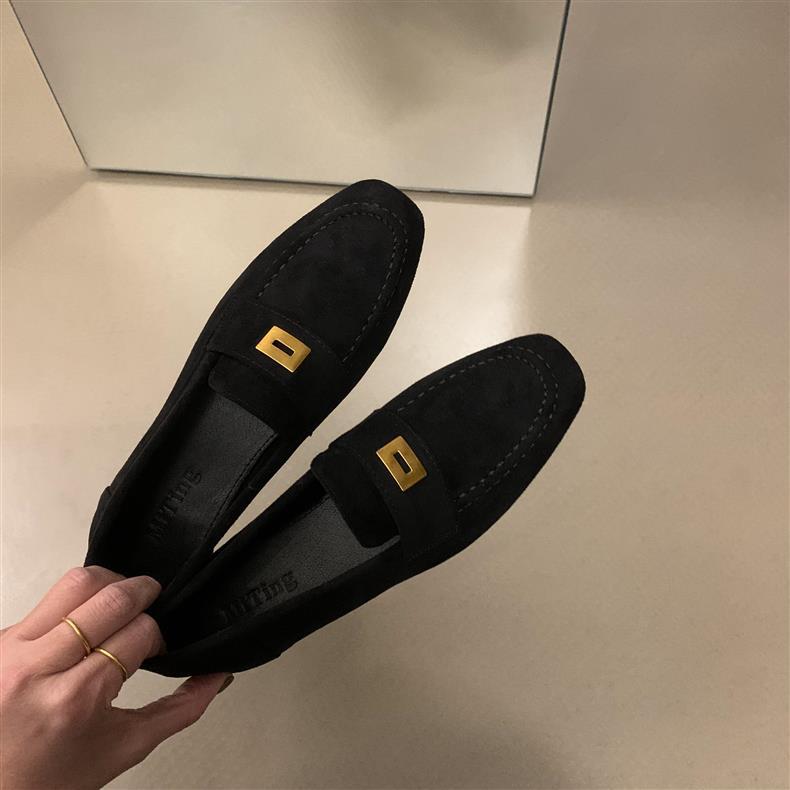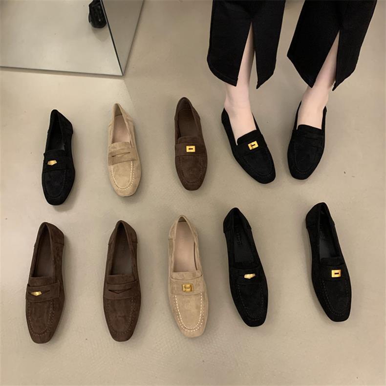 스웨이드 로퍼 여성의 새로운 2024 봄과 가을 다재다능한 영국 샤넬 스타일 가죽 신발 사각 발가락 단층 신발 플랫 로퍼스토어 가기