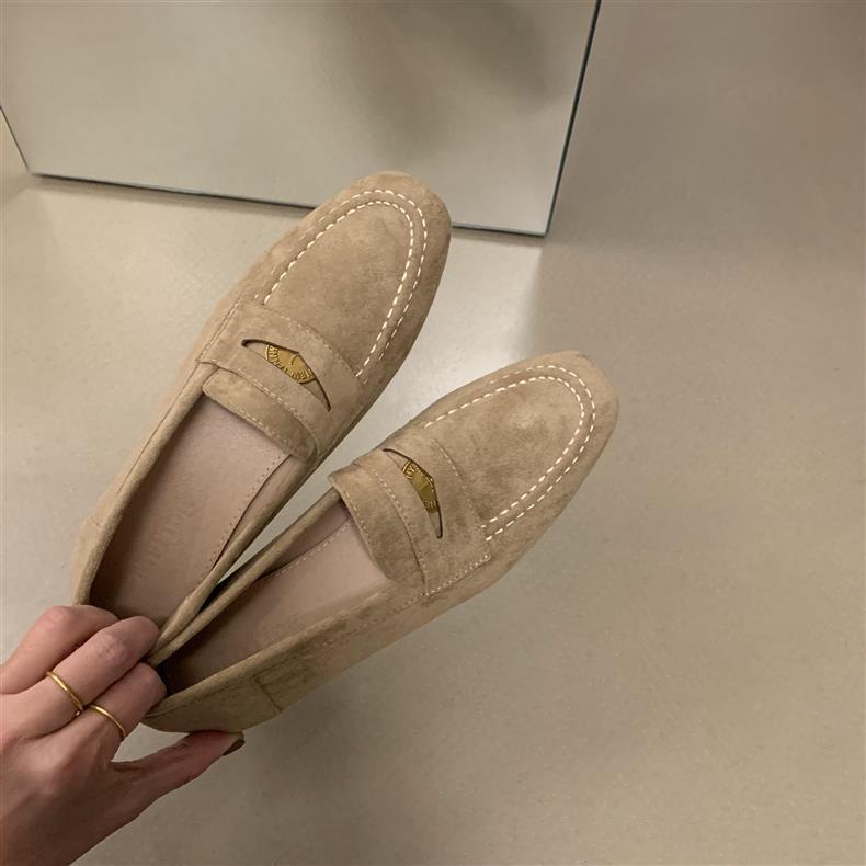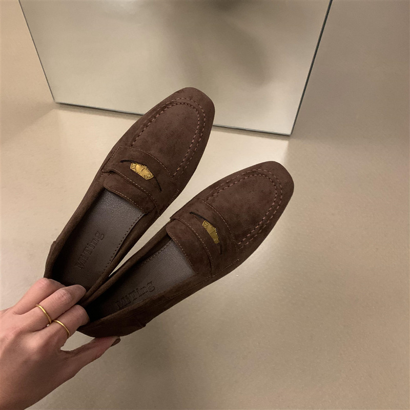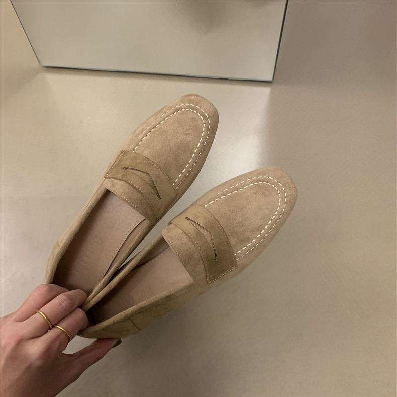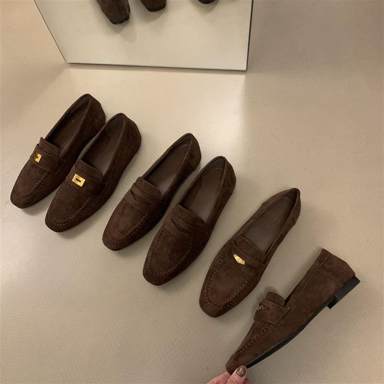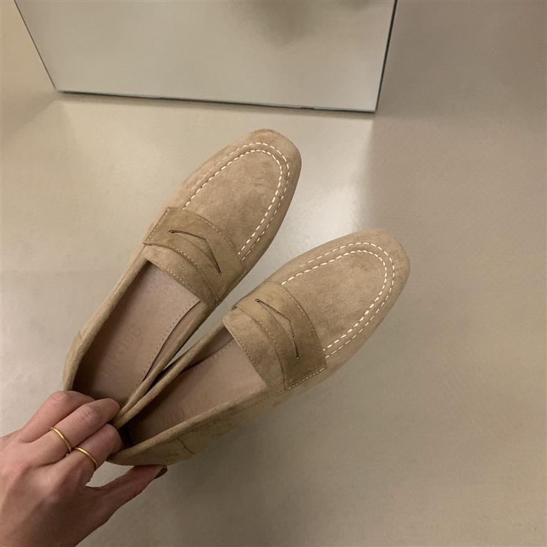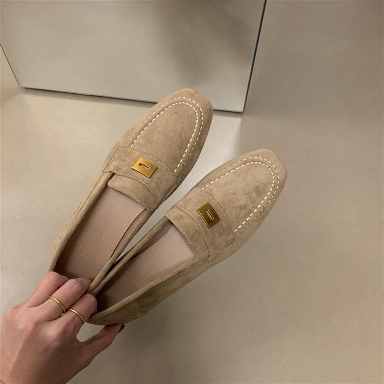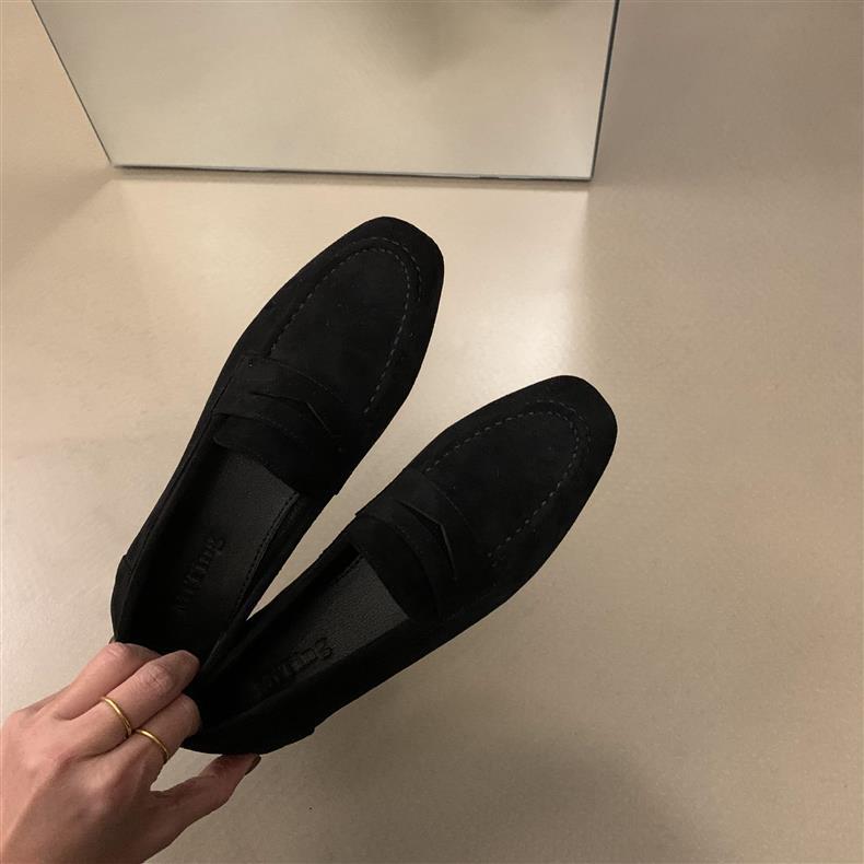 스웨이드 로퍼 여성의 새로운 2024 봄과 가을 다재다능한 영국 샤넬 스타일 가죽 신발 사각 발가락 단층 신발 플랫 로퍼스토어 가기