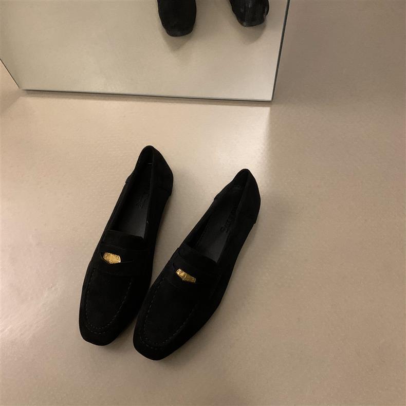 스웨이드 로퍼 여성의 새로운 2024 봄과 가을 다재다능한 영국 샤넬 스타일 가죽 신발 사각 발가락 단층 신발 플랫 로퍼