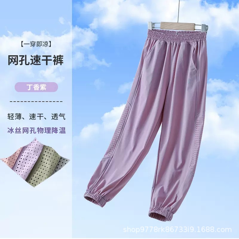 남아용 얇은 바지, 봄 신상 스포츠 바지, 여아용 메쉬 캐주얼 바지, 중대형 아동용 여름 속건 바지 도매스토어 가기