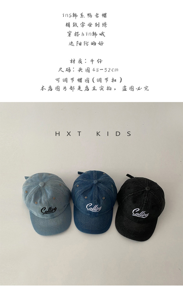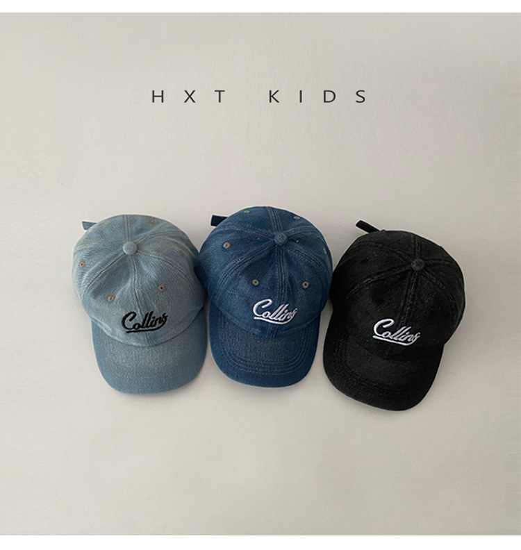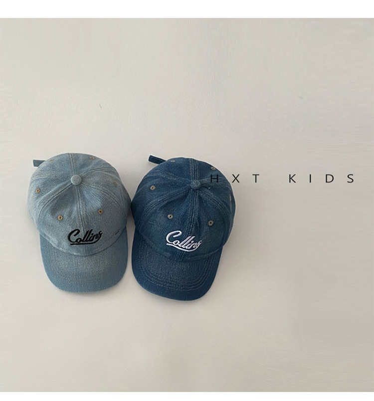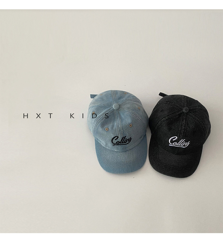 어린이 야구 모자 봄 · 가을 편지 수놓은 씻은 데님 부드러운 양산 모자 한국 패션 아기 모자