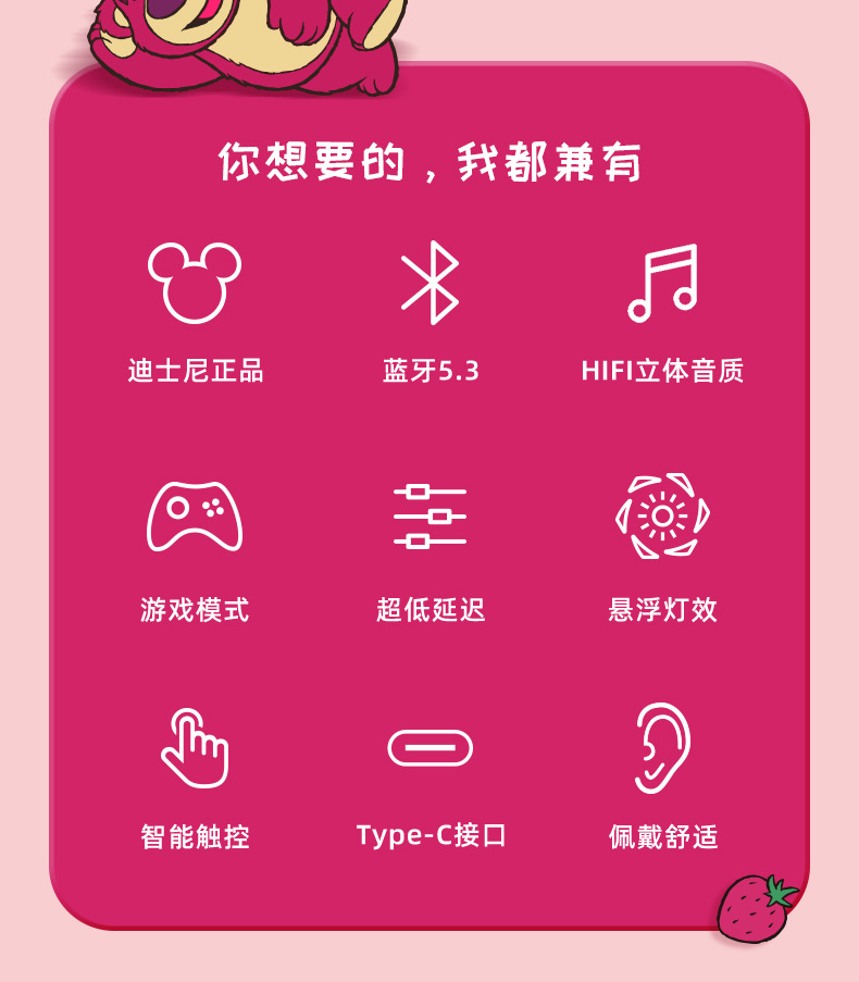 新款迪士尼TWS迷你无线蓝牙耳机 半入耳半透明HIFI高音质降噪通用