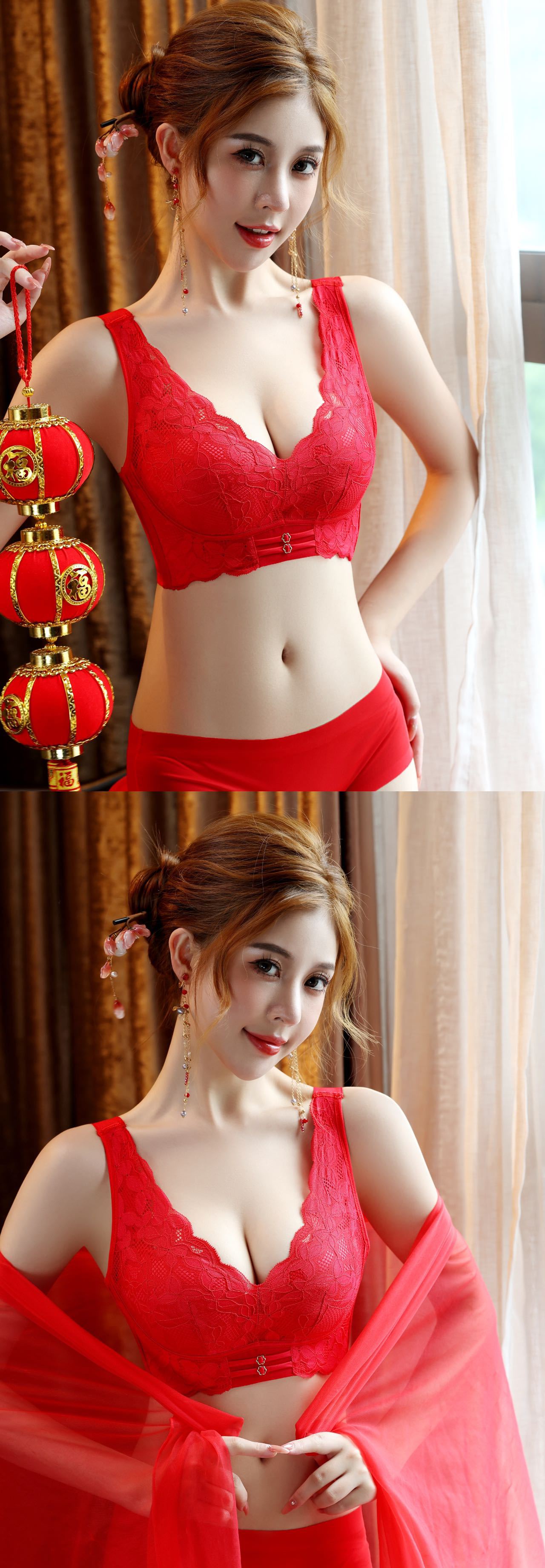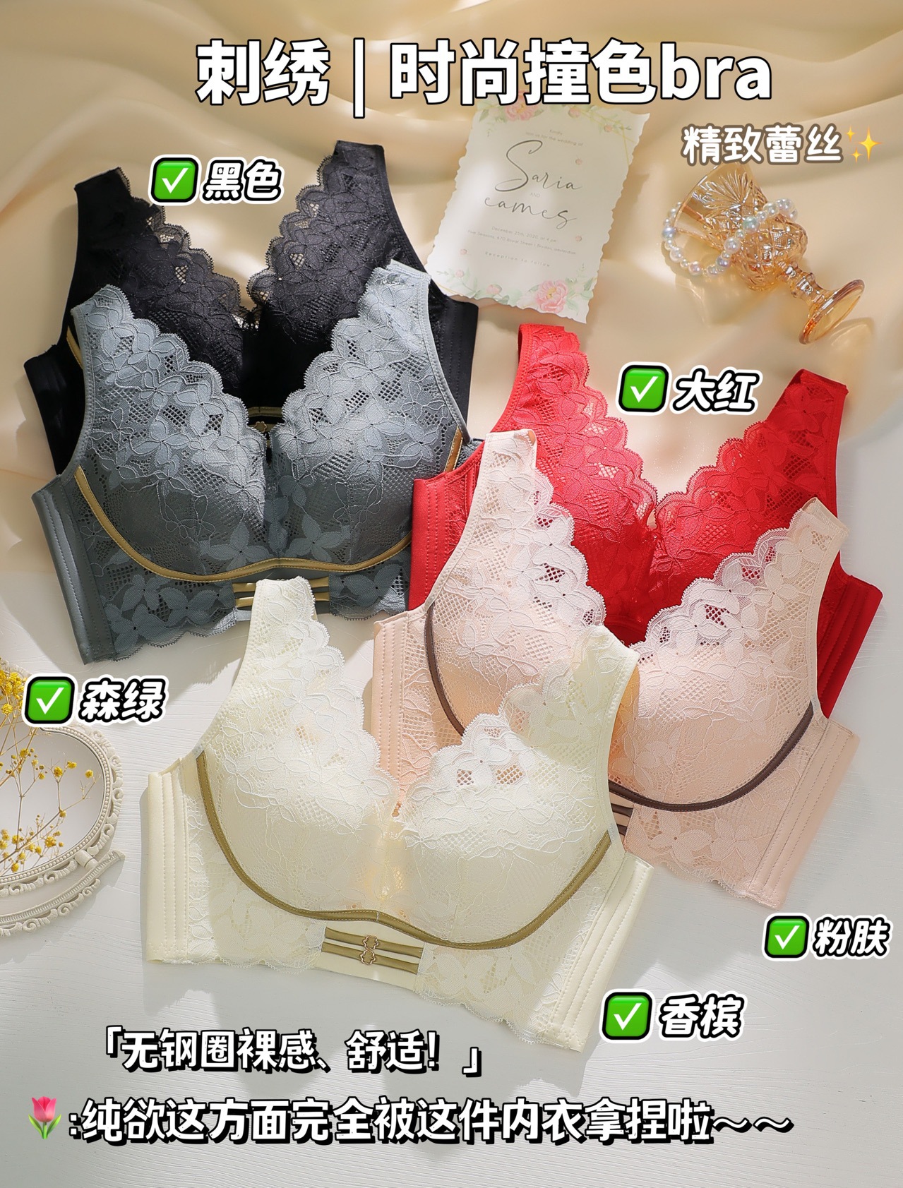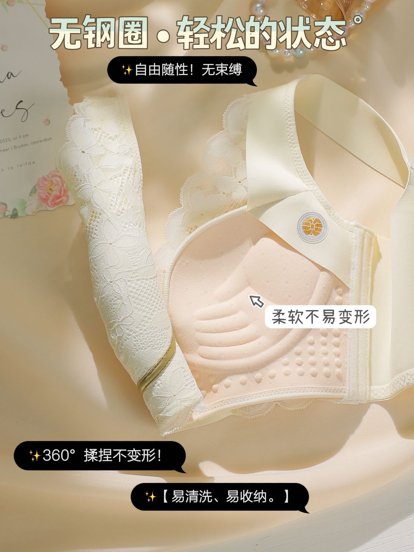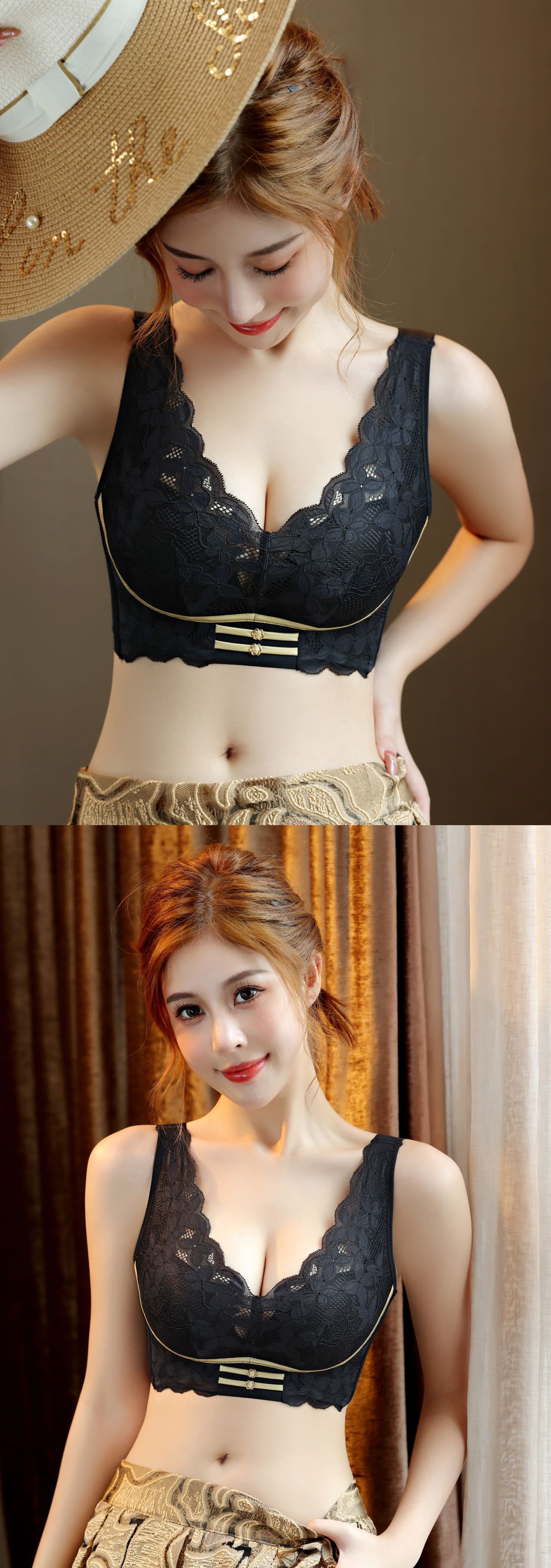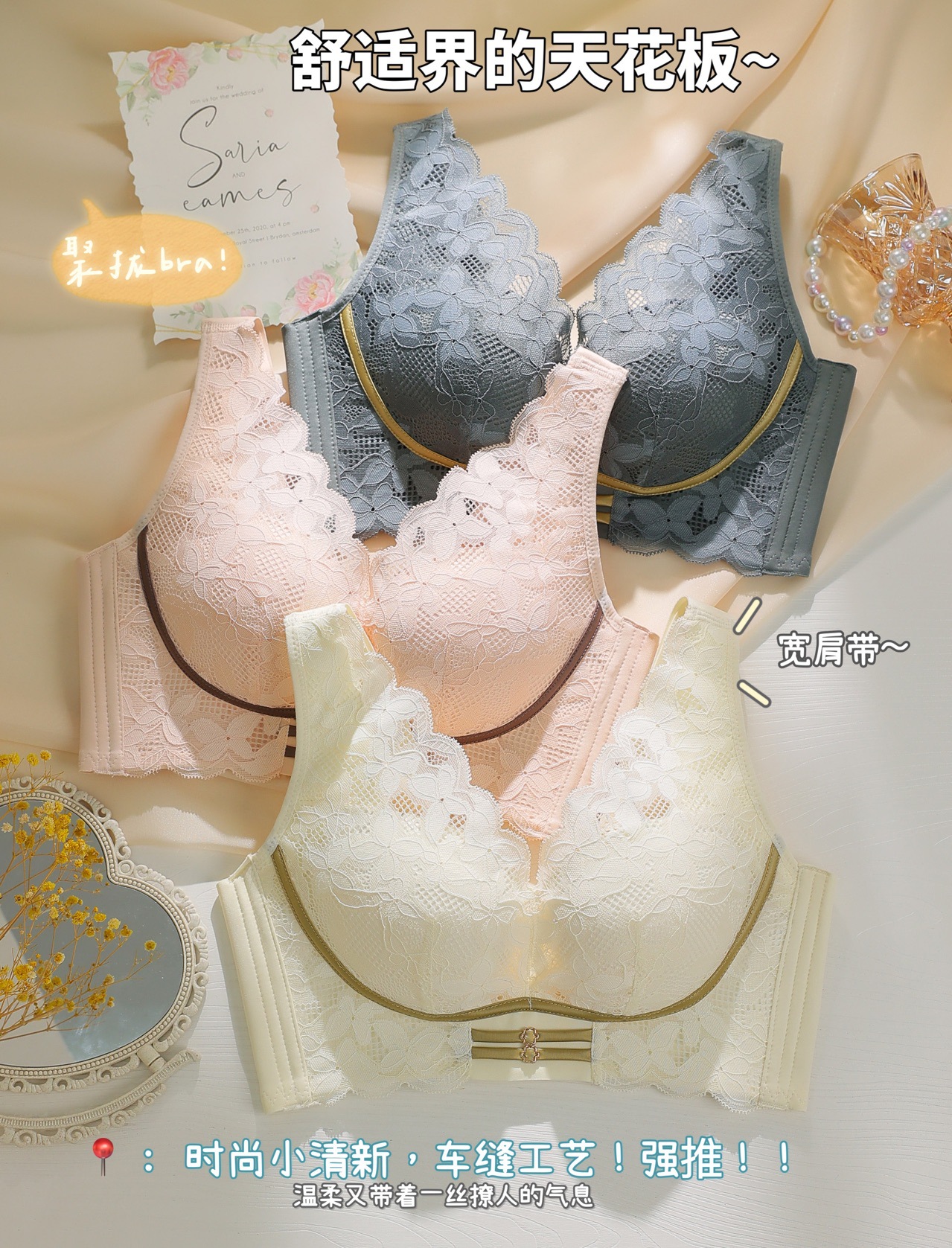 넓은 어깨 끈 레이스 섹시한 중간 두꺼운 팜 컵 푸시 업 속옷 여성의 무선 상단 지원 안티 처짐 가슴 브래지어스토어 가기
