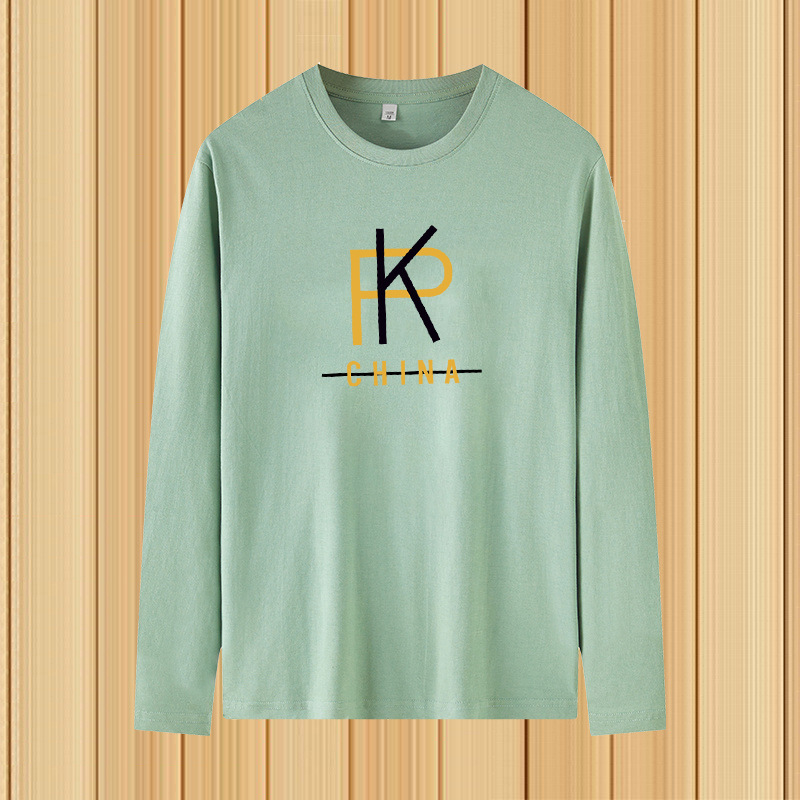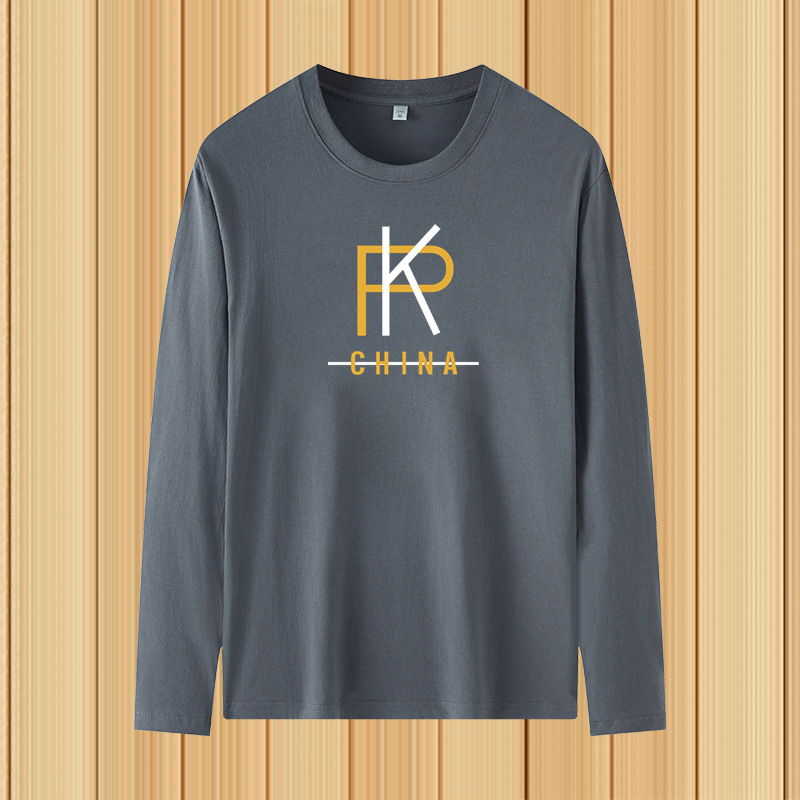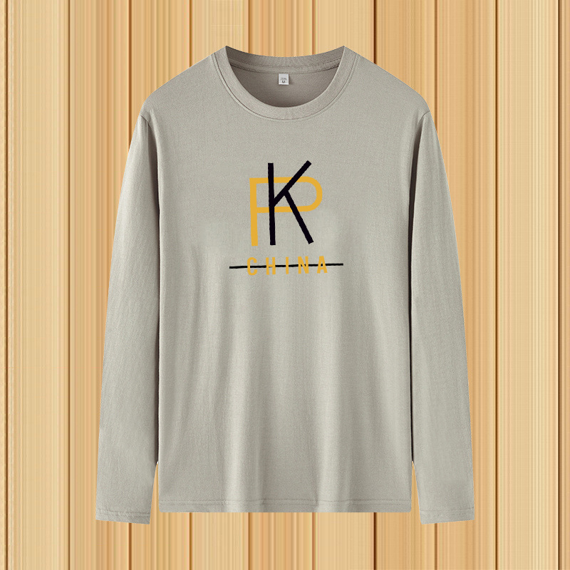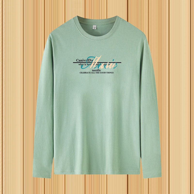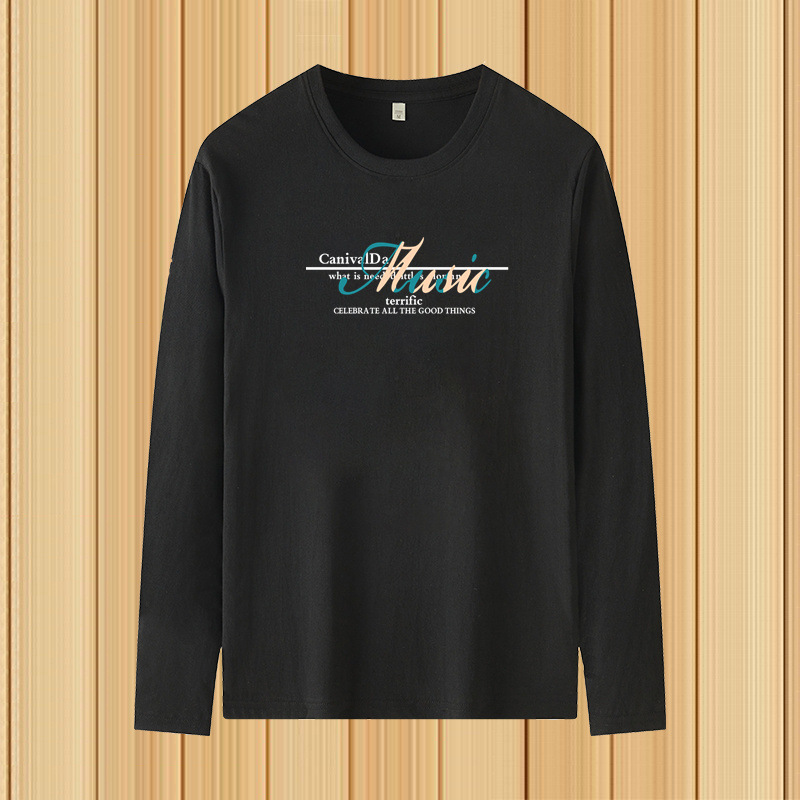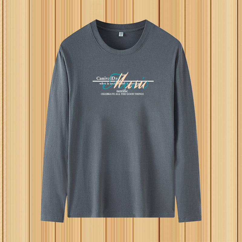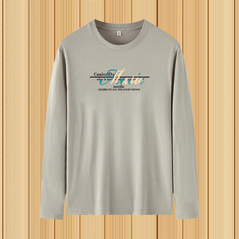 봄과 가을 새로운 얇은 남성 긴팔 부드럽고 편안한 라운드 넥 바닥 셔츠 인쇄 유행 대형 티셔츠 남성 통기성스토어 가기