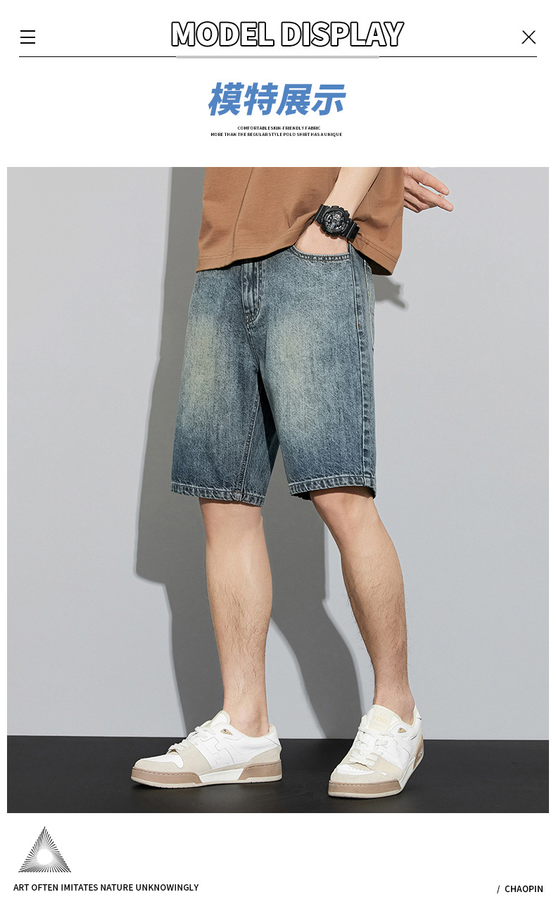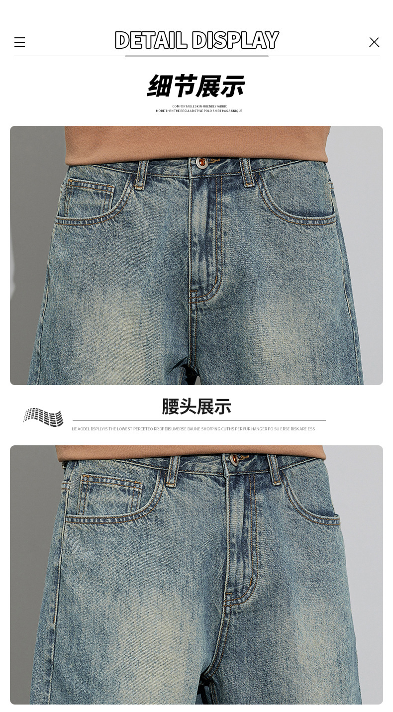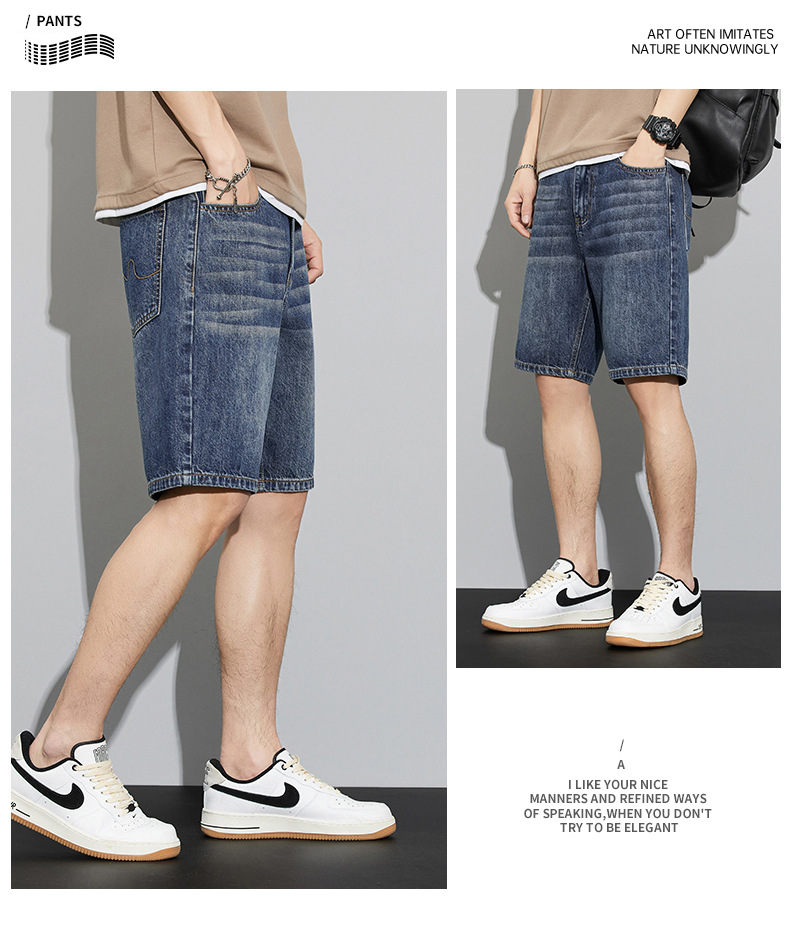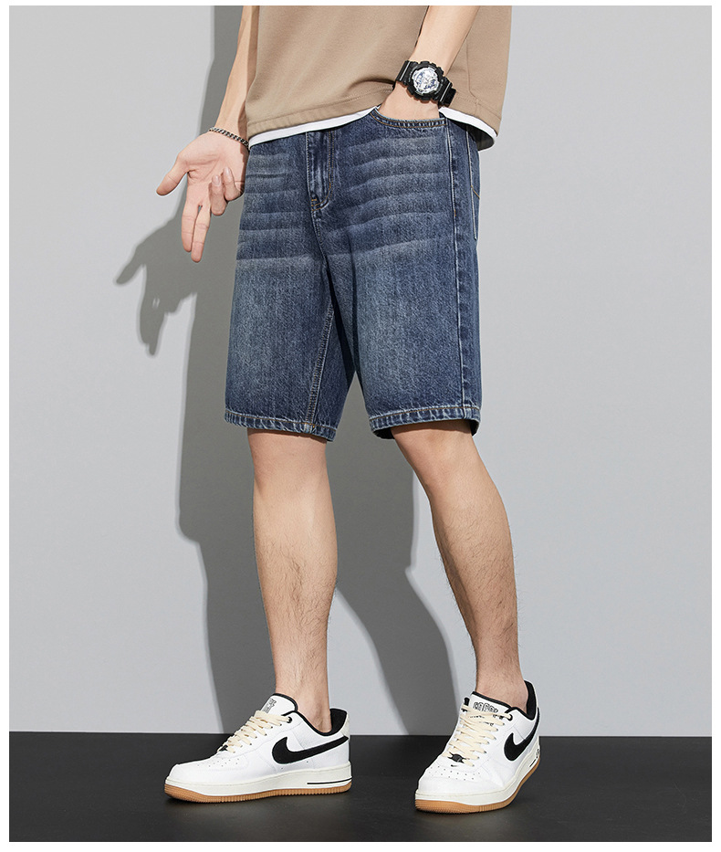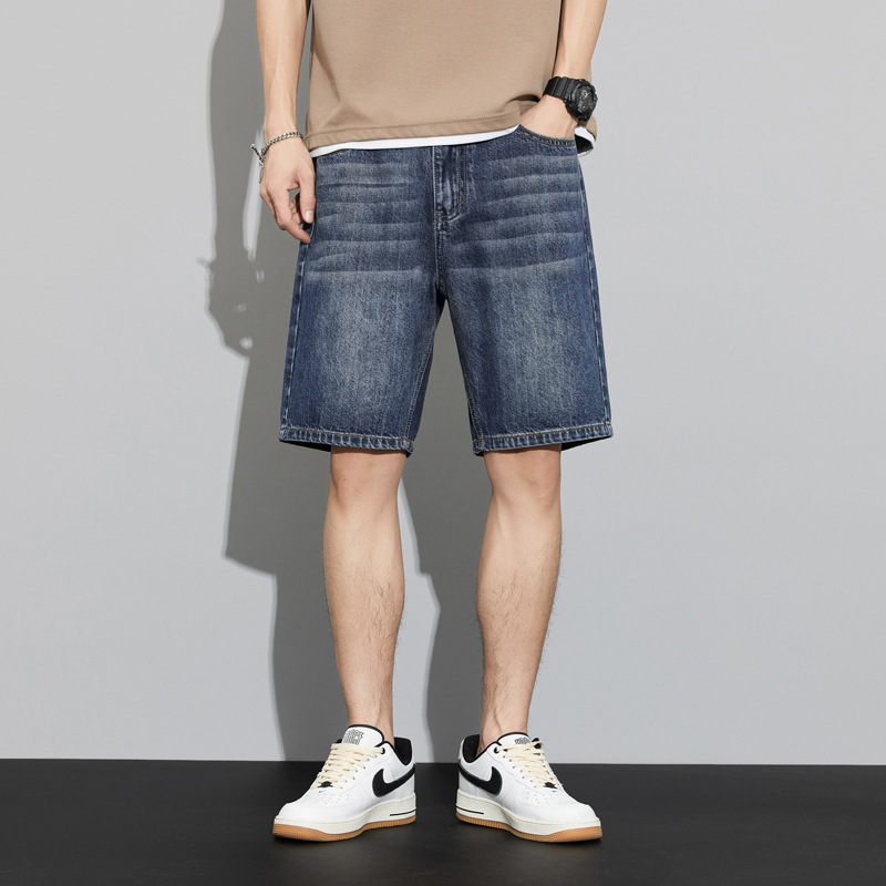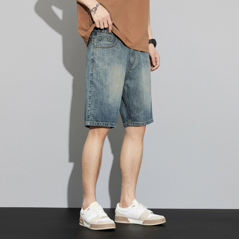 2024 여름 새로운 청바지 반바지 남자의 느슨한 스트레이트 미국 하이 스트리트 레트로 트렌디 한 남자 올 매치 트렌디스토어 가기