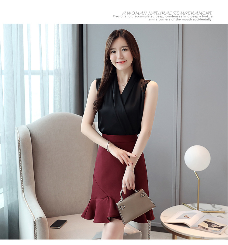 실제 비디오 여름 민소매 쉬폰 셔츠 여성용 기질 슬림 V-넥 뽕나무 실크 쉬폰 셔츠 조끼스토어 가기