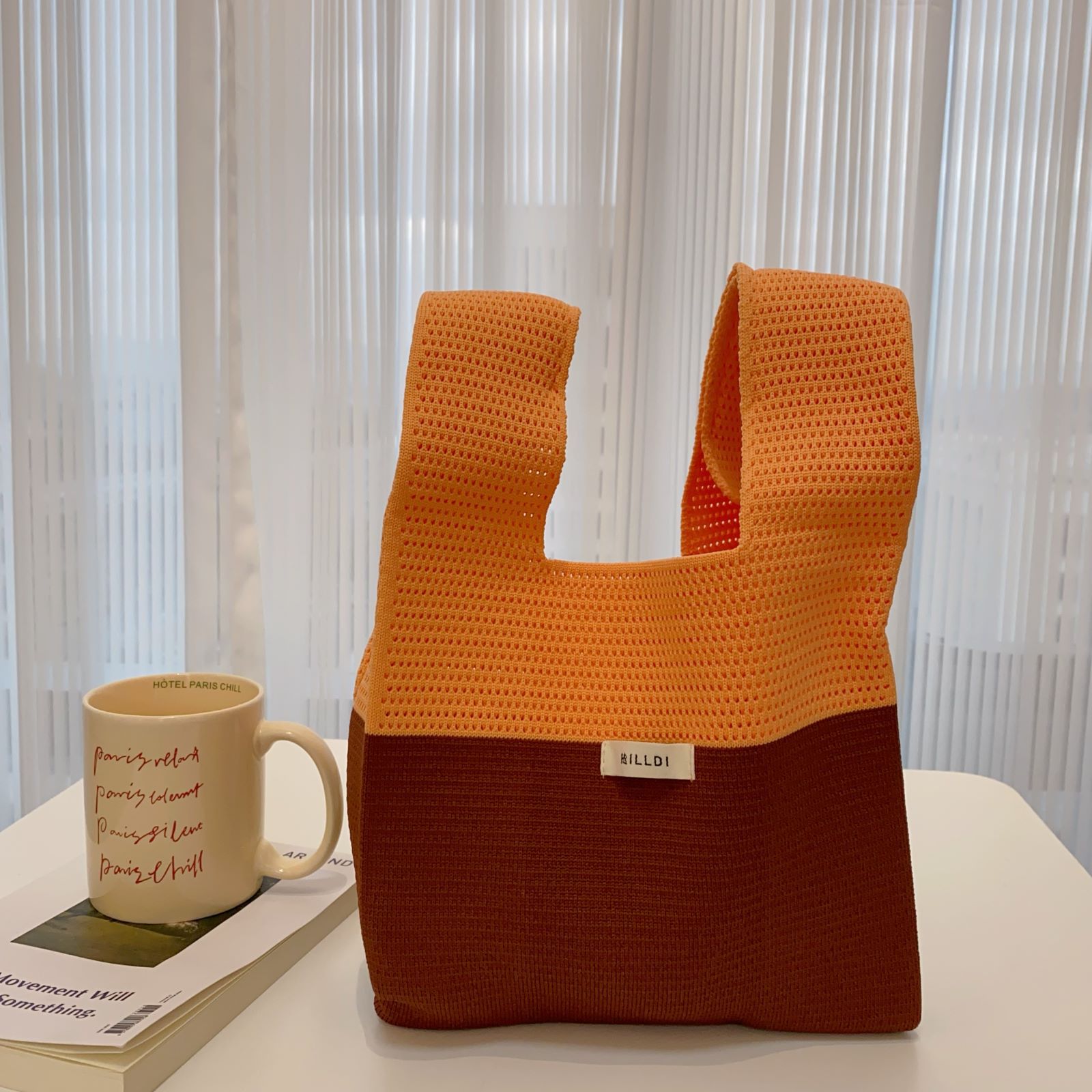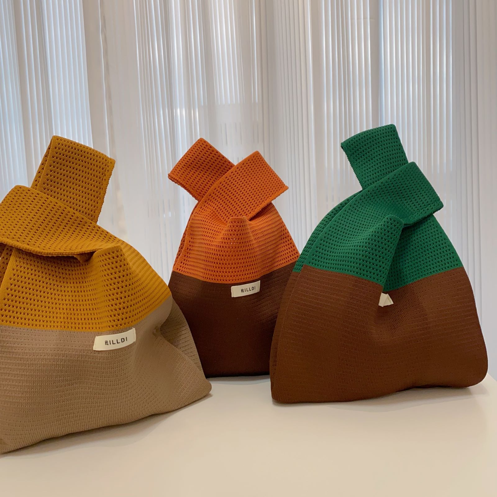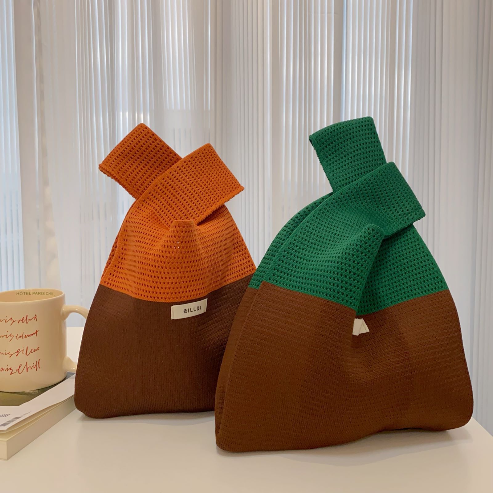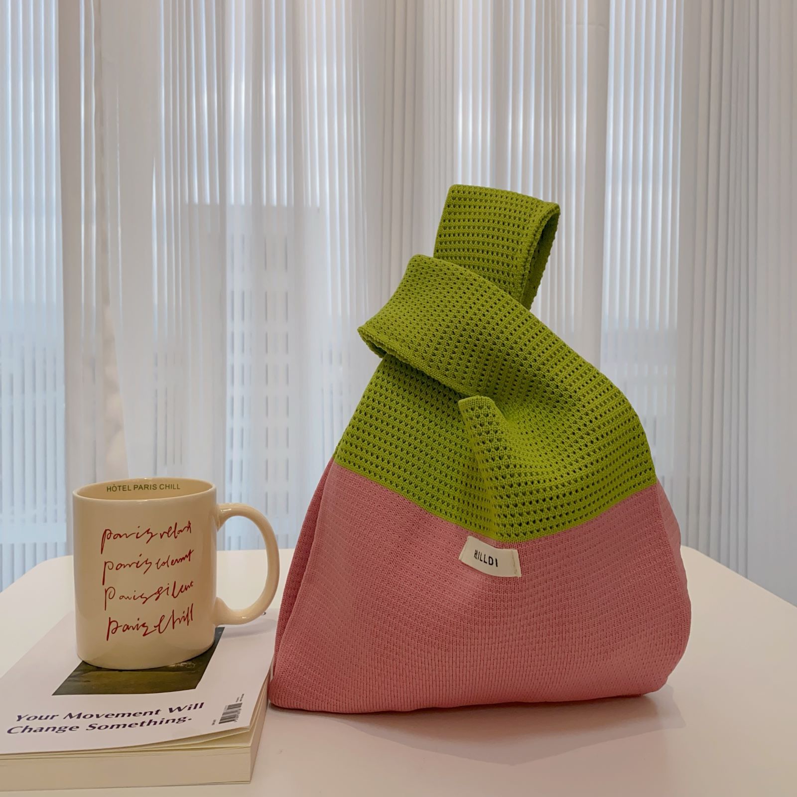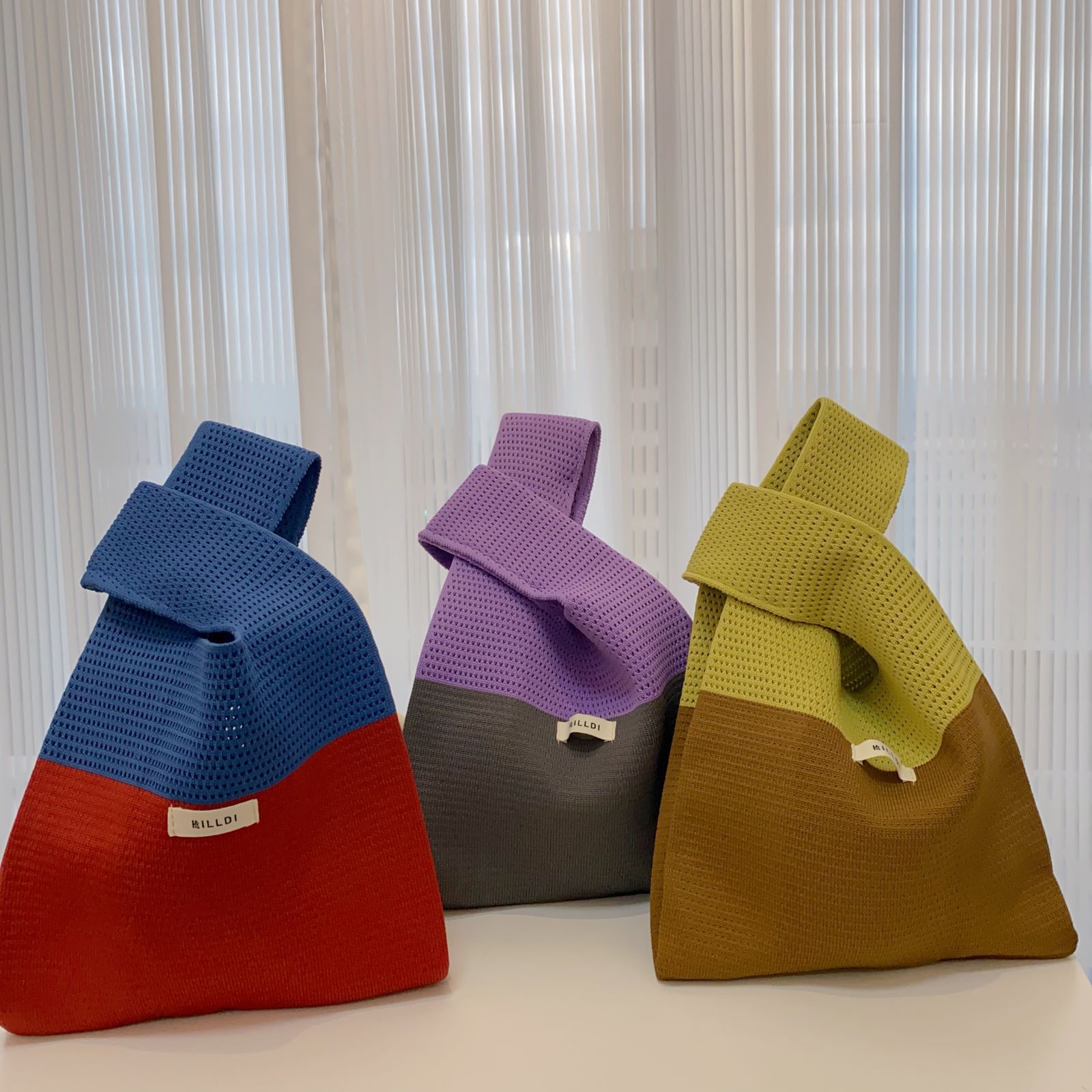 시장 트렌드 더블 매칭 대비 컬러 니트 백 봄과 여름 중공 짠 도파민 소녀 손 가방 버킷 백스토어 가기