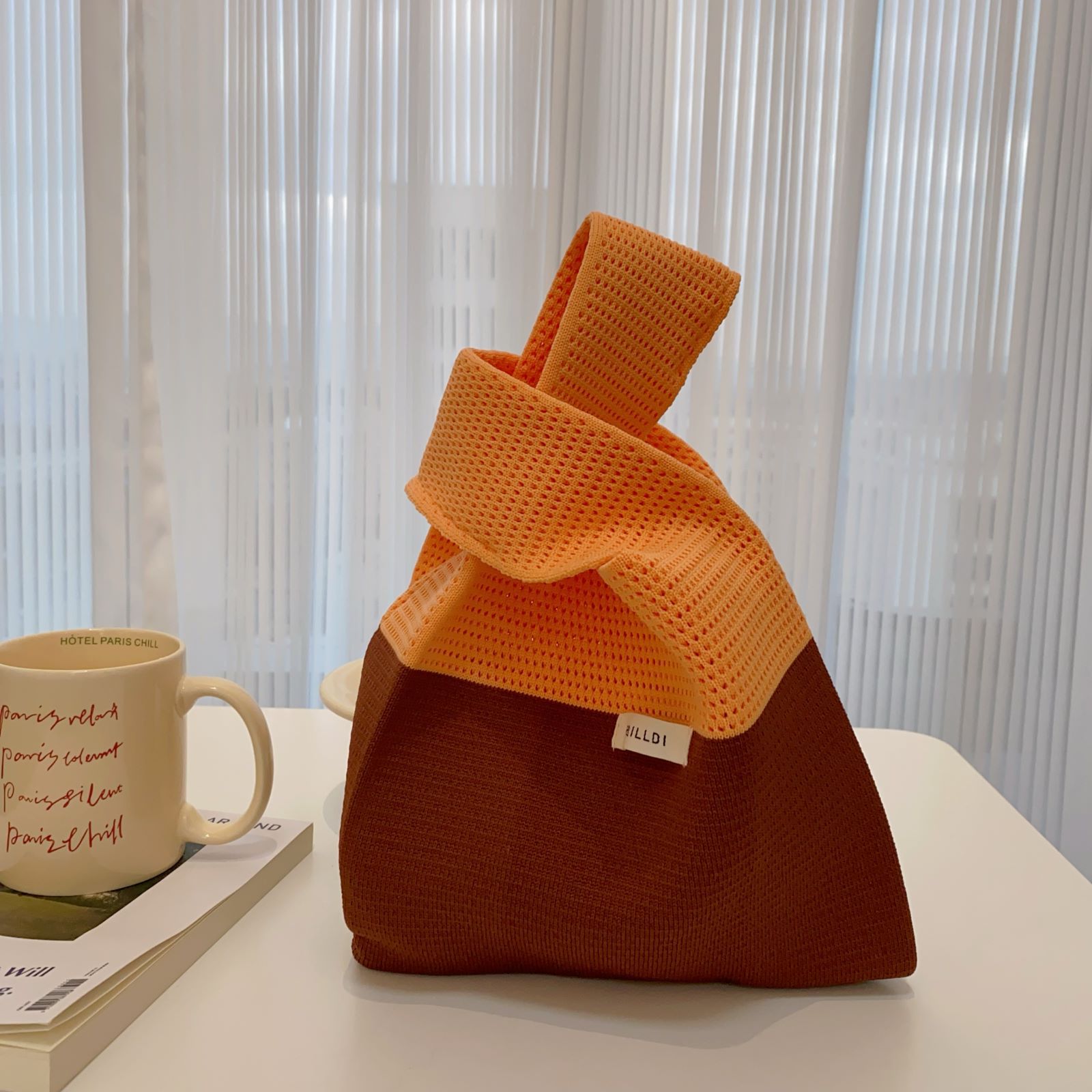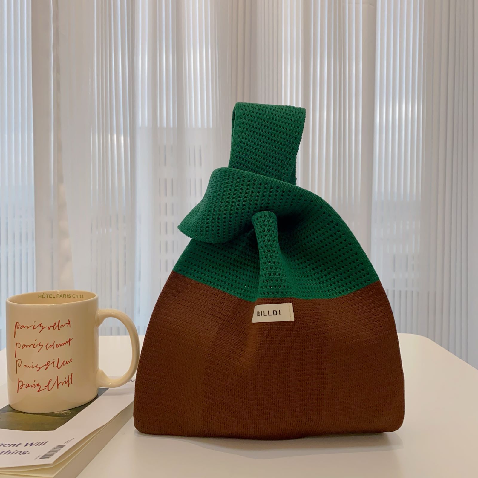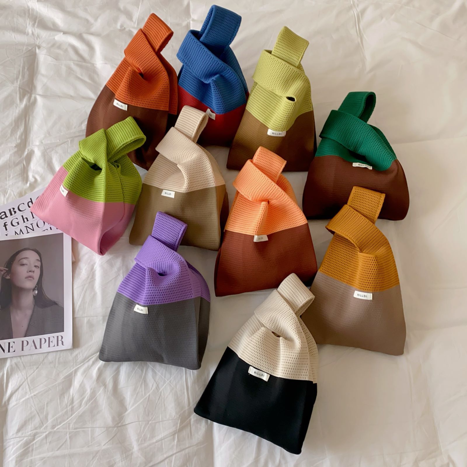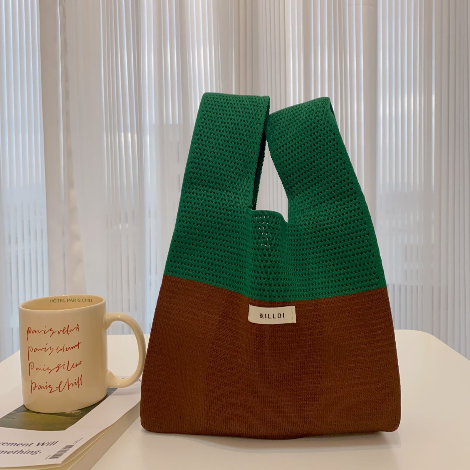 시장 트렌드 더블 매칭 대비 컬러 니트 백 봄과 여름 중공 짠 도파민 소녀 손 가방 버킷 백스토어 가기