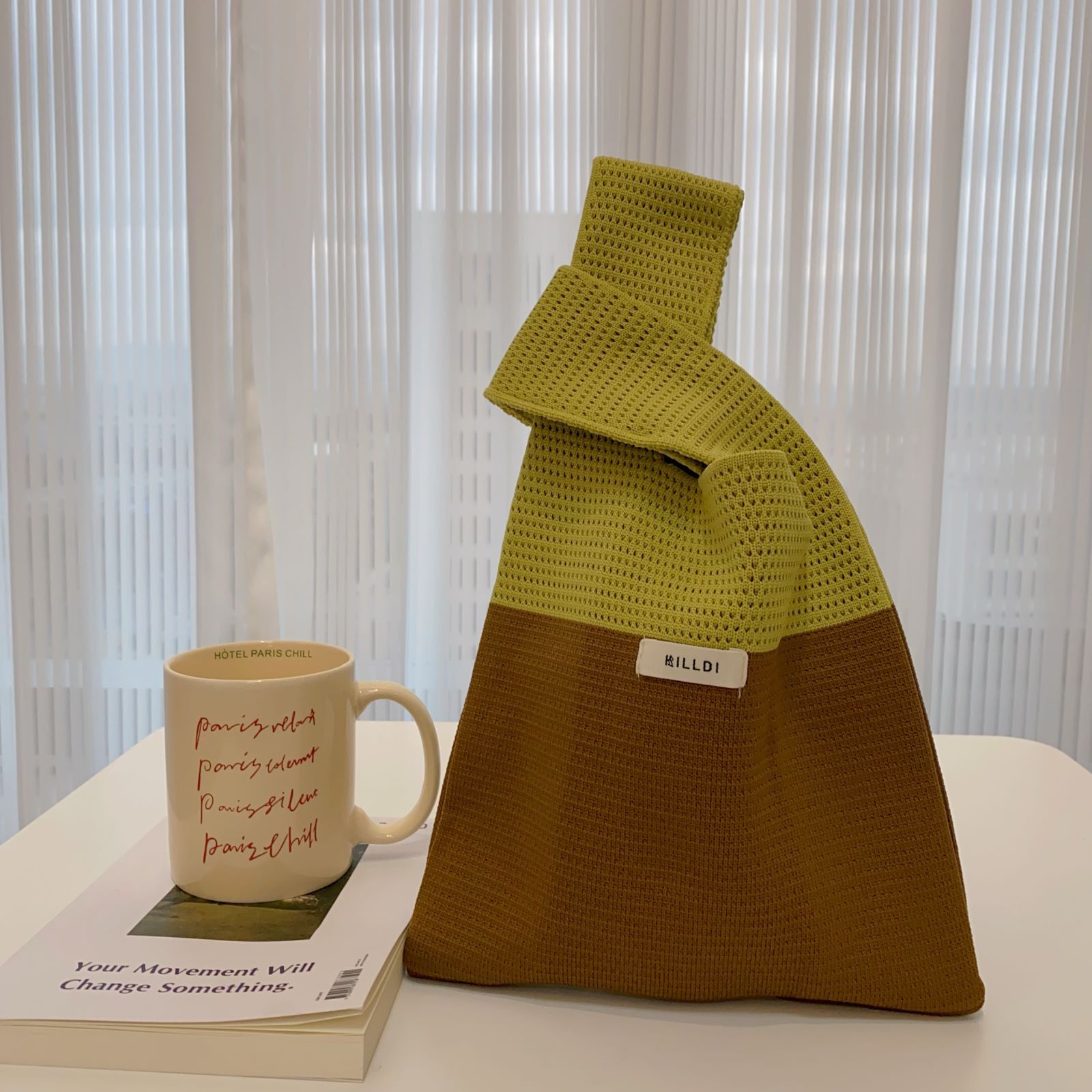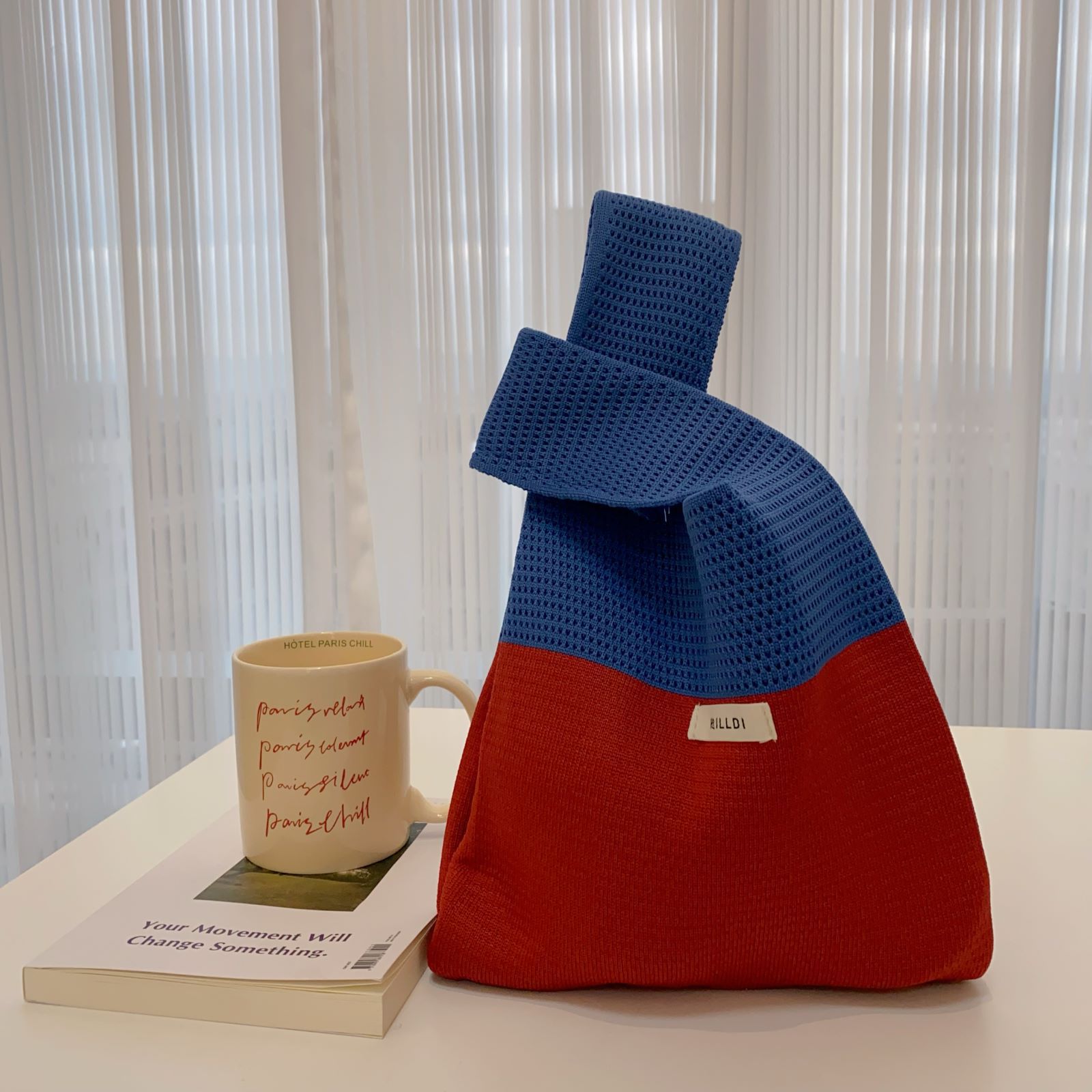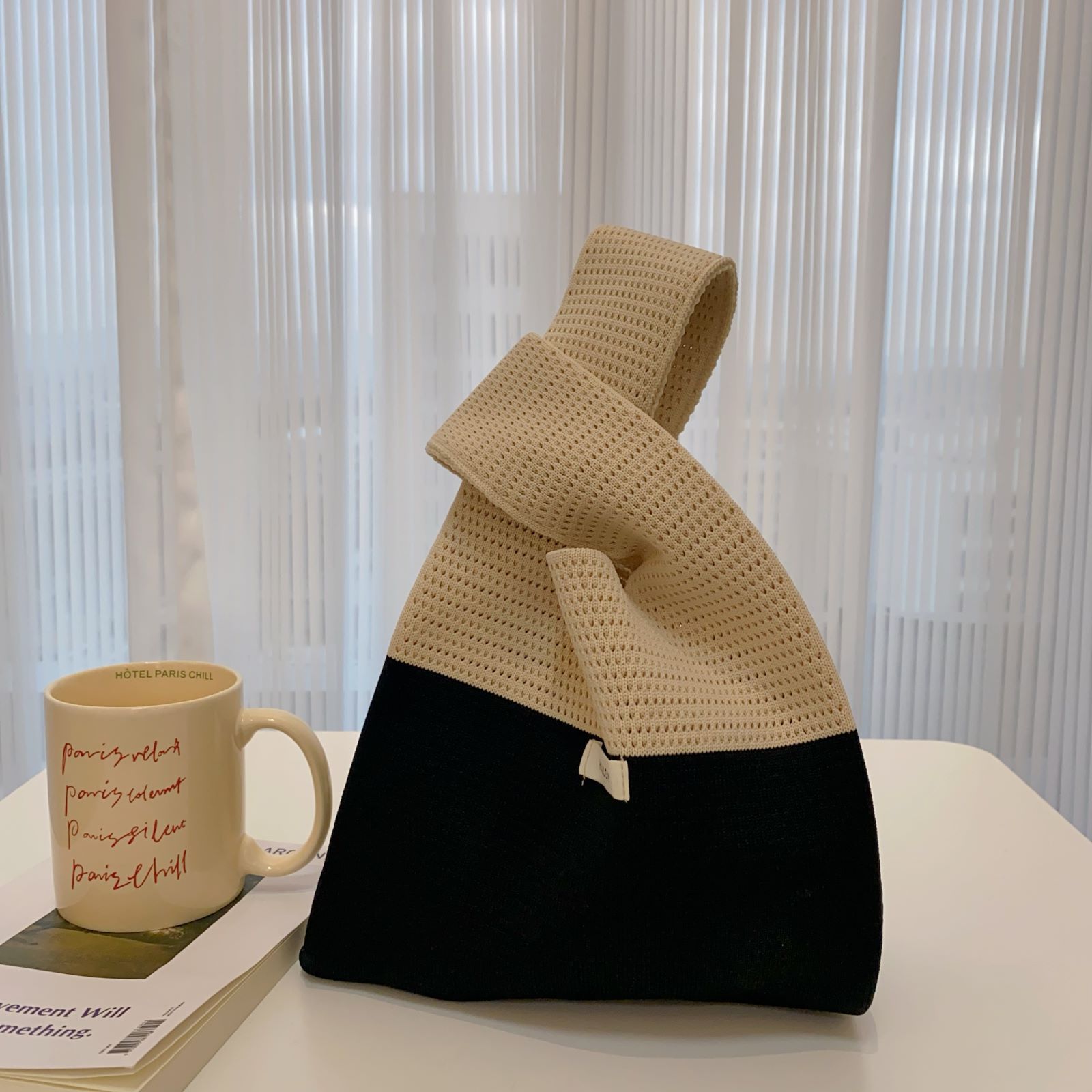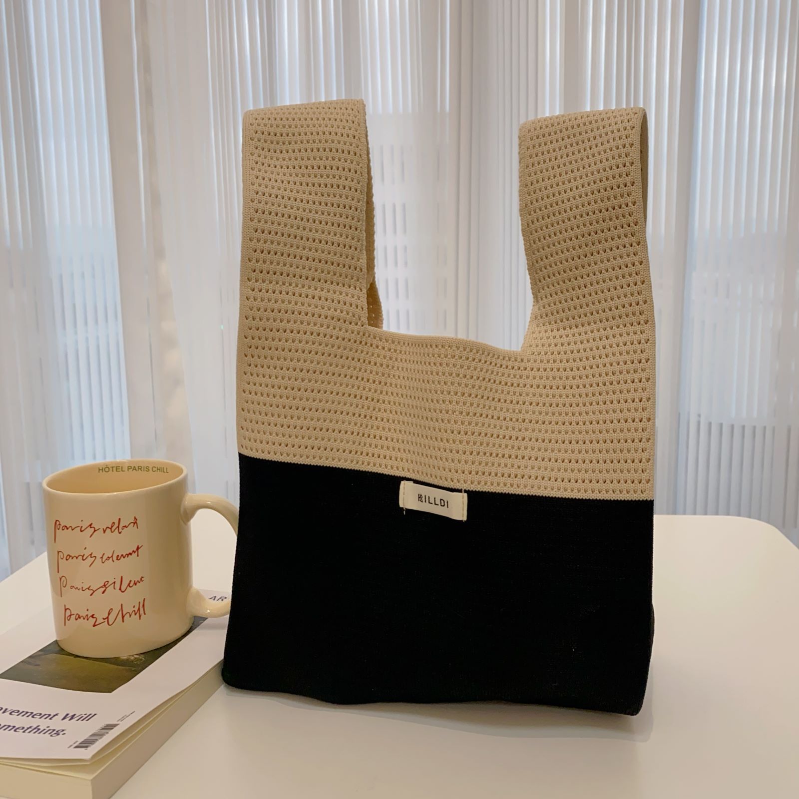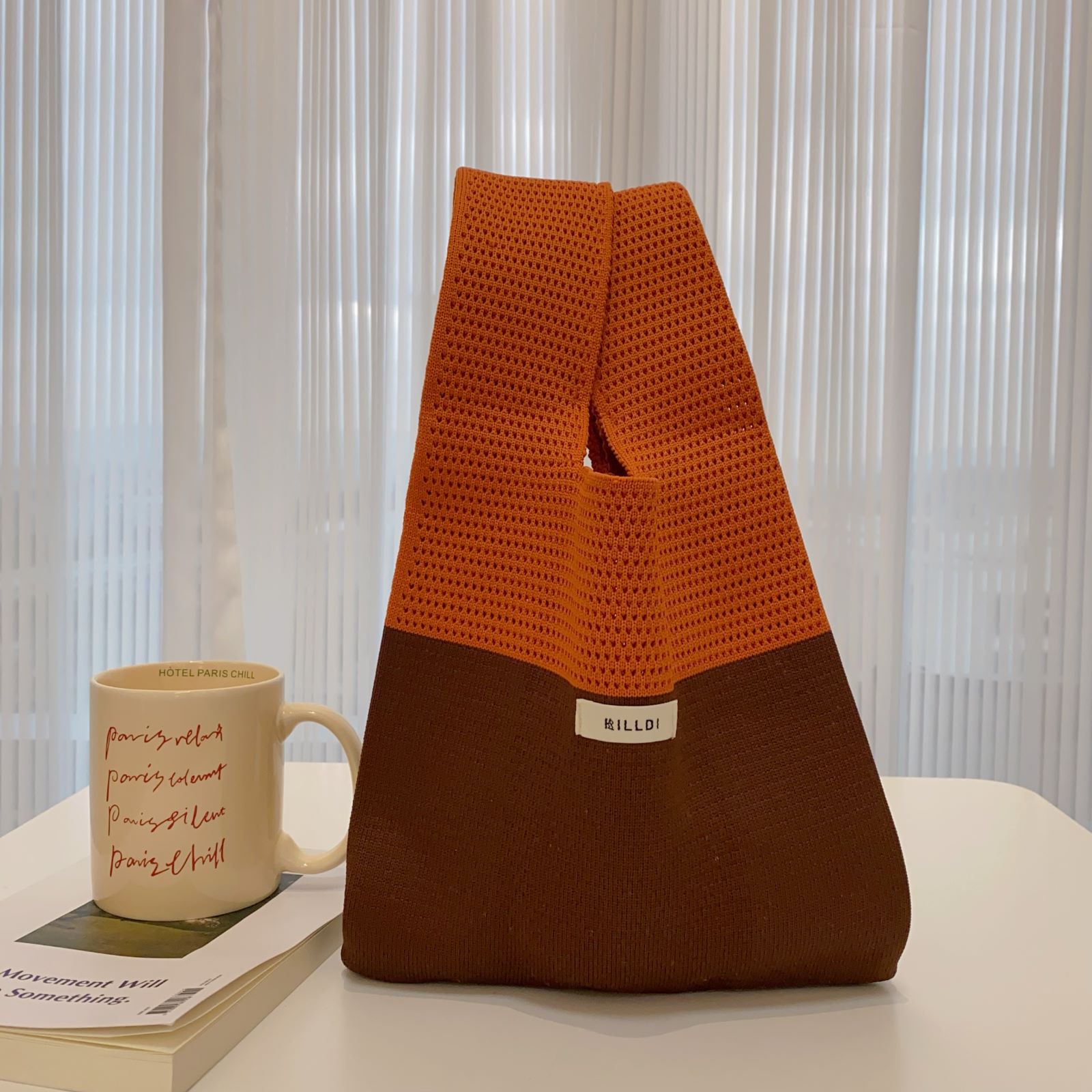 시장 트렌드 더블 매칭 대비 컬러 니트 백 봄과 여름 중공 짠 도파민 소녀 손 가방 버킷 백스토어 가기