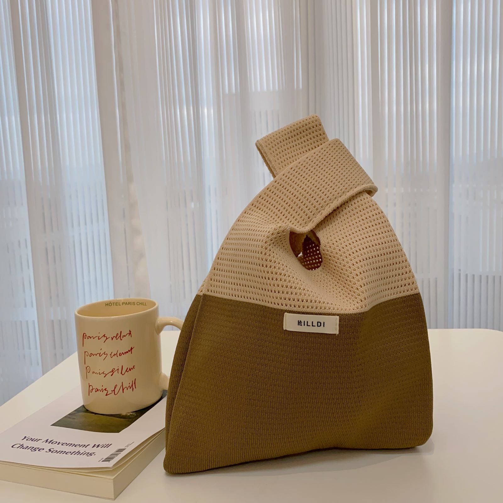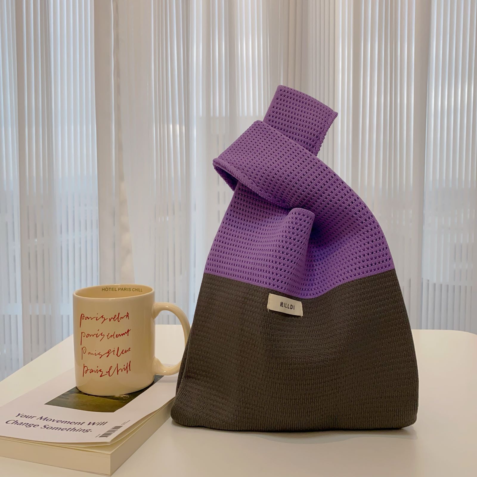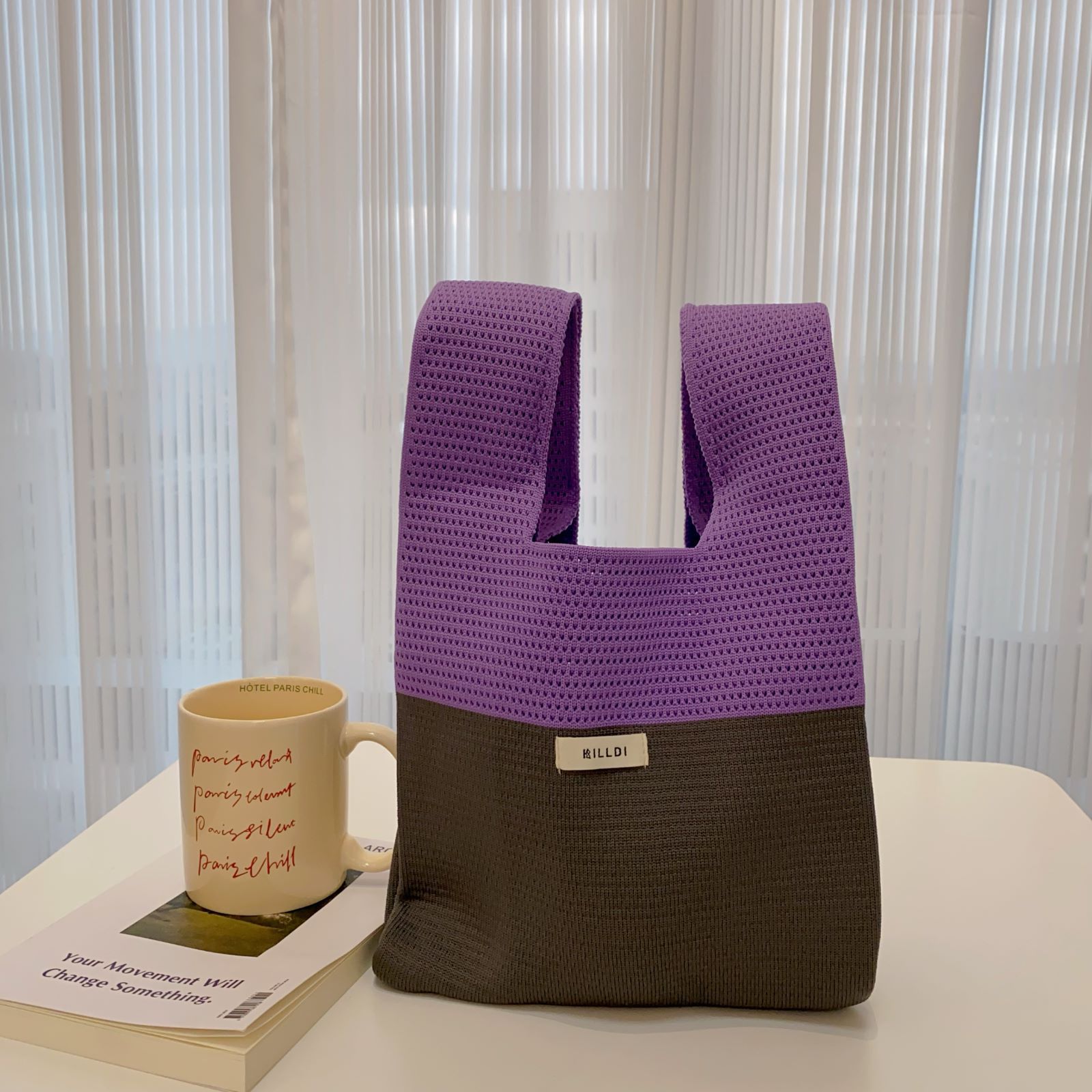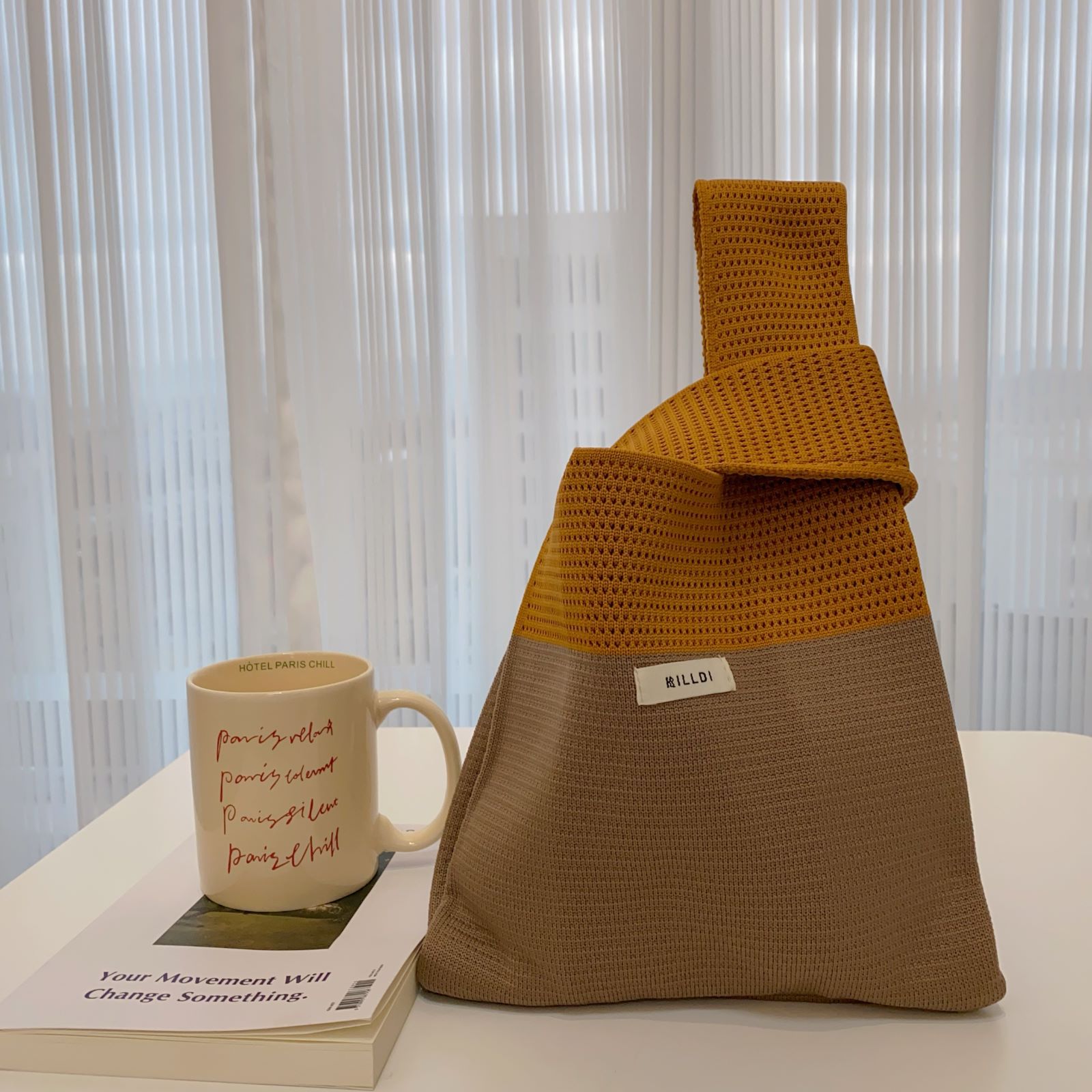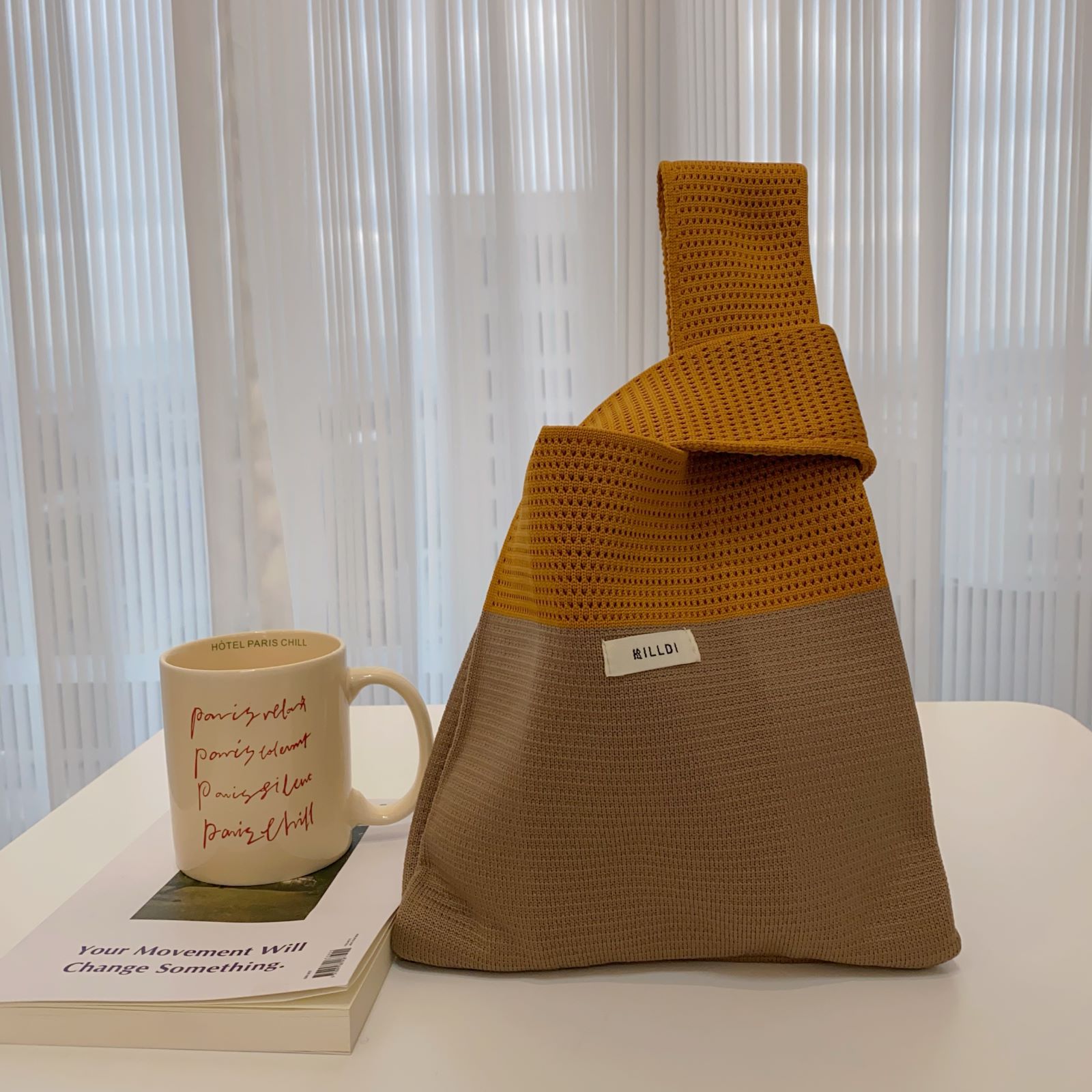 시장 트렌드 더블 매칭 대비 컬러 니트 백 봄과 여름 중공 짠 도파민 소녀 손 가방 버킷 백스토어 가기