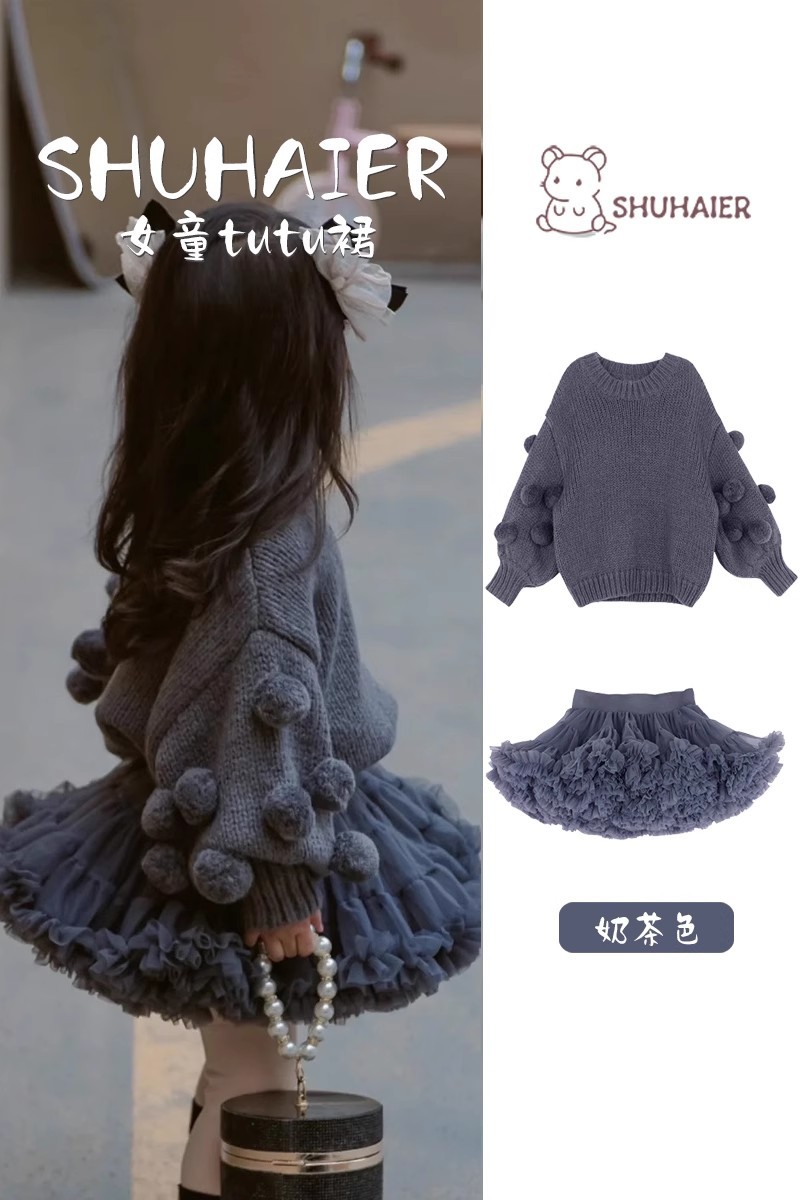 어린 소녀의 가을과 겨울 옷을 세트 아기 소녀의 한국식 유행 세트 어린이 스웨터 스커트 투피스 서양식 옷
