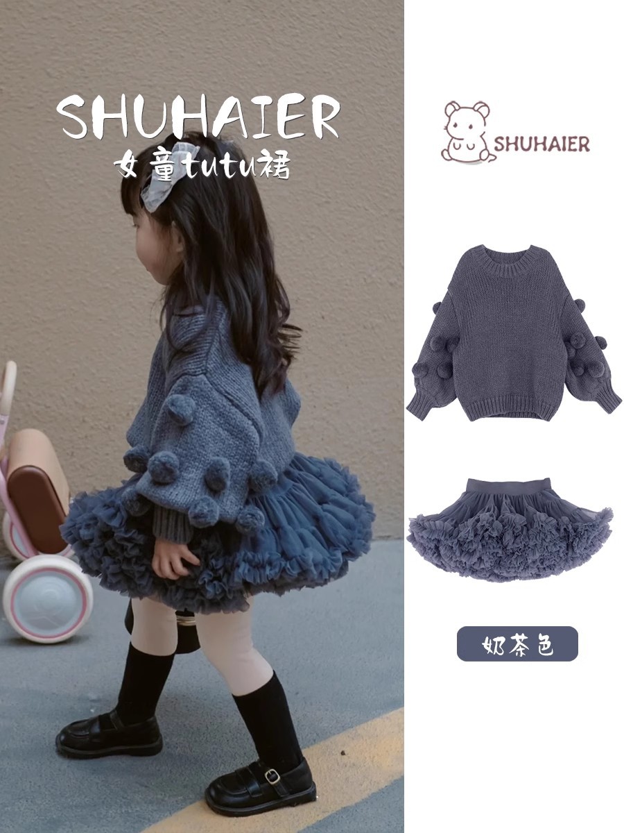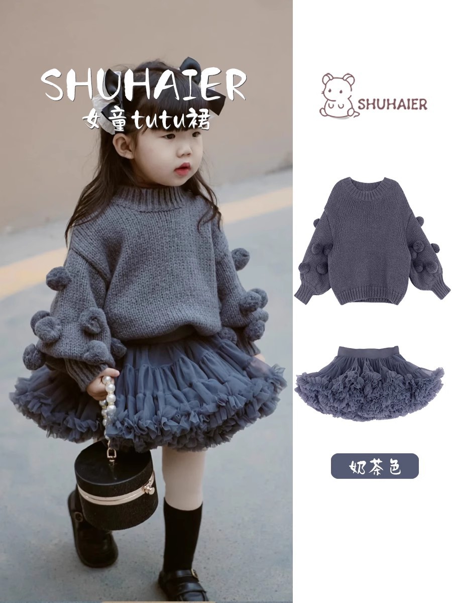어린 소녀의 가을과 겨울 옷을 세트 아기 소녀의 한국식 유행 세트 어린이 스웨터 스커트 투피스 서양식 옷스토어 가기