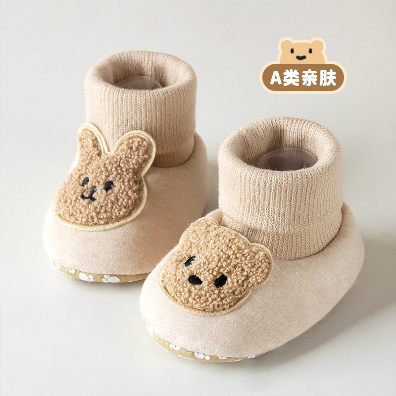 아기 유아면 신발 봄과 가을 0-1 세 소년 소녀 아기 부드러운 바닥 유아 신발 양말 실내 미끄럼 방지 양말