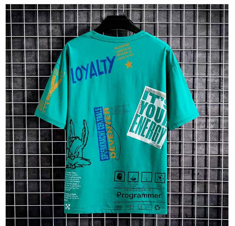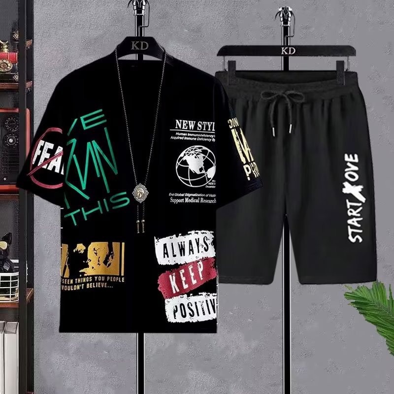 여름 새로운 캐주얼 스포츠 세트 남성용 얇은 2 피스 남성 반팔 티셔츠 반바지 반팔 패션 브랜드 대외 무역스토어 가기
