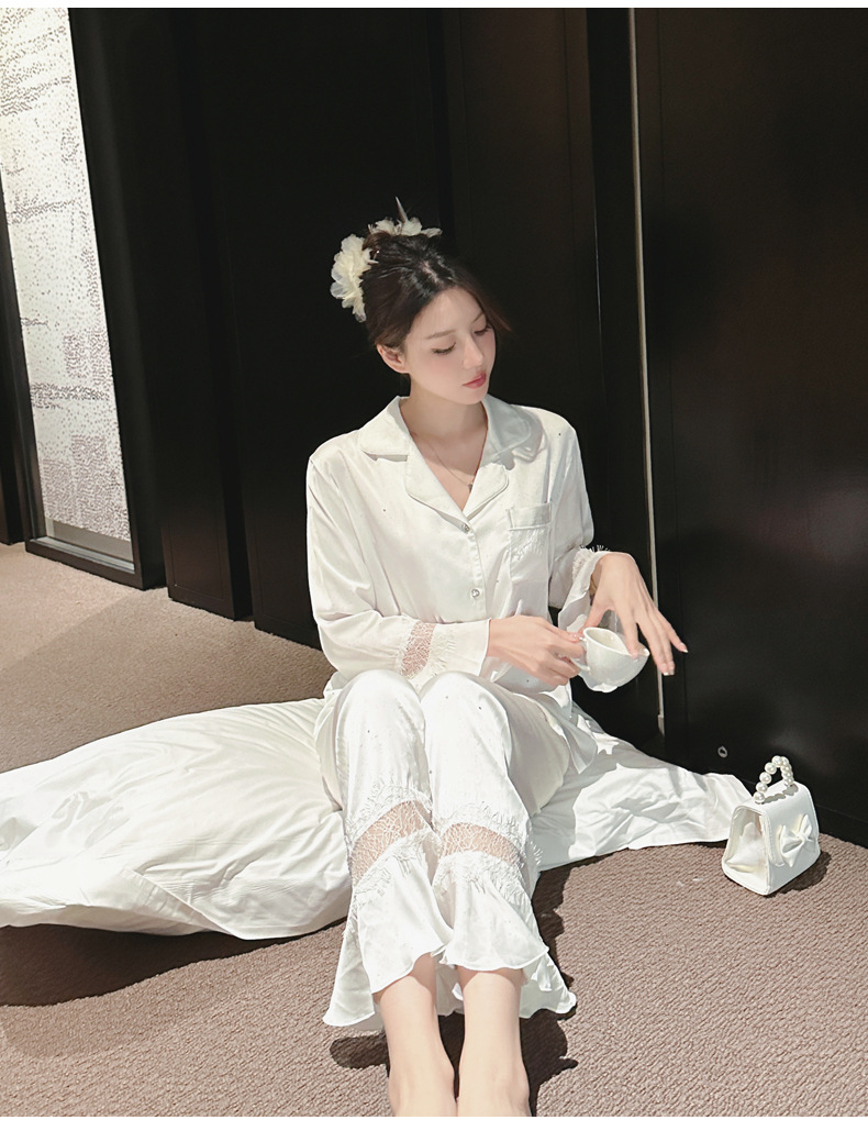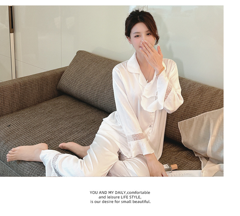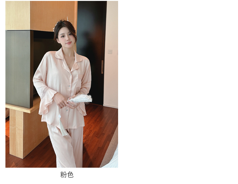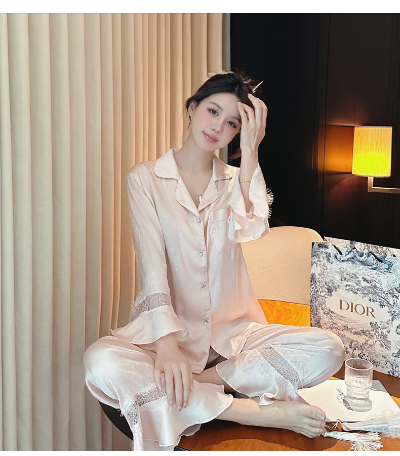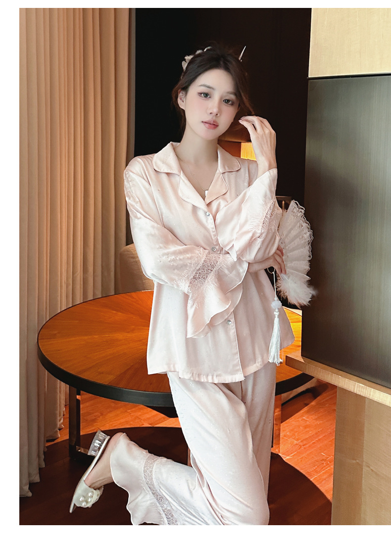 2025 봄 신상품 아이스 실크 잠옷 여성용 나비 모양 빈티지 스타일 프렌치 요정 스타일 홈웨어 단색 세트스토어 가기