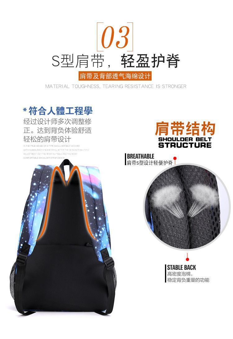 국경 간 만화 Brui 3 조각 대외 무역 책가방 남성과 여성의 캐주얼 가방 인쇄 대용량 야외 배낭