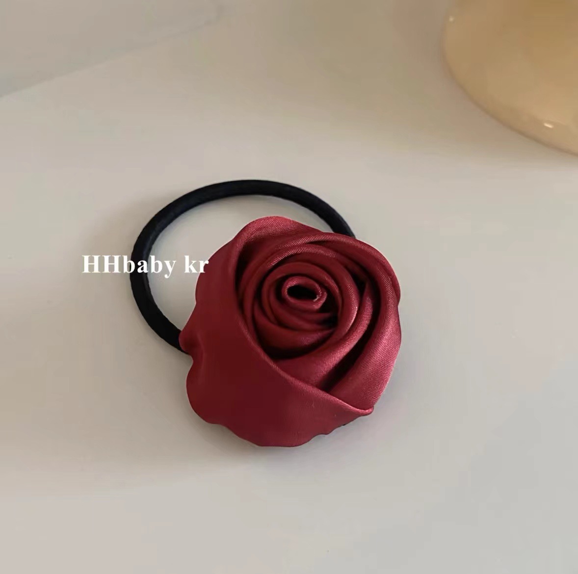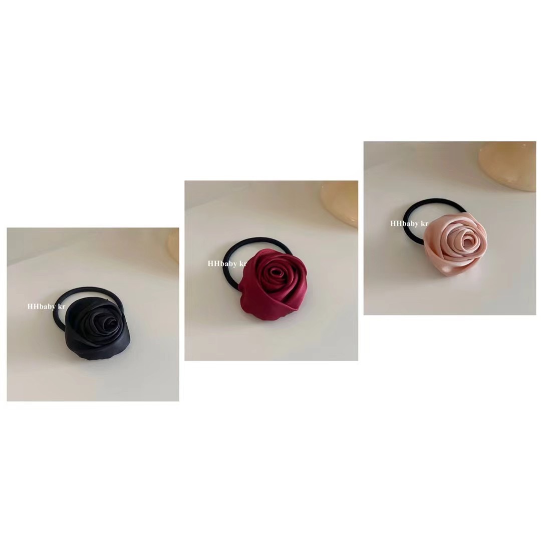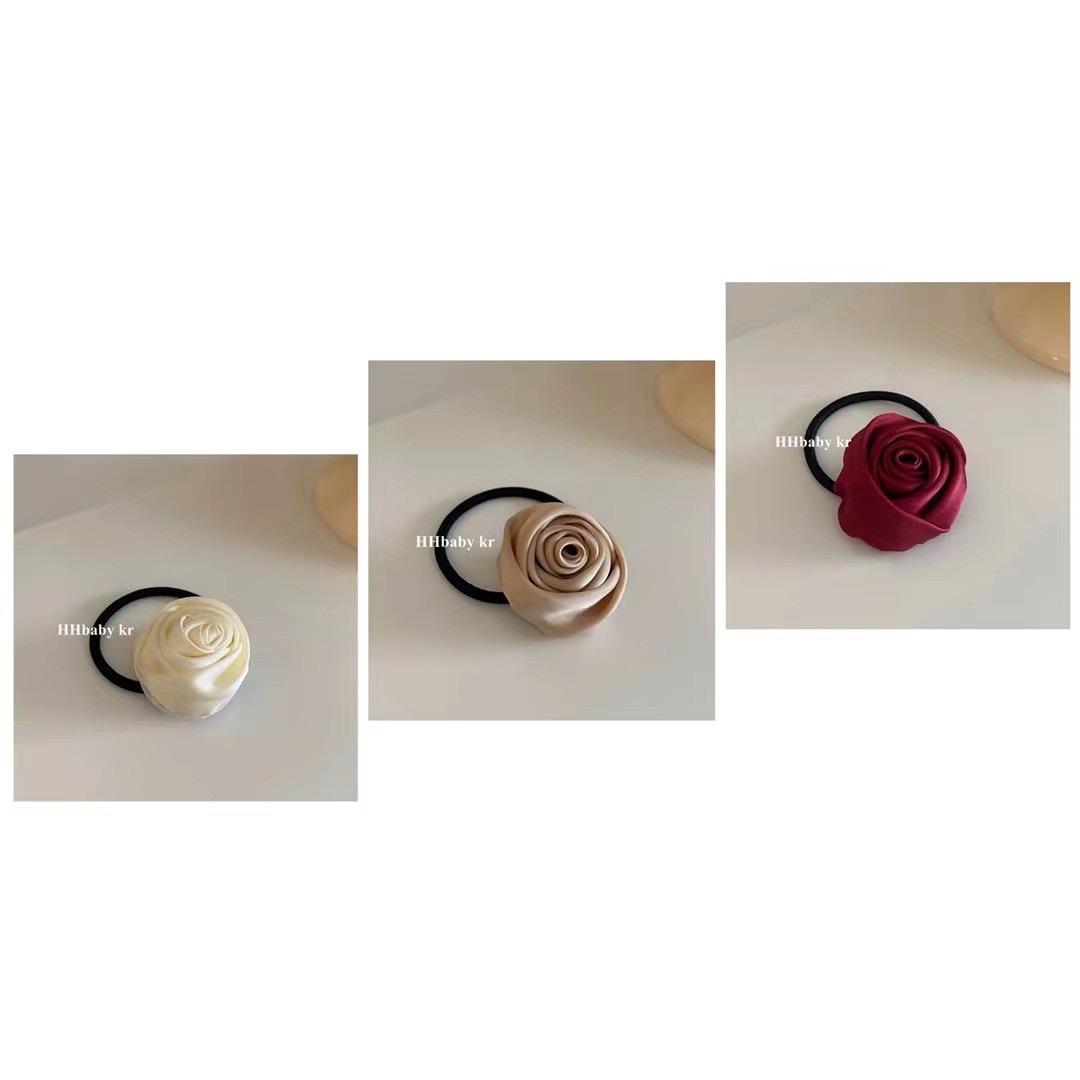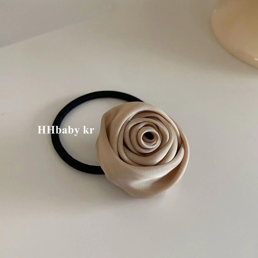 프랑스 새틴 복고풍 수제 로즈 헤어 밴드 우아한 기질 넥타이 헤어 고무 밴드 높은 탄성 헤어 로프 헤어 로프스토어 가기