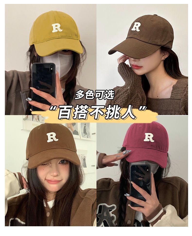 여성을위한 큰 머리 둘레 야구 모자 한국식 얼굴 모양의 작은 R 로고 가을과 겨울 깊은 최고점 모자 유행 스포츠 올매치 모자스토어 가기