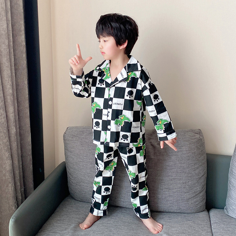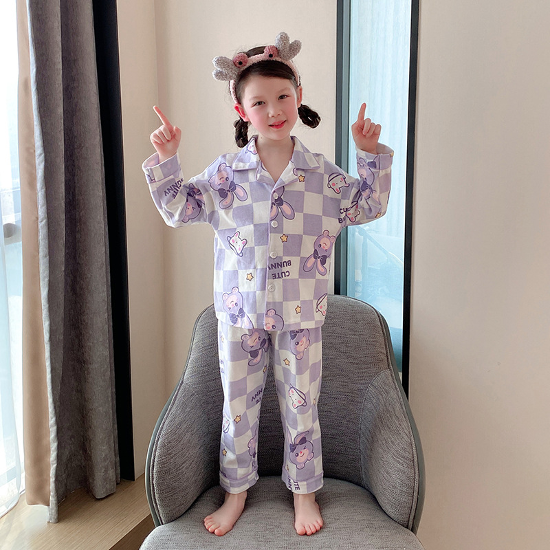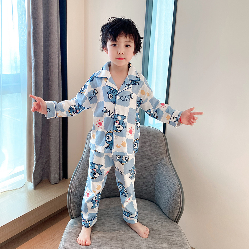 소녀 잠옷 어린이 봄과 가을 면화 얇은 긴팔 홈 착용 중간 및 큰 어린이 의류 면화 소년 여름 에어컨 옷스토어 가기