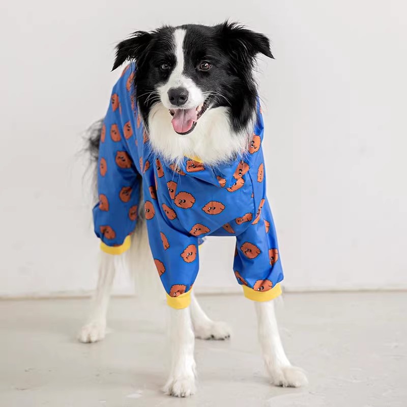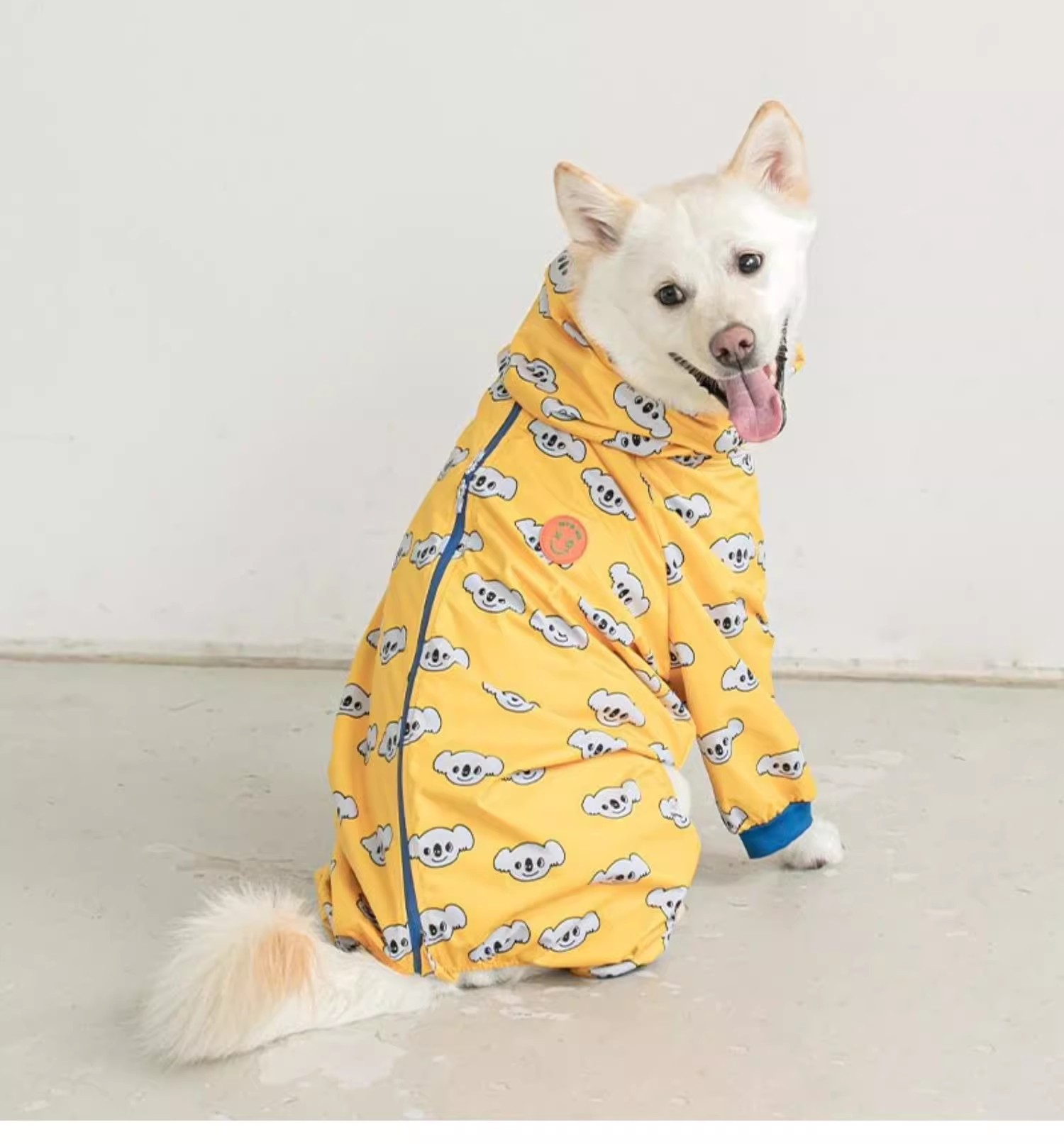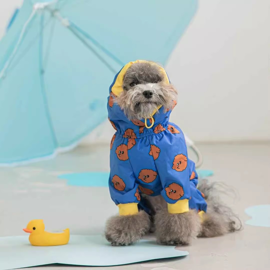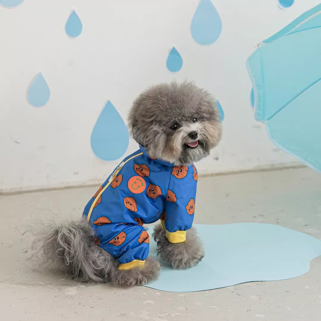 한국 애완 동물 개 방수 모든 것을 포함하는 비옷 판초 중간 작은 개 네 다리 후드 테디 베어 국경스토어 가기