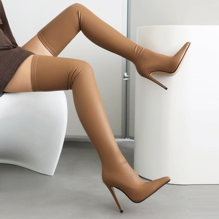 섹시한 여장 여성용 대형 부츠 솔리드 컬러 포인티드 토 하이힐 여성용 새로운 무릎 위 여성용 부츠 슬리브 무릎 위 부츠 여성용스토어 가기