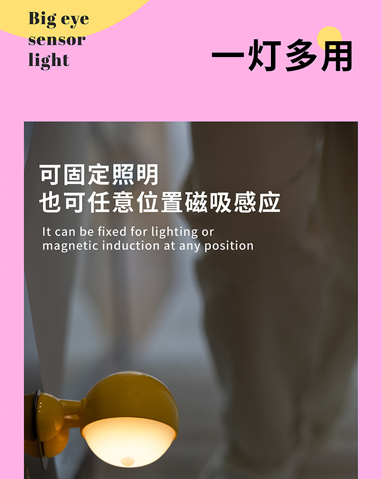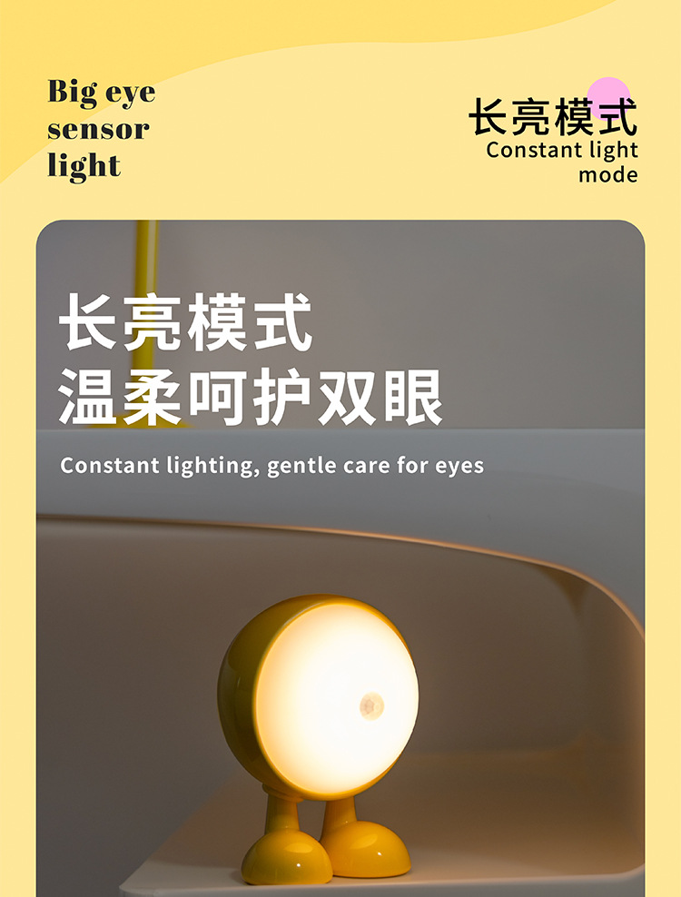 공장 직접 판매 2024 새로운 큰 눈 인체 유도 밤 빛 창조적 인 선물 침실 통로 자기 충전 모델스토어 가기