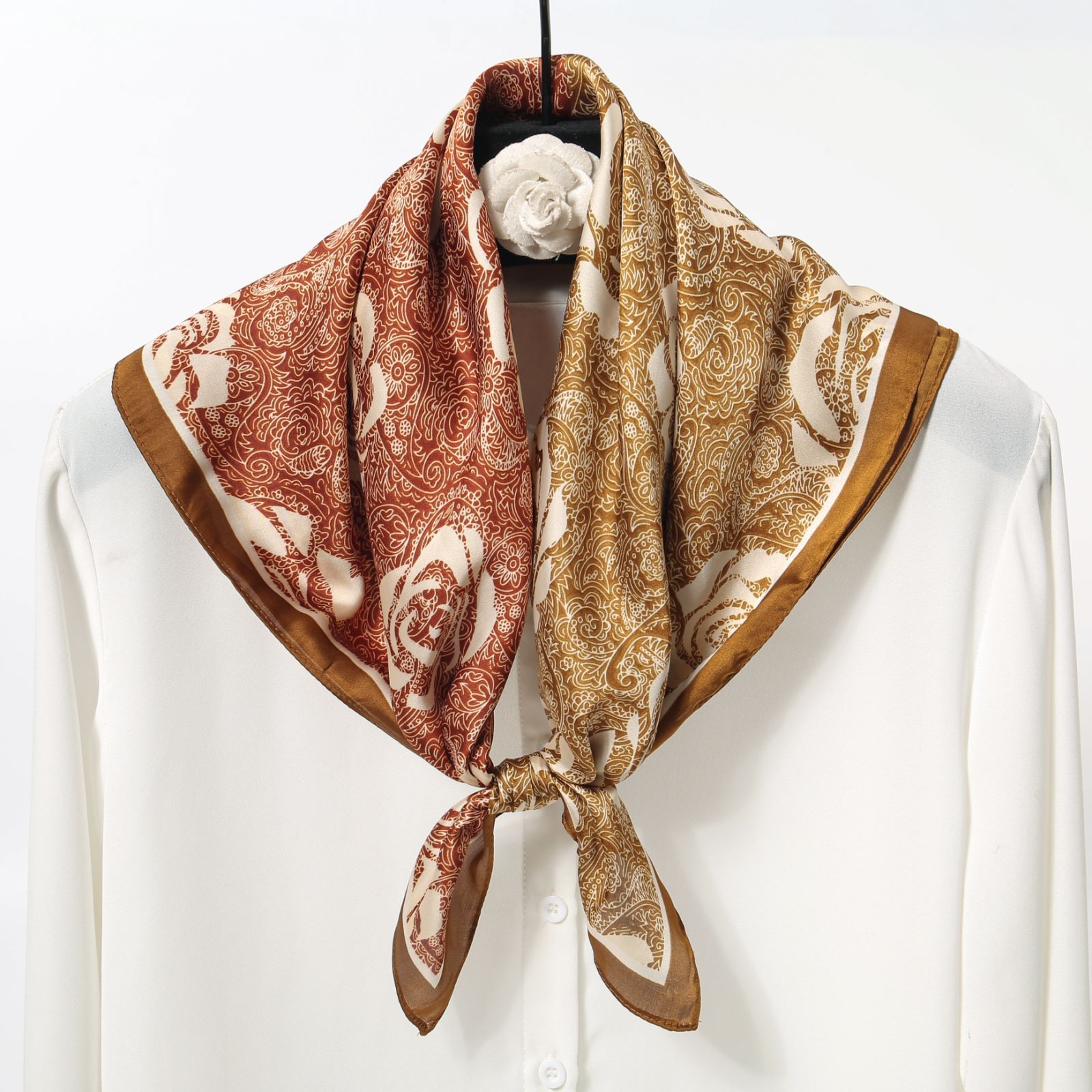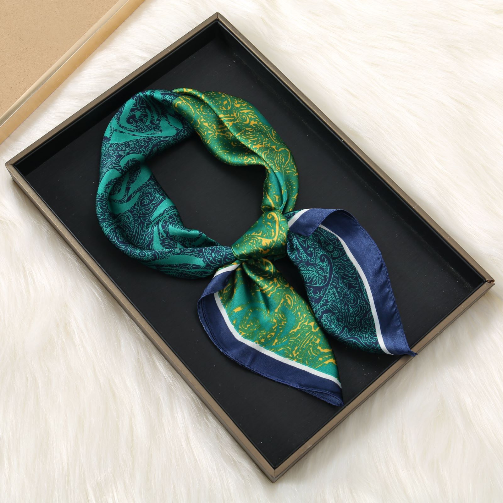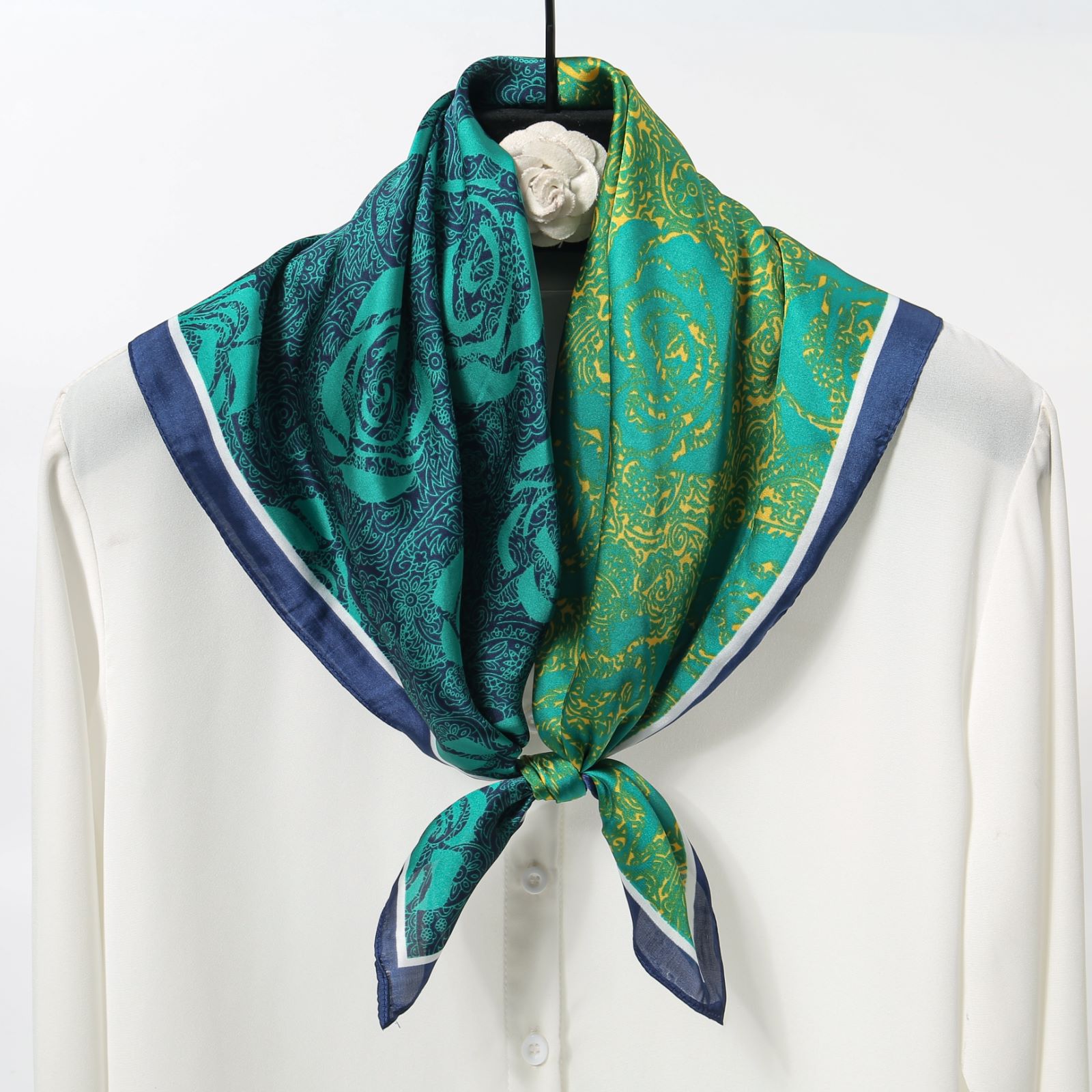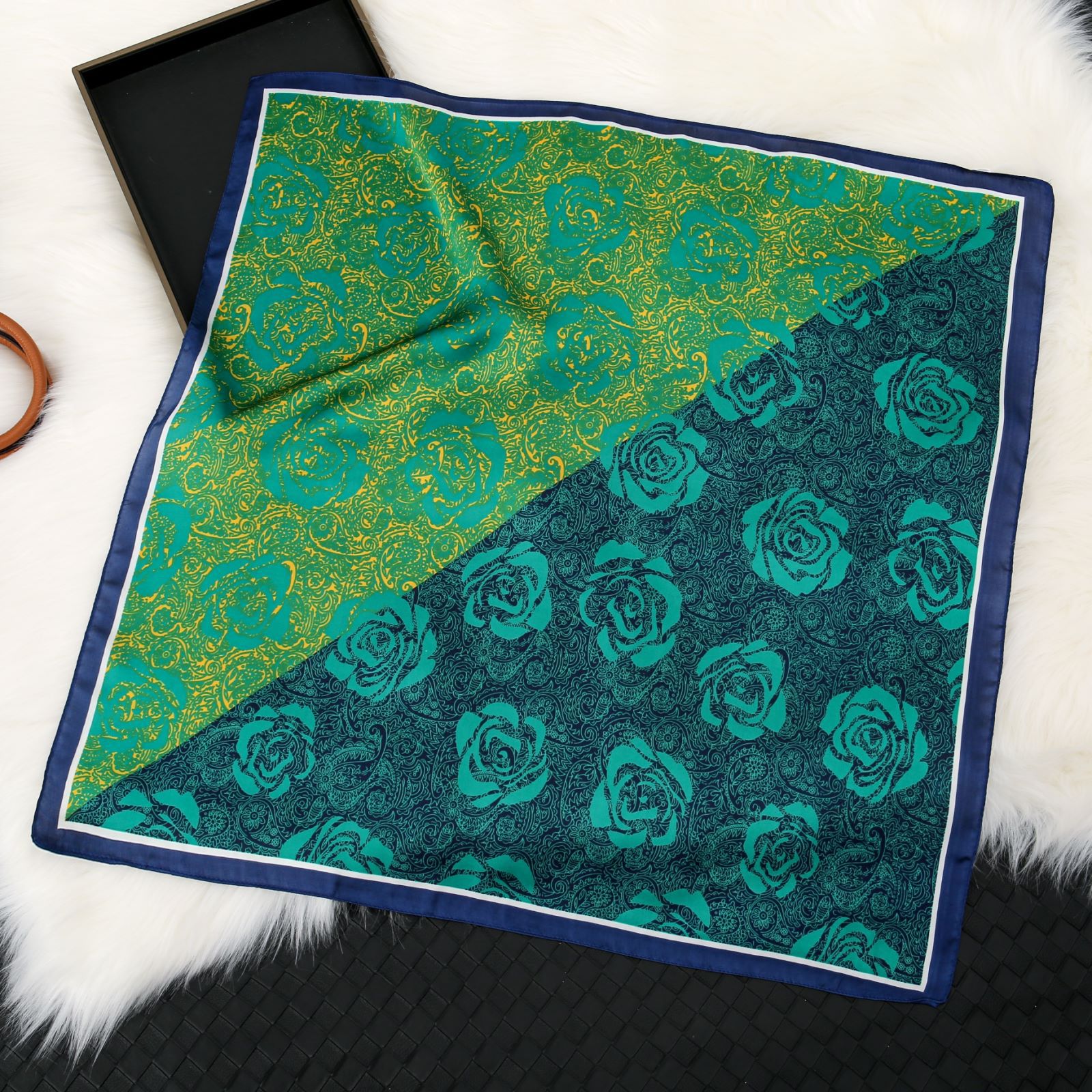 유행 간단한 그라데이션 플라워 프린트 작은 사각형 스카프 트렌디 한 소녀의 장식 머리 스카프 넥타이 헤어 밴드 가슴 랩 스카프