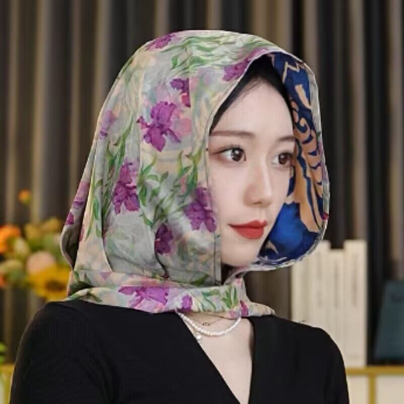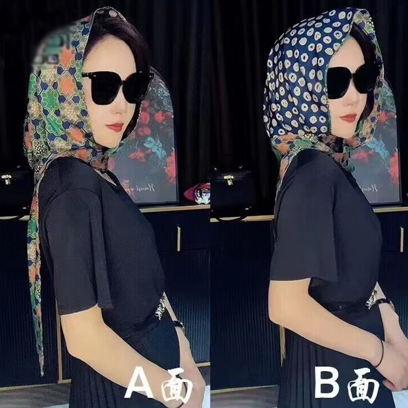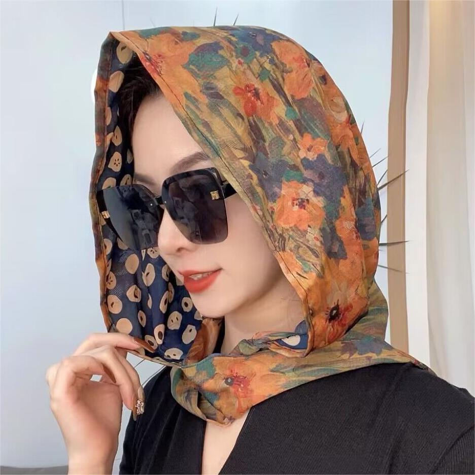 2025 봄 여름 신상 양면 꽃무늬 새틴 실크 스카프 모자 자외선 차단 헤드스카프 여행용 리본 머리띠 숄 얇은 스타일스토어 가기
