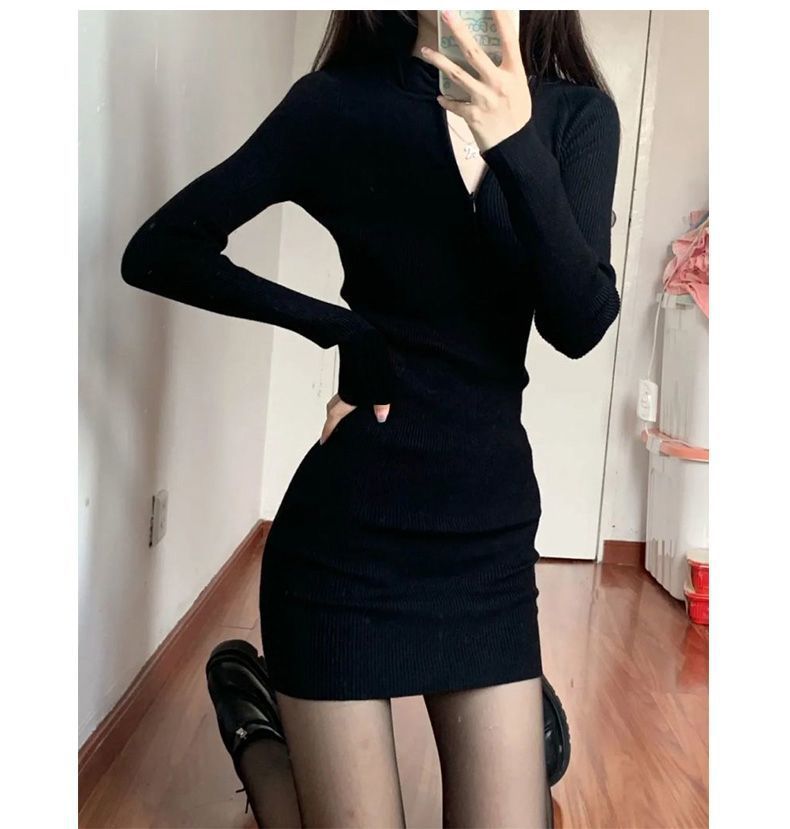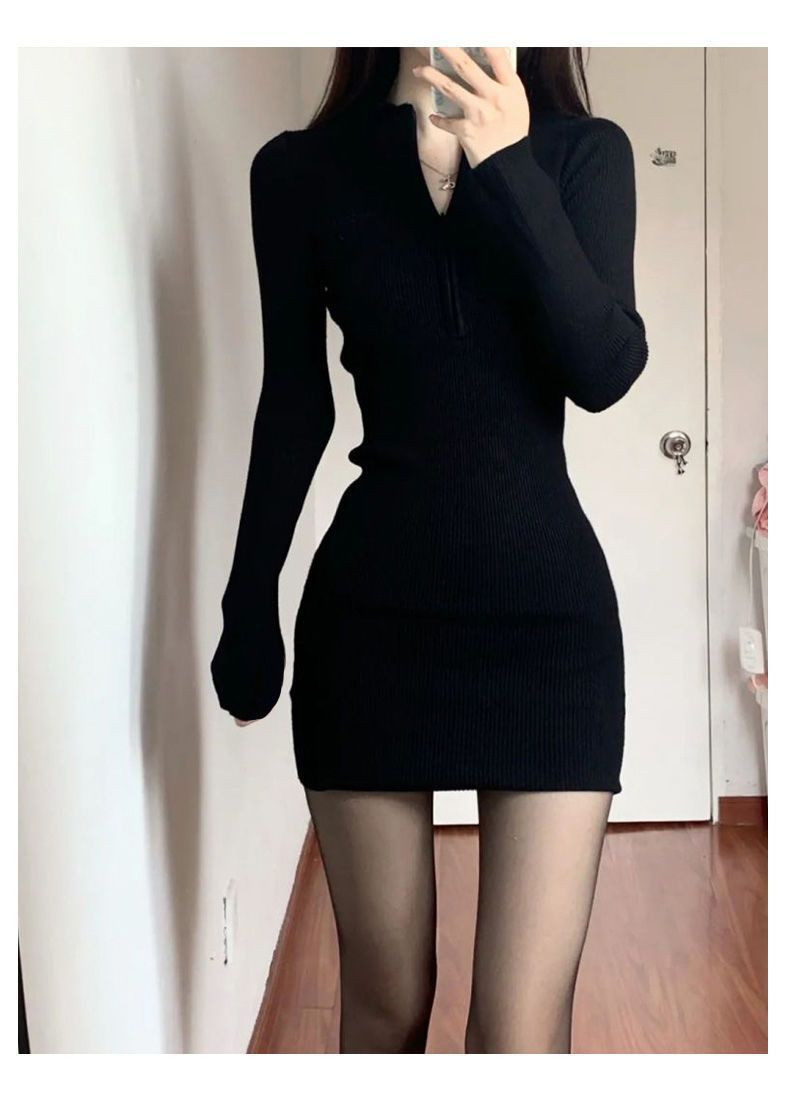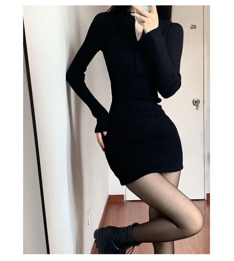검은 우아한 달콤하고 매운 원피스 2024 봄 새로운 긴 소매 섹시한 엉덩이 스커트 달콤하고 매운 스타일 짧은 치마 여성용스토어 가기