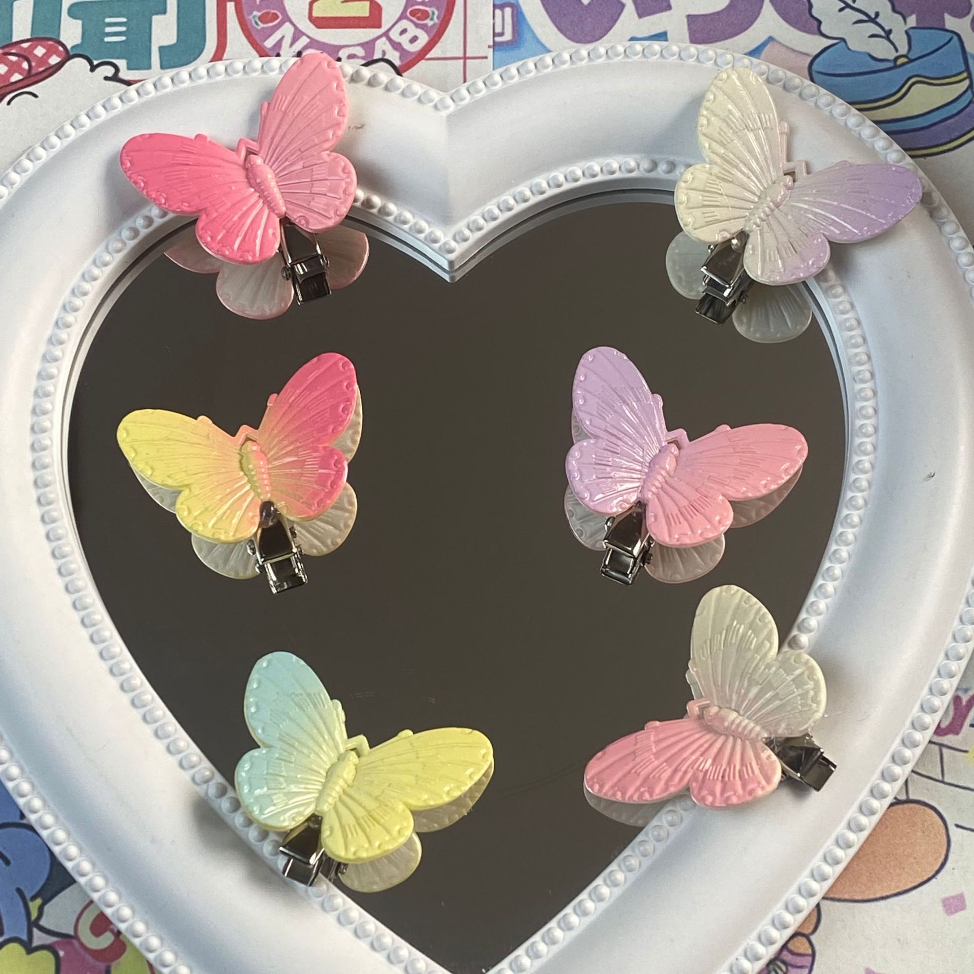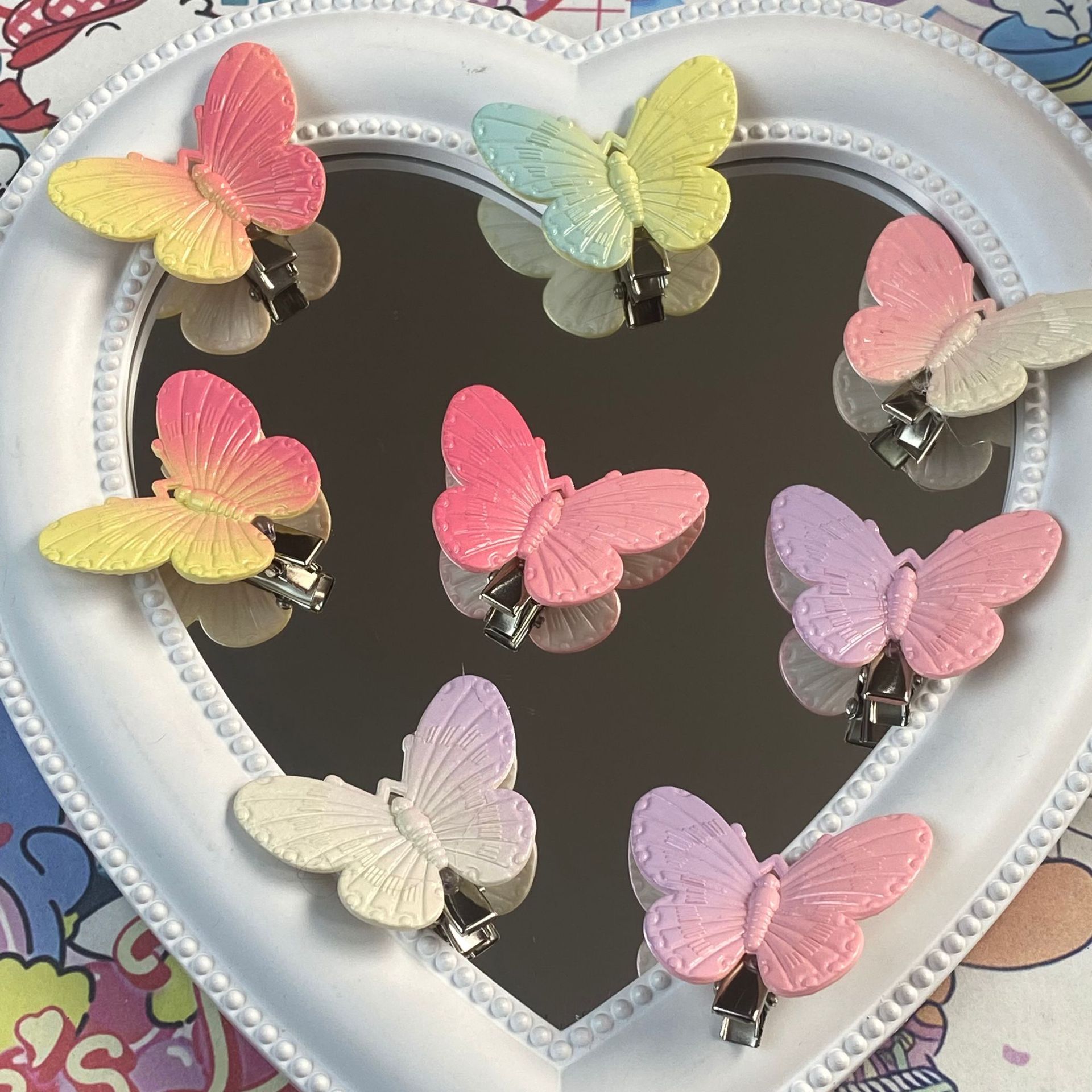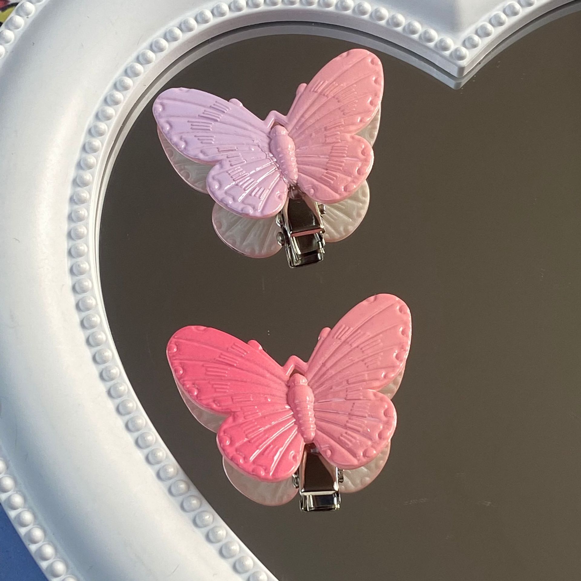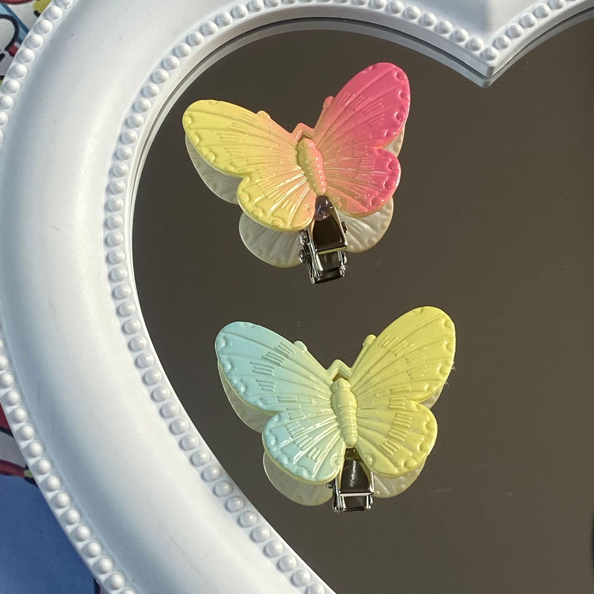 그라디언트 컬러 나비 성격 귀여운 어린이 덕빌 클립 소녀 심장 패션 간단한 스몰 사이즈 머리핀 헤어 액세서리스토어 가기