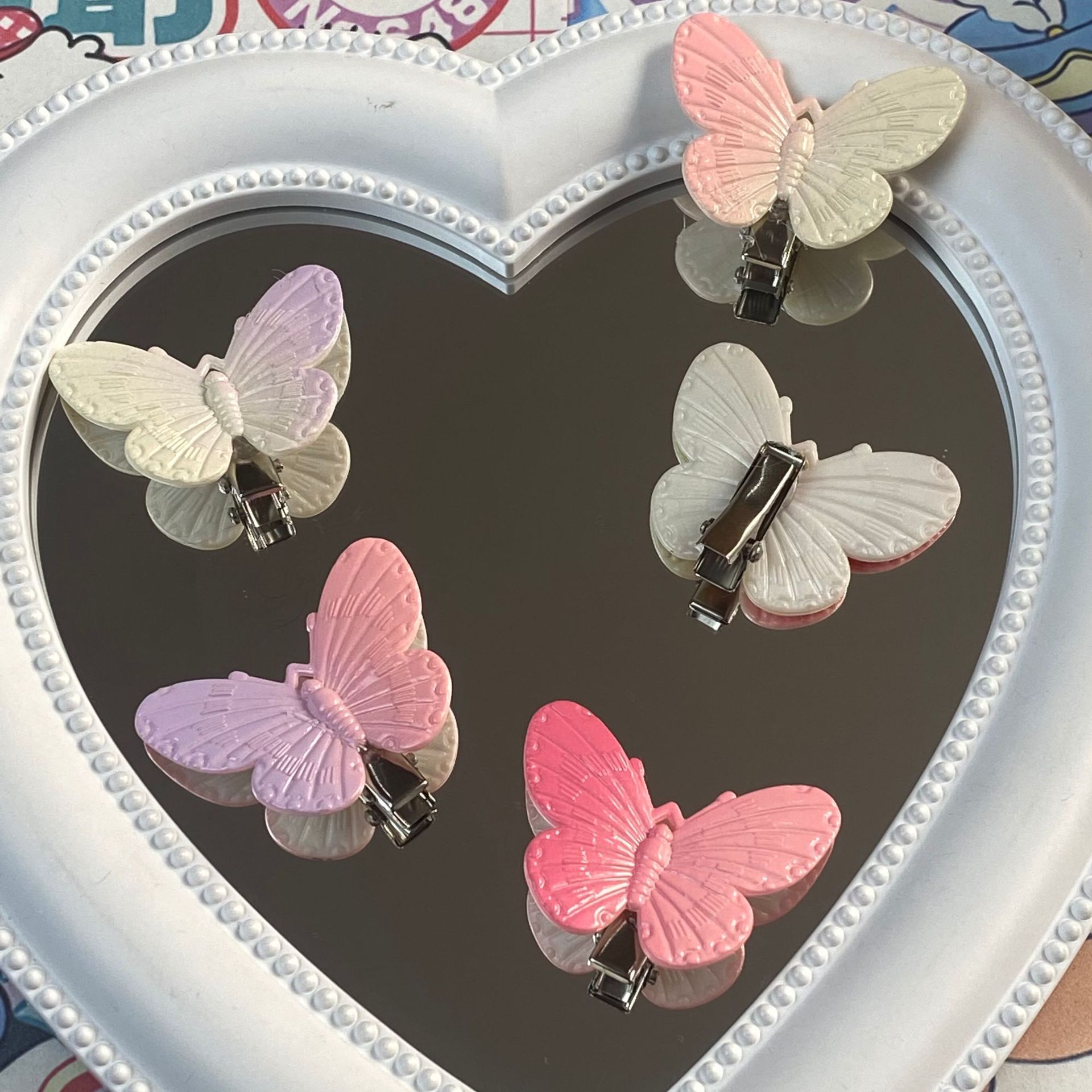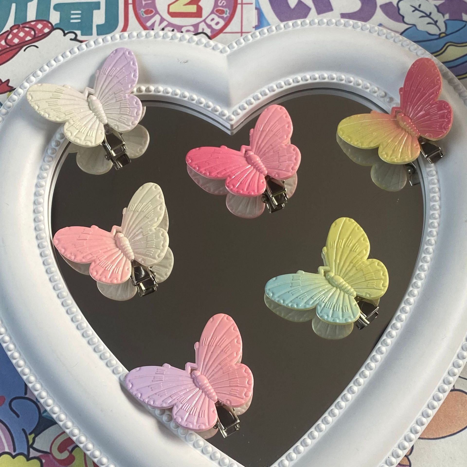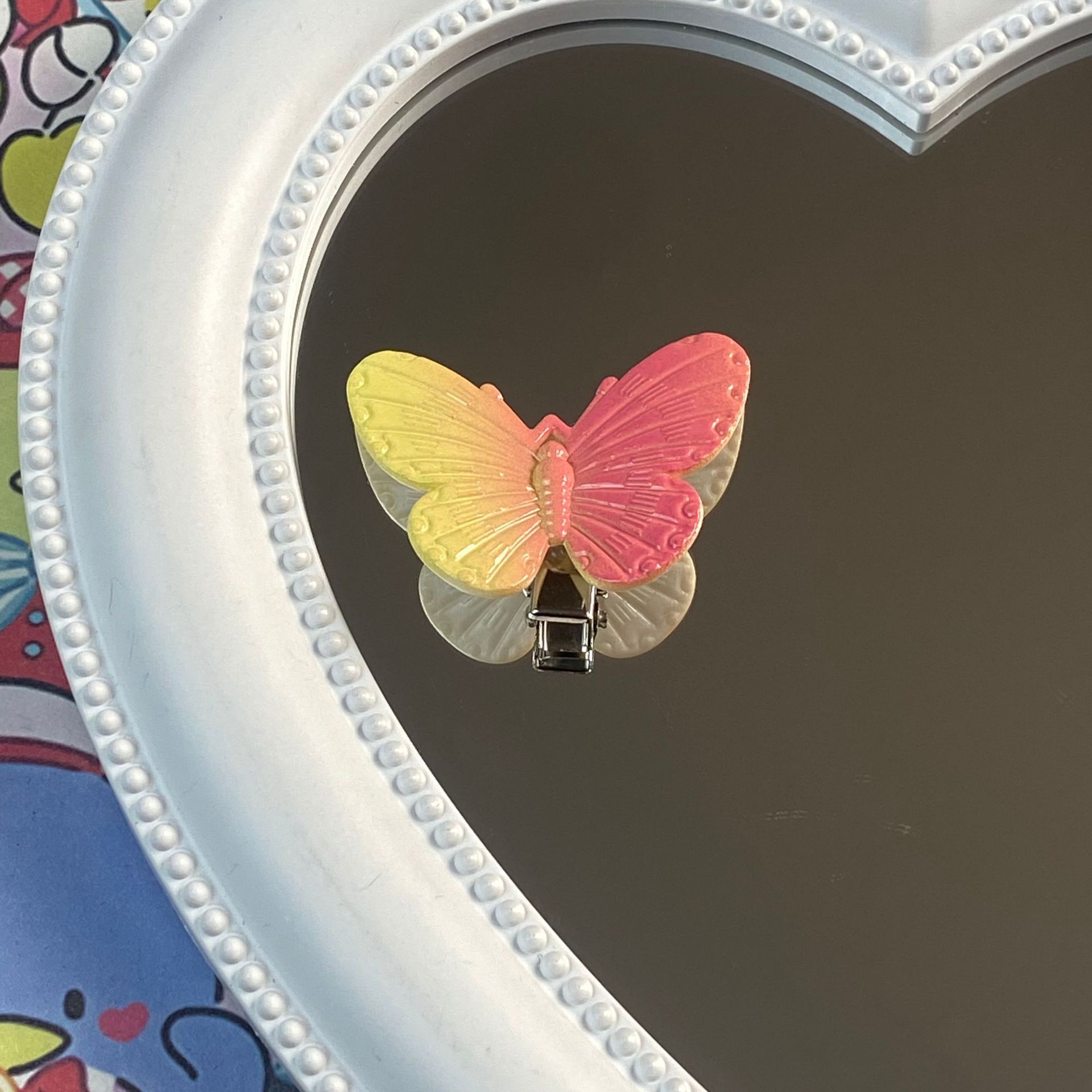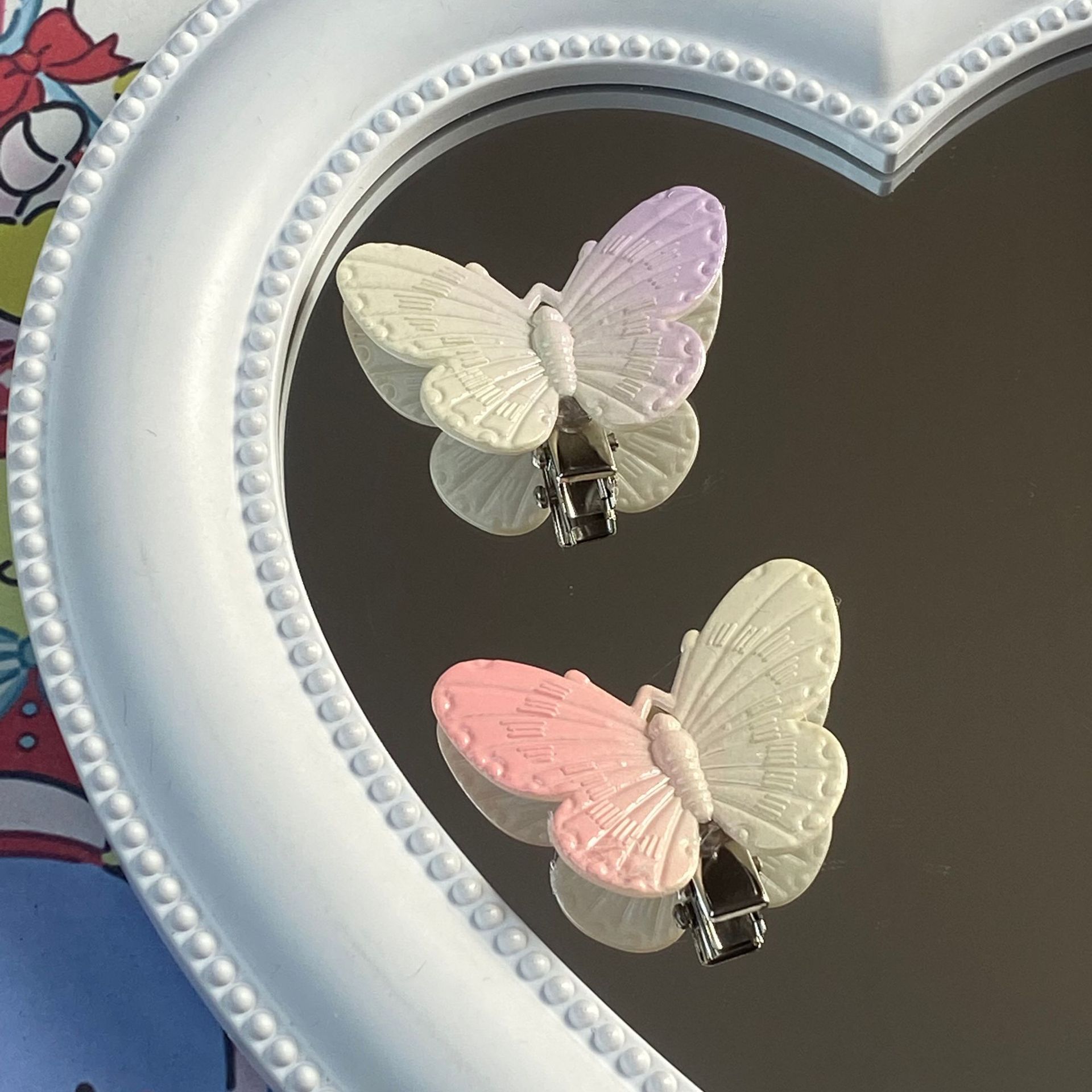 그라디언트 컬러 나비 성격 귀여운 어린이 덕빌 클립 소녀 심장 패션 간단한 스몰 사이즈 머리핀 헤어 액세서리스토어 가기