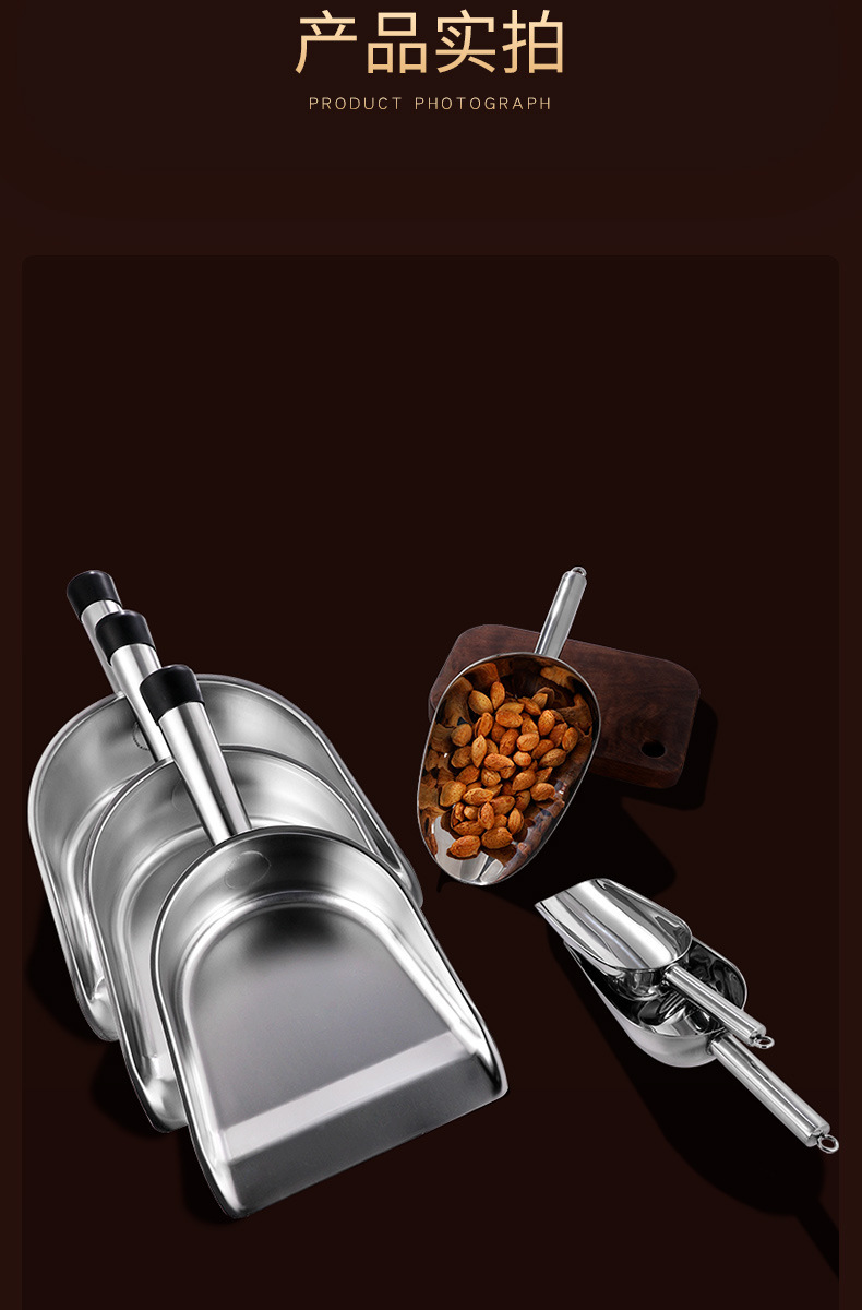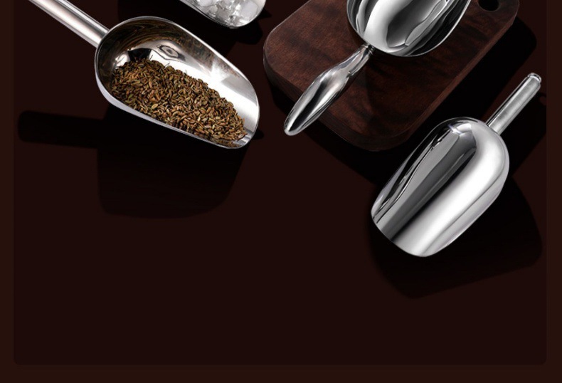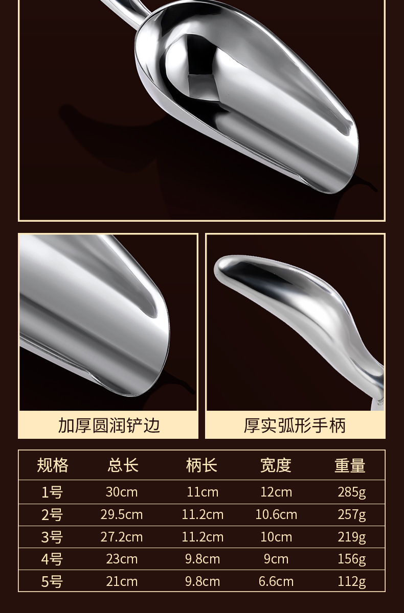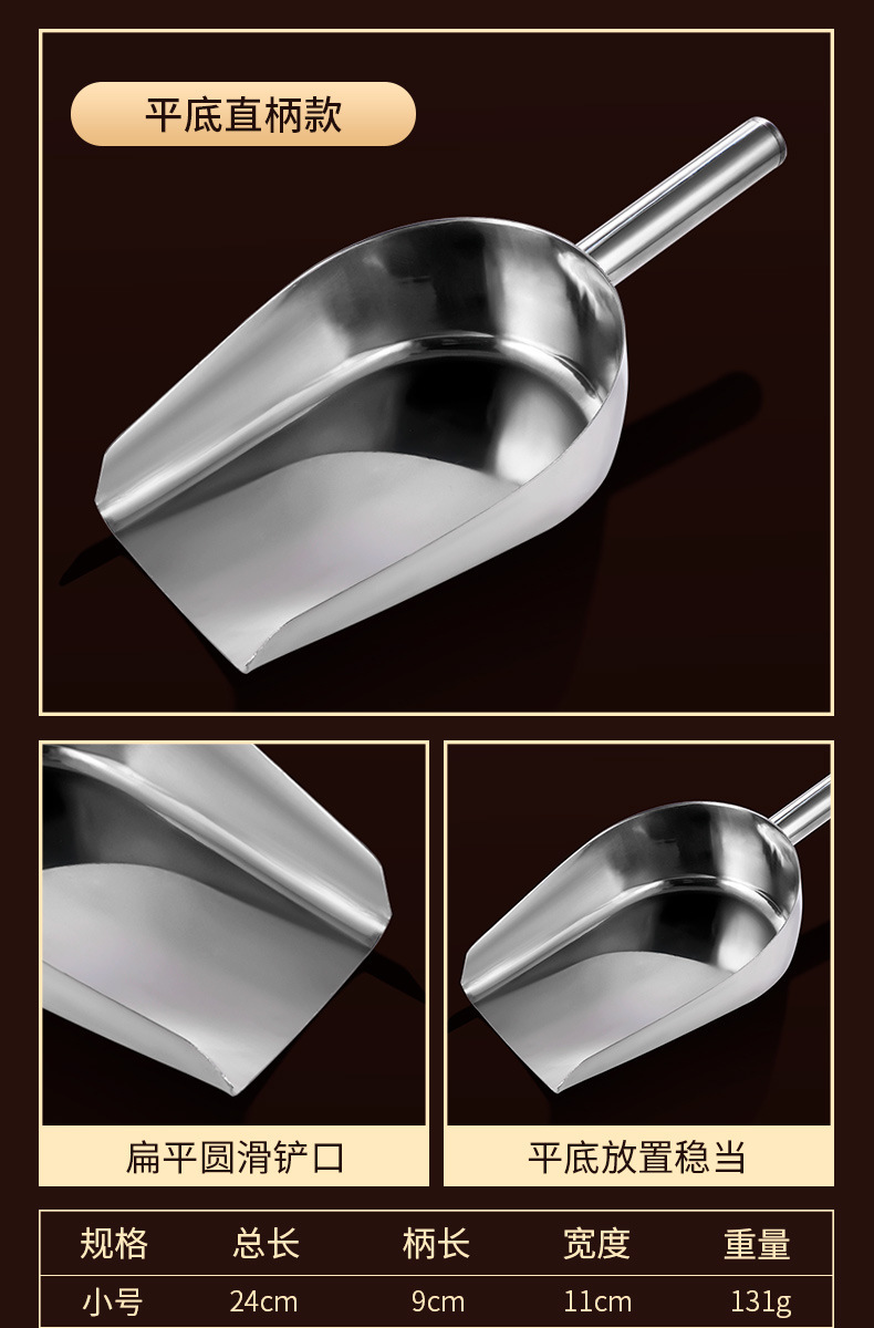 스테인레스 스틸 아이스 삽 쌀 삽 밀가루 삽 우유 차 가게 특별한 음식 음식 사료 평평한 바닥 작은 삽 숟가락 차 삽스토어 가기