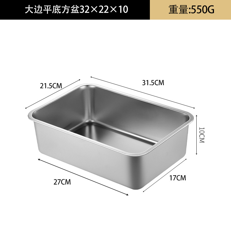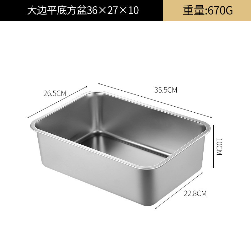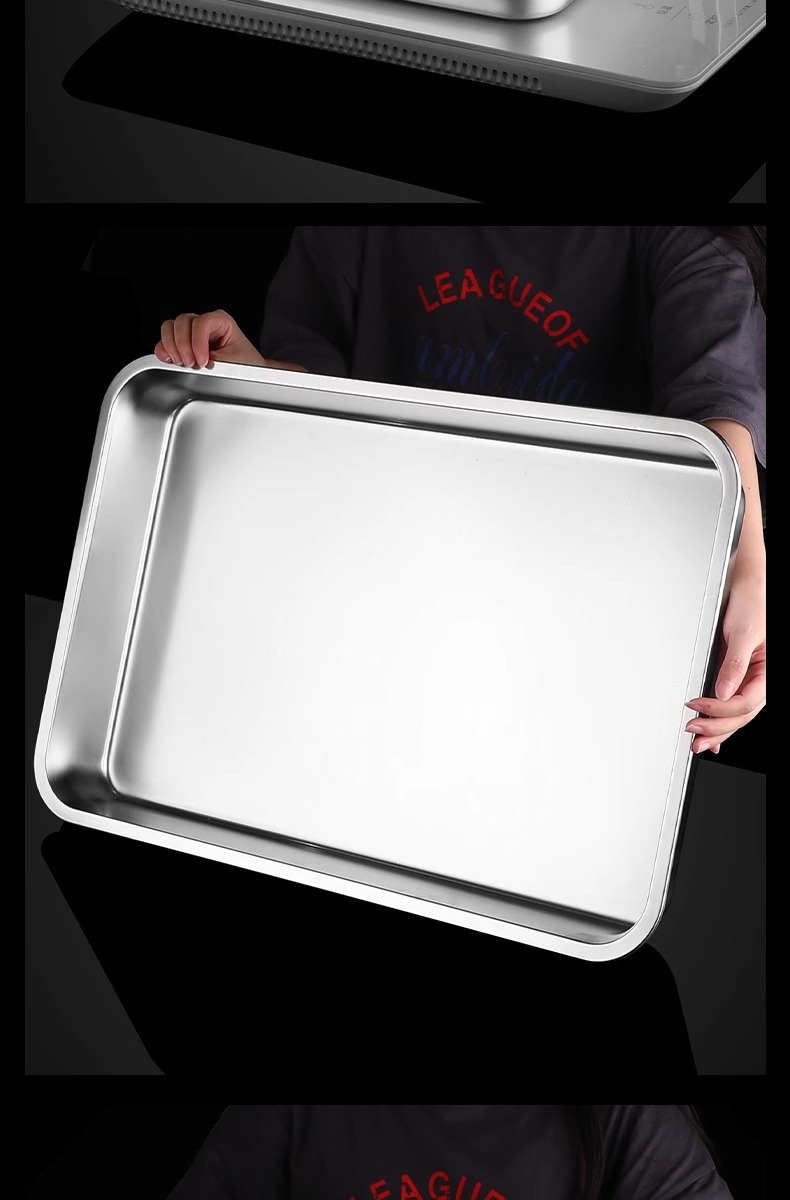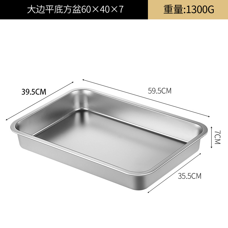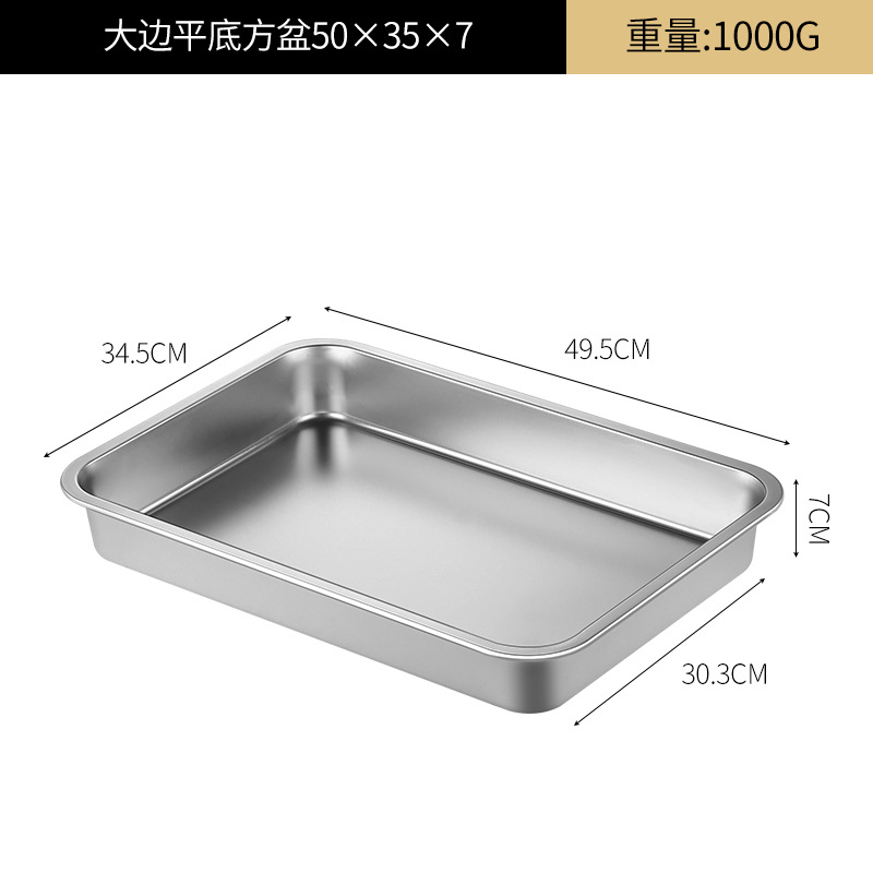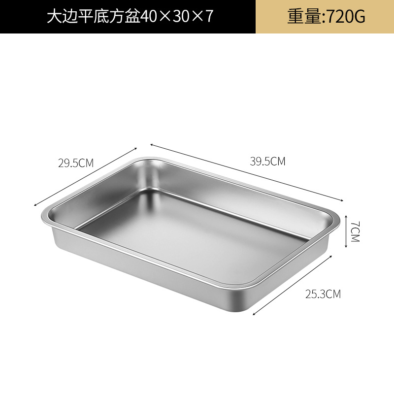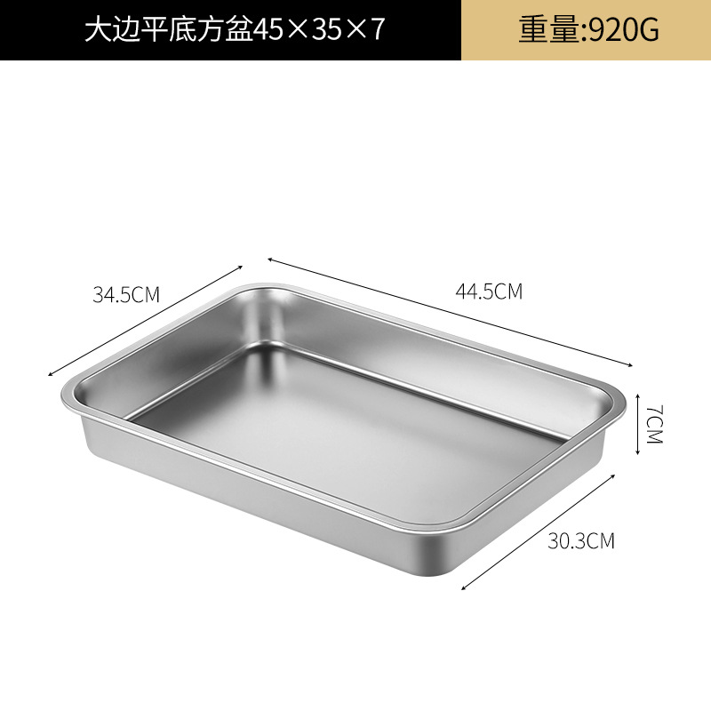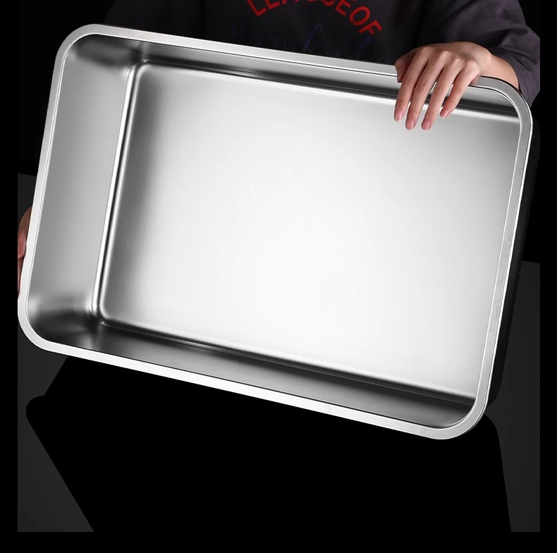 여분의 두꺼운 스테인레스 스틸 플레이트 직사각형 평평한 두꺼운 가정용 심화 트레이 구이 생선 사각형 플레이트 뚜껑이있는 상업용 스퀘어 분지스토어 가기