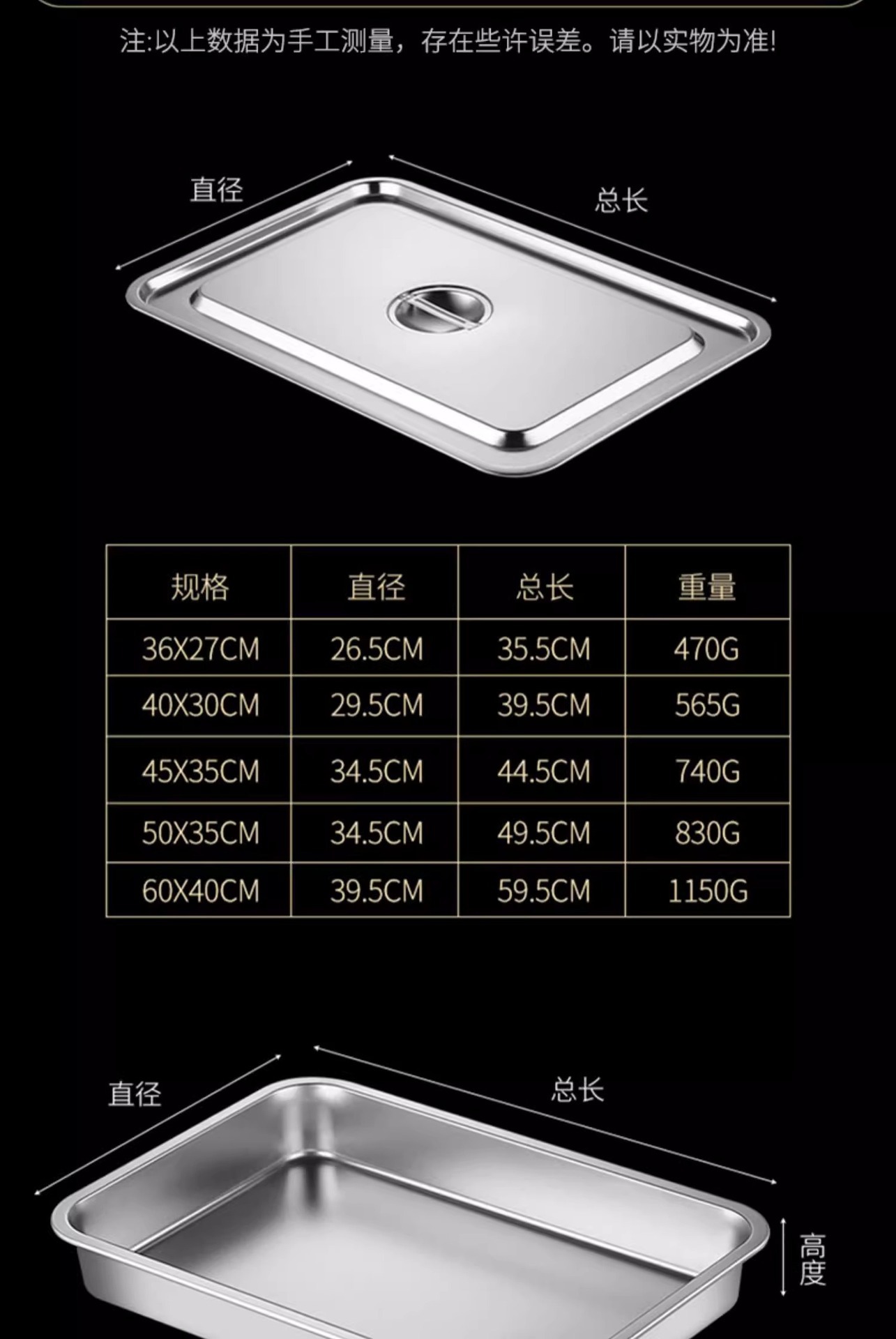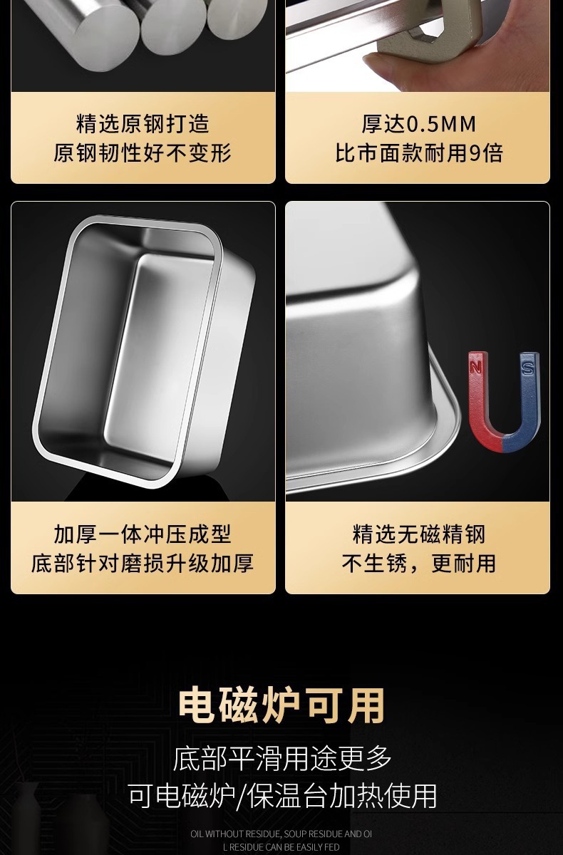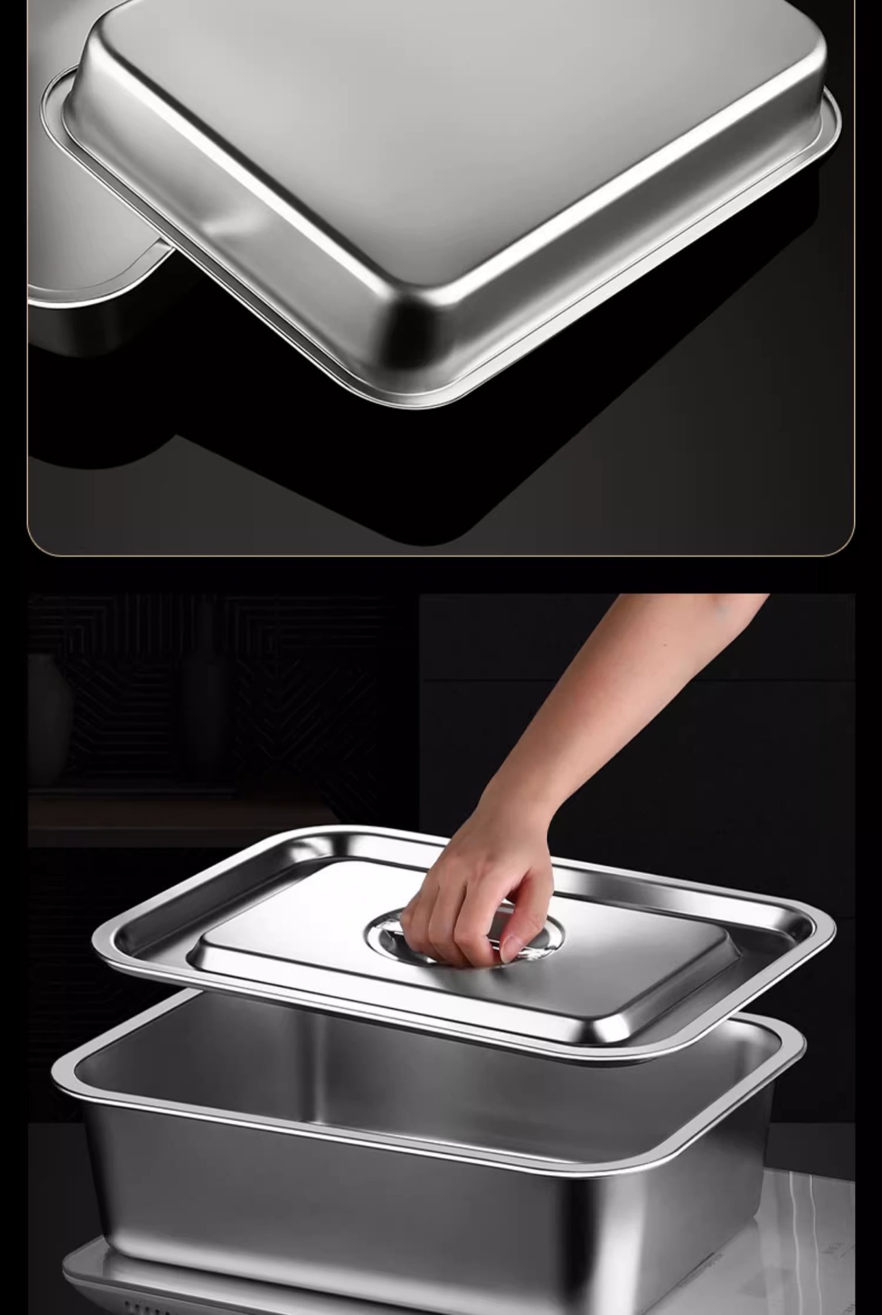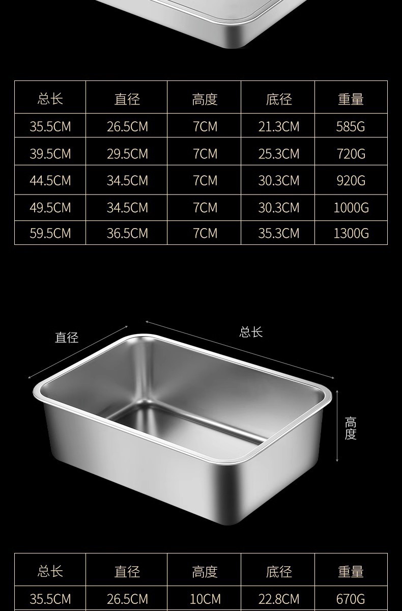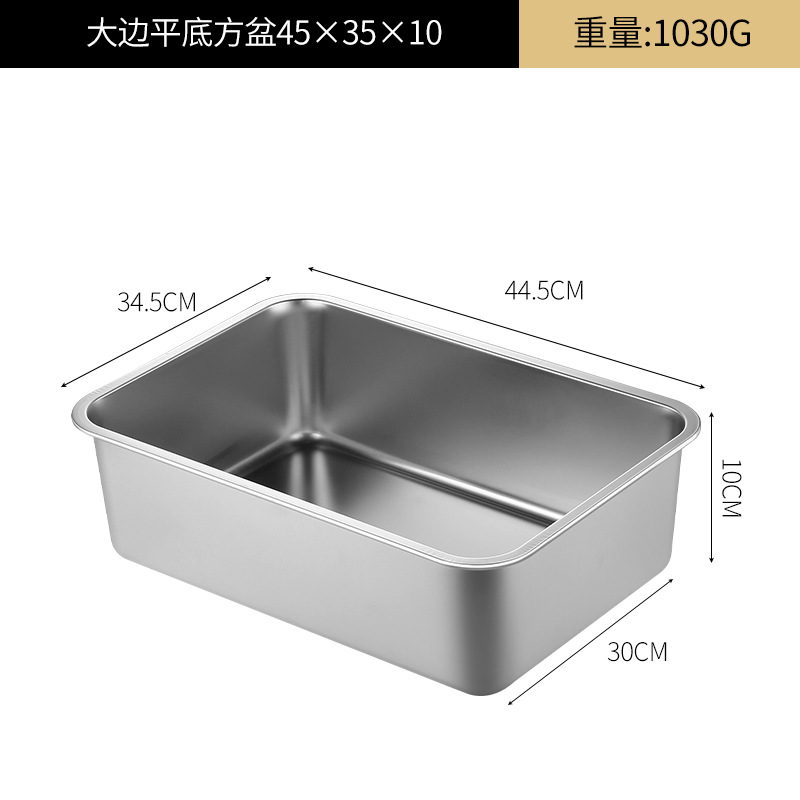 여분의 두꺼운 스테인레스 스틸 플레이트 직사각형 평평한 두꺼운 가정용 심화 트레이 구이 생선 사각형 플레이트 뚜껑이있는 상업용 스퀘어 분지스토어 가기