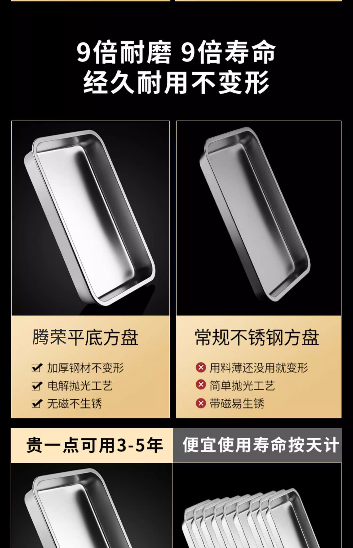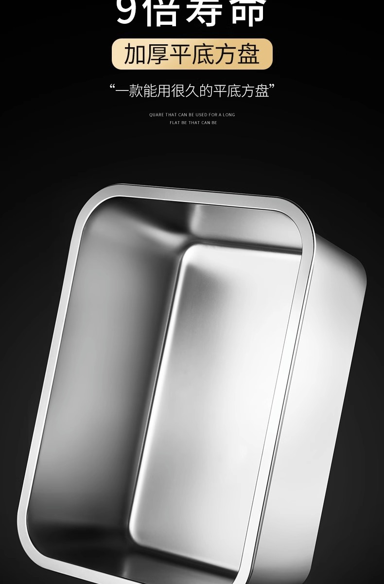 여분의 두꺼운 스테인레스 스틸 플레이트 직사각형 평평한 두꺼운 가정용 심화 트레이 구이 생선 사각형 플레이트 뚜껑이있는 상업용 스퀘어 분지