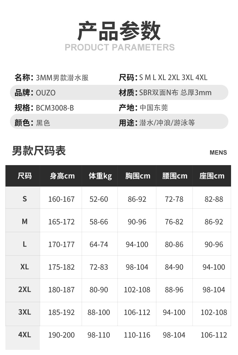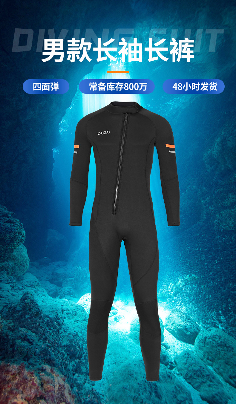 现货3mm潜水服 男长袖连体潜水衣加厚保暖防寒防晒自由浮潜冬泳衣