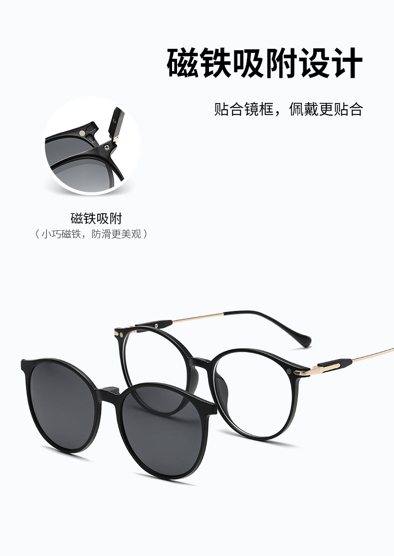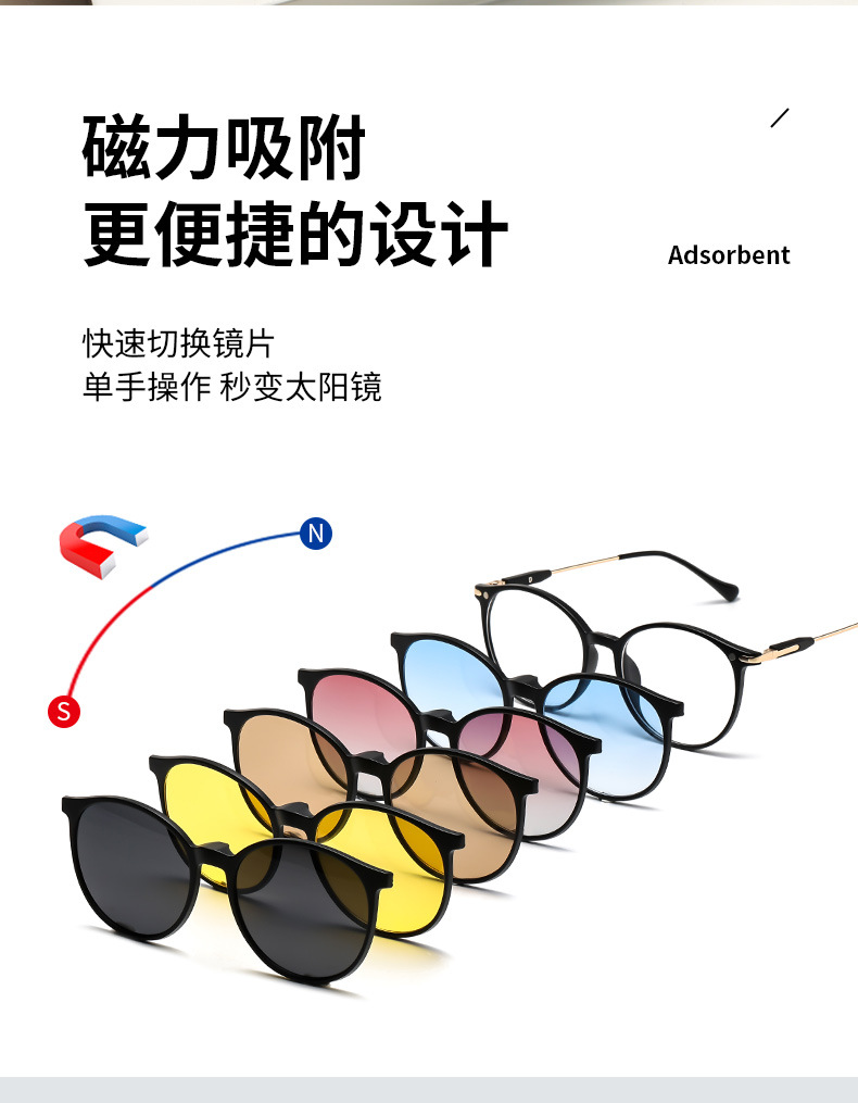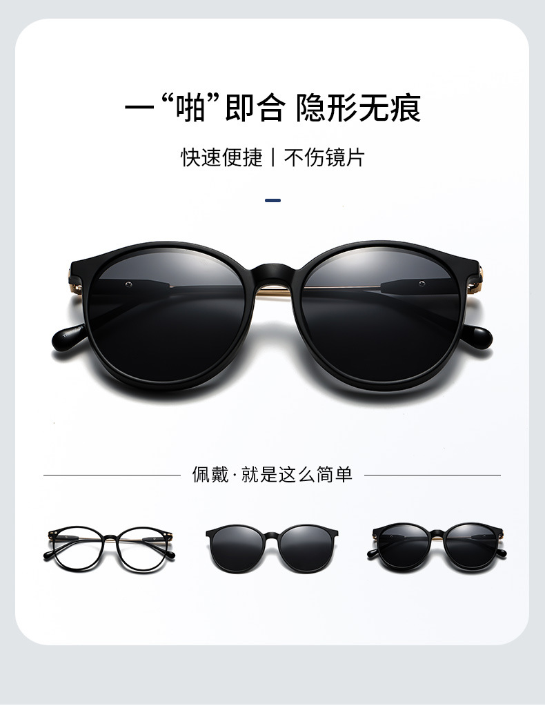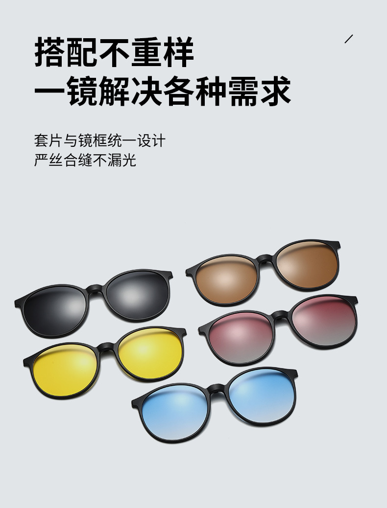 자기 세트 근시 안경 6 대 1 편광 선글라스 이중층 안경 라운드 프레임 5 개 목적 클립 그라디언트 선글라스스토어 가기