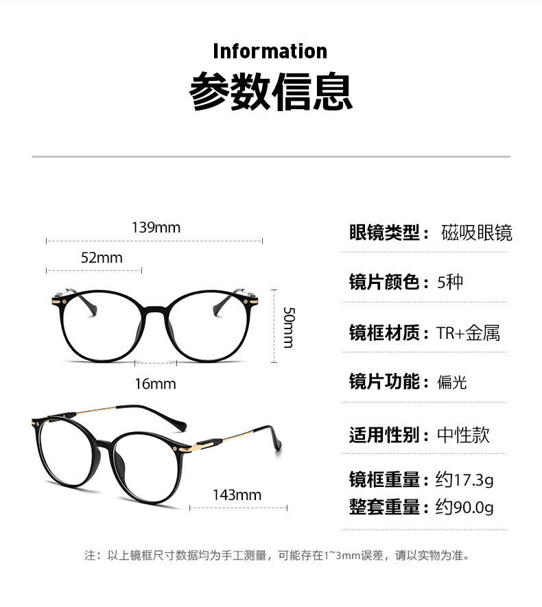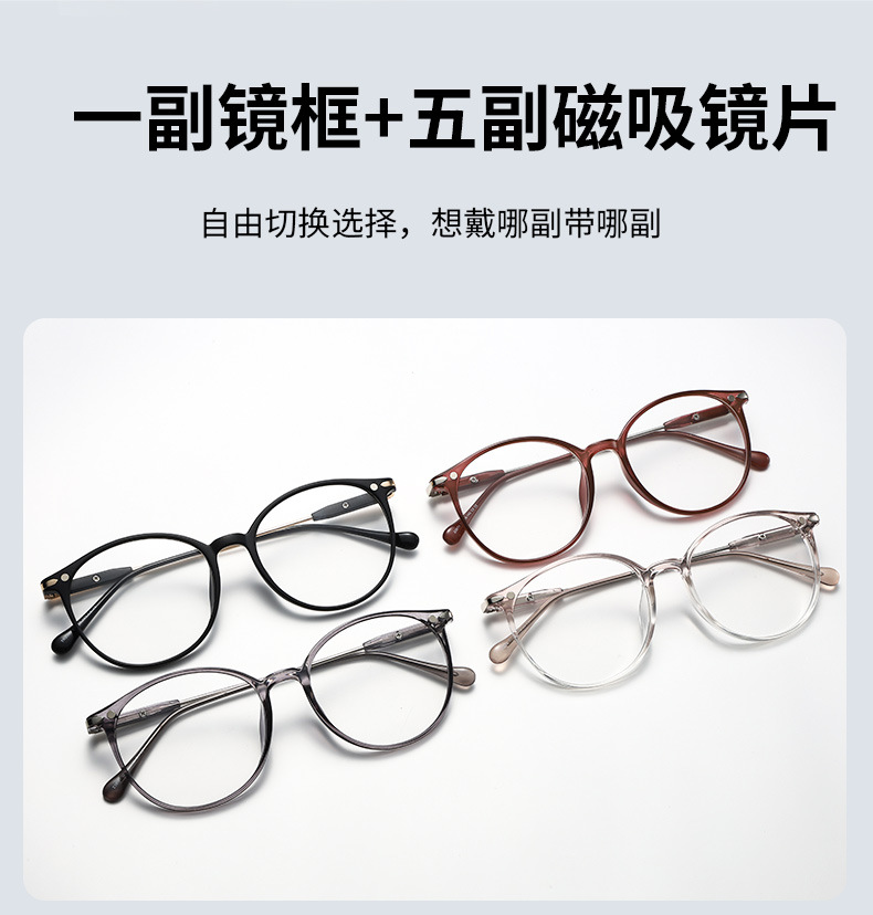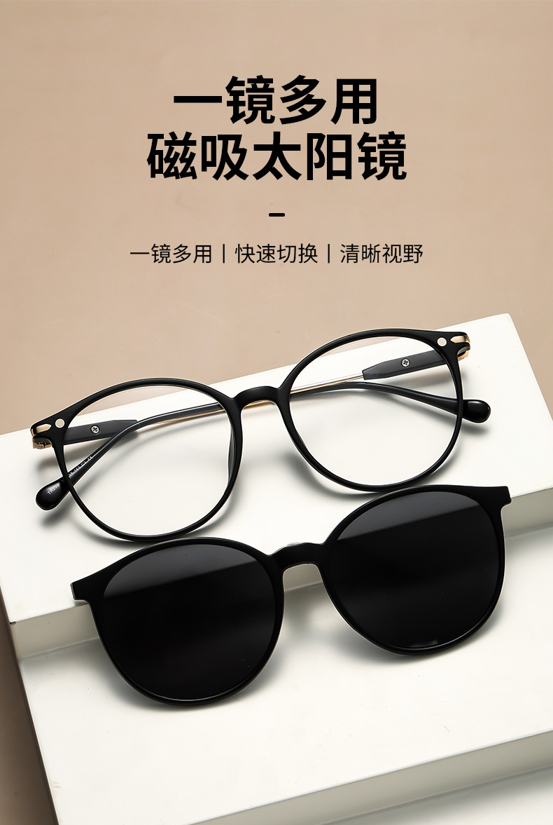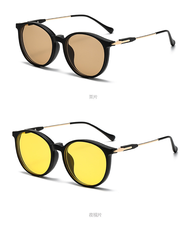 자기 세트 근시 안경 6 대 1 편광 선글라스 이중층 안경 라운드 프레임 5 개 목적 클립 그라디언트 선글라스스토어 가기