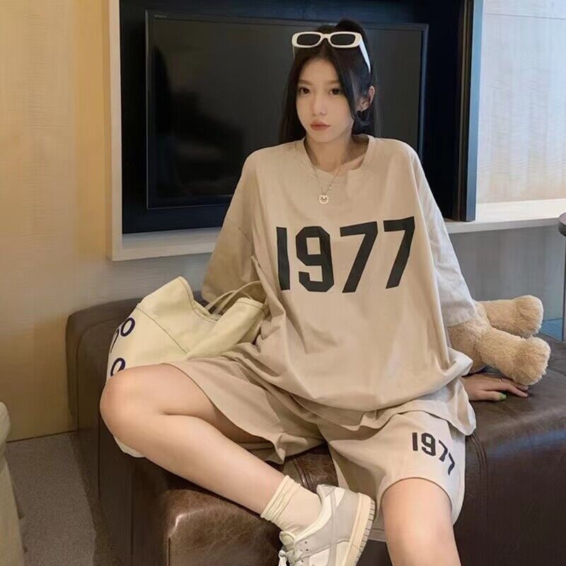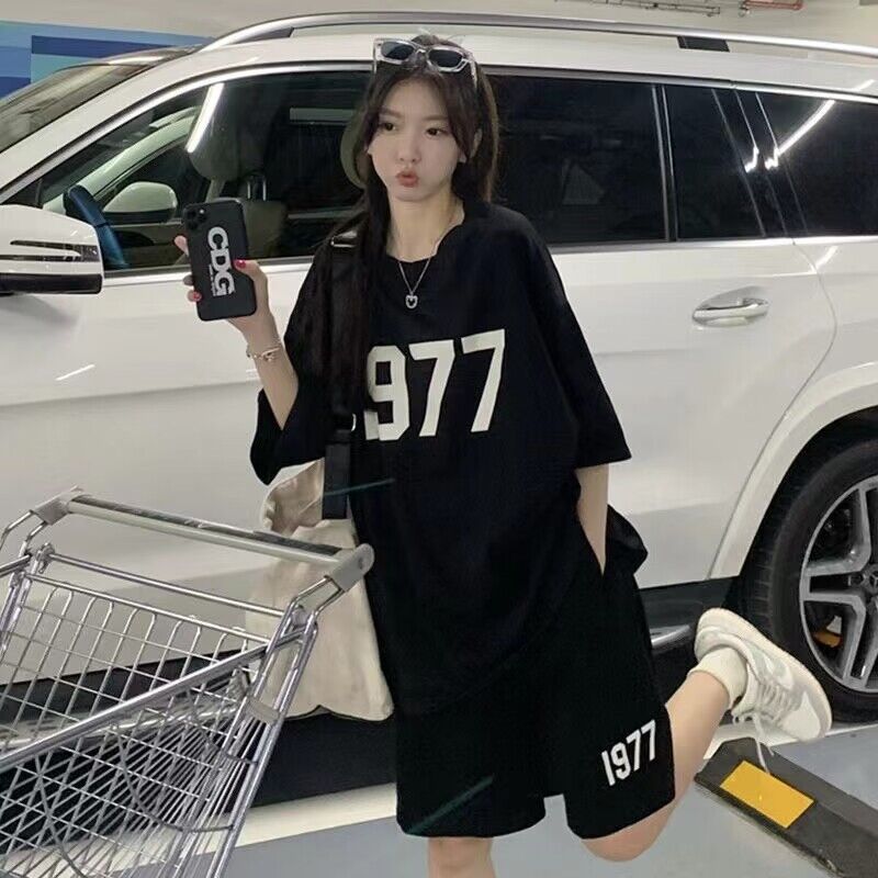 스포츠 패션 세트 한국 스타일 느슨한 패션 서양식 유행 학생 맞춤형 캐주얼 반팔 반바지 투피스 세트스토어 가기