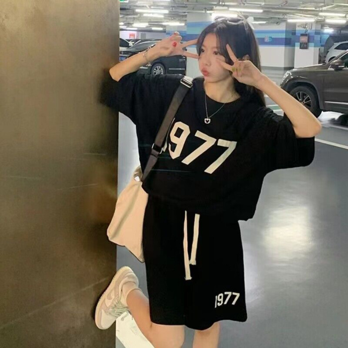 스포츠 패션 세트 한국 스타일 느슨한 패션 서양식 유행 학생 맞춤형 캐주얼 반팔 반바지 투피스 세트