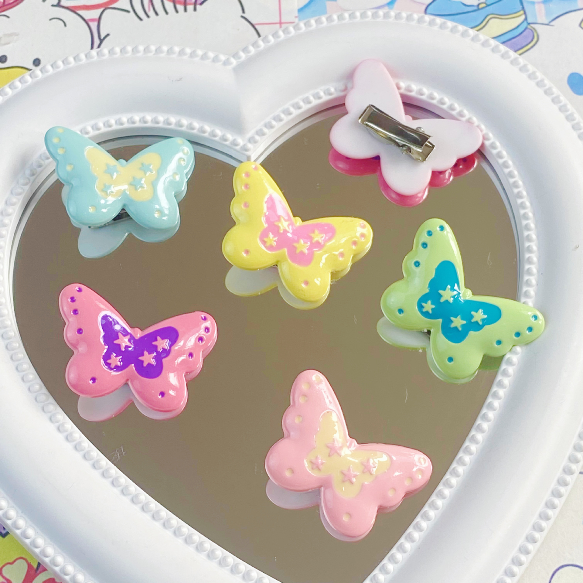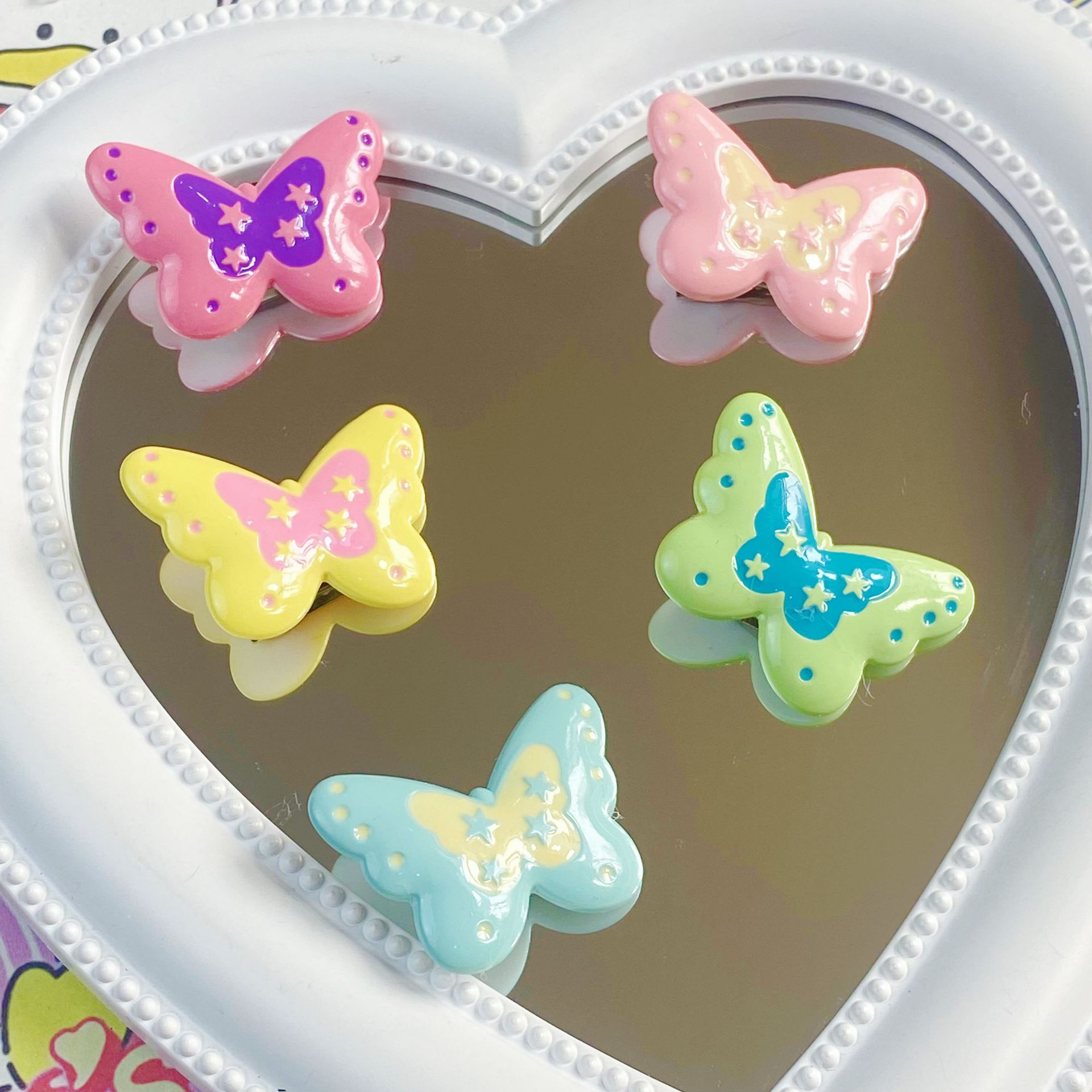 만화 캔디 컬러 스타 스팟 나비 머리핀 도파민 귀여운 소녀 심장 어린이 측면 머리핀 헤어 액세서리스토어 가기