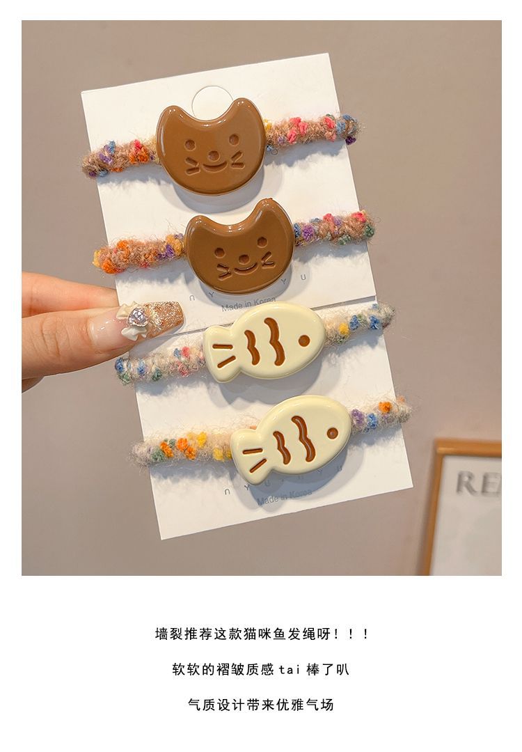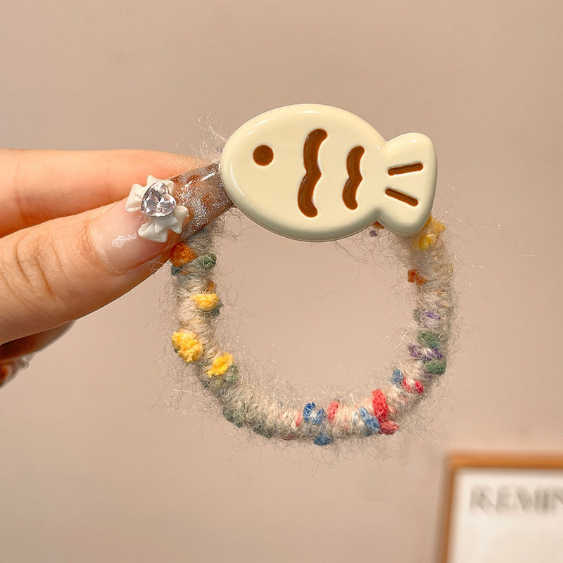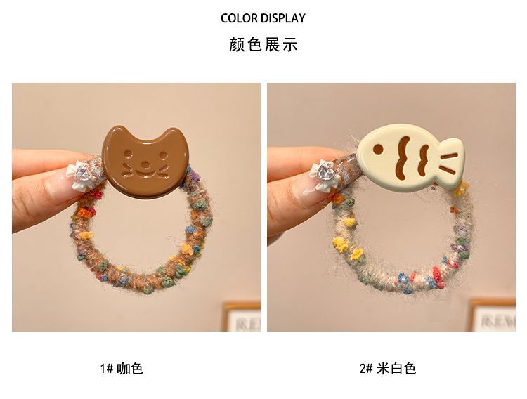 에 물고기 고양이 양모 머리 밧줄 여성 높은 탄력성은 머리 머리 밧줄을 해치지 않습니다 달콤한 귀여운 고무 밴드 머리 머리 반지