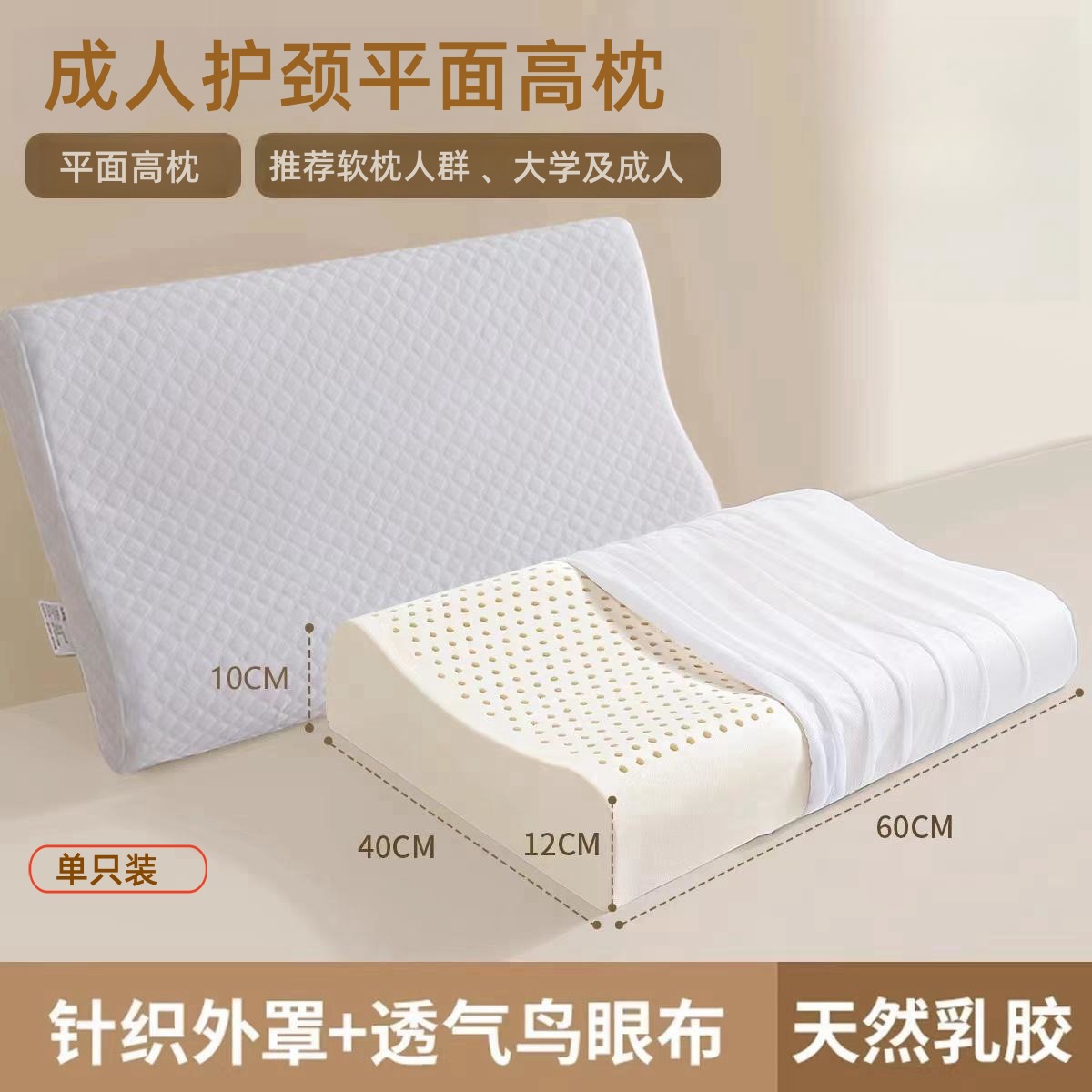 • [성인 싱글 팩] 평평한 목 베개 + 피부 친화적 인 통기성 니트 베갯잇몸 60*40